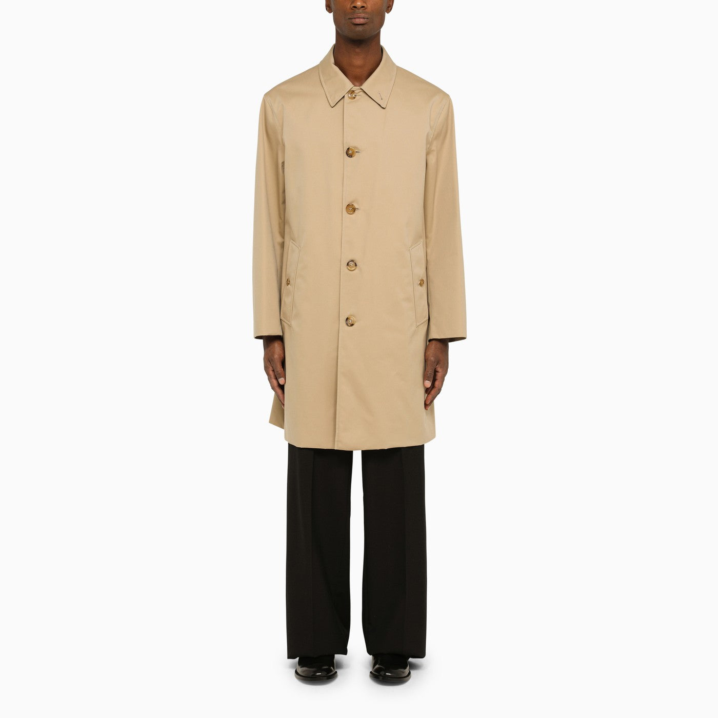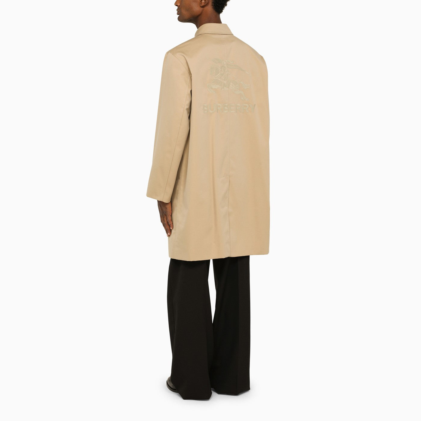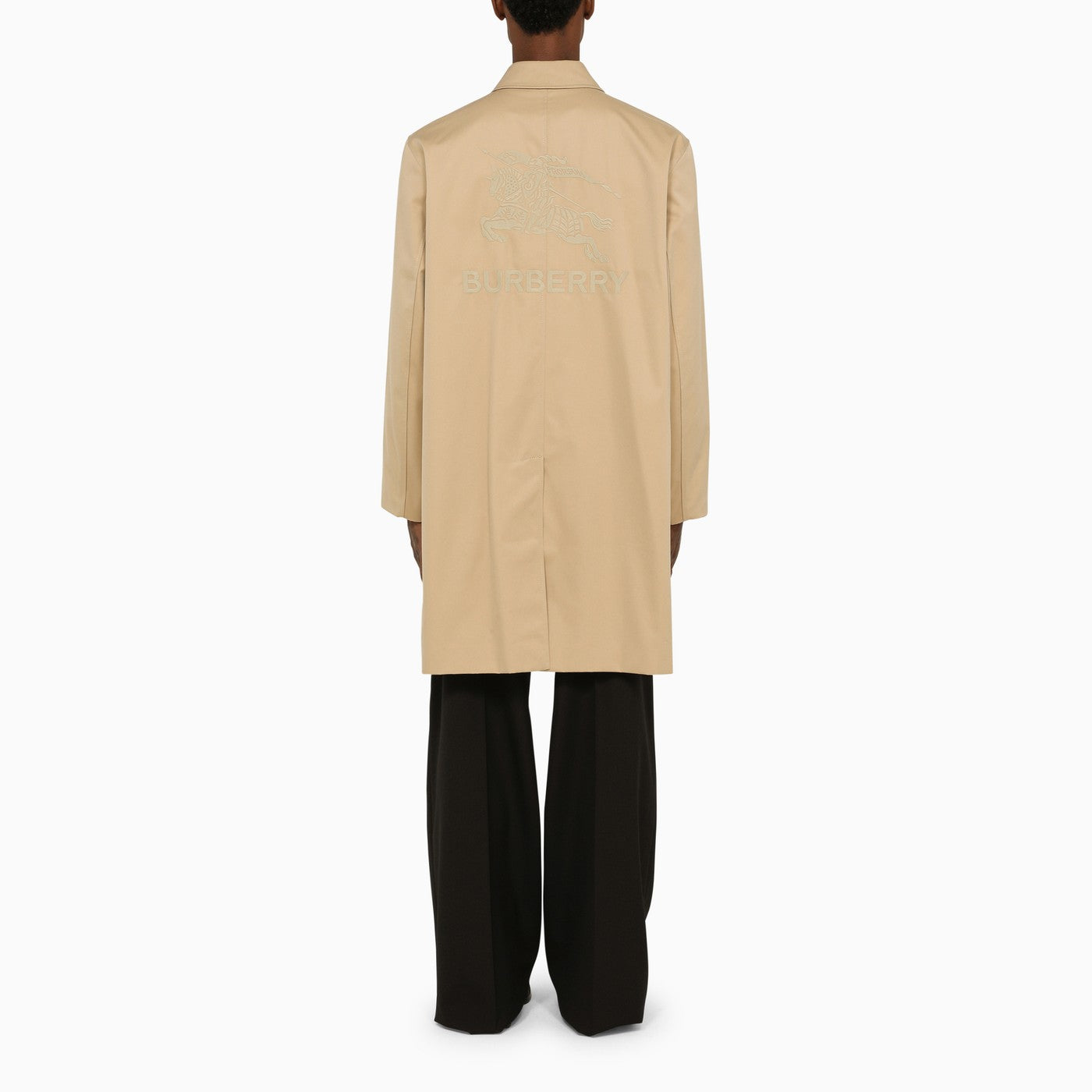 Il trench di tela di cotone color miele di Burberry presenta un fissaggio a bottone, un maxi logo sul retro, un colletto con fodera vintage, due tasche anteriori e sfiato sul retro.