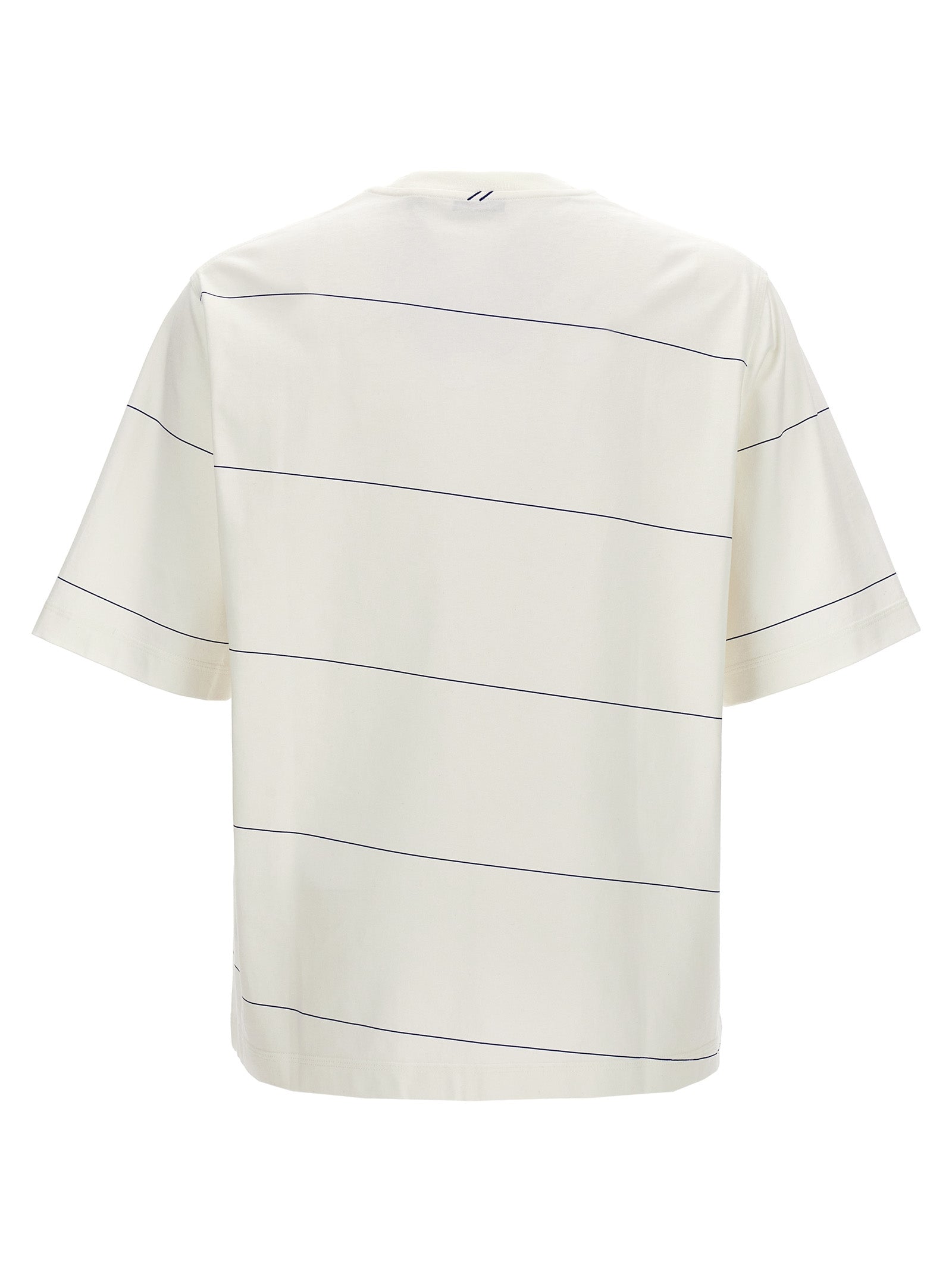 T-shirt a strisce di cotone con ricamo a logo anteriore, collo dell'equipaggio, maniche corte.