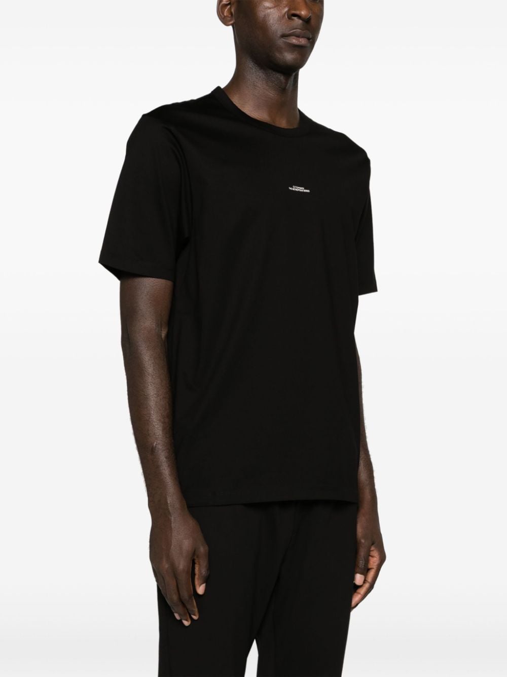 Black Cotton Soft Jersey Logo Stampa sulla stampa dello slogan anteriore per il collo corto a maniche corta dell'equipaggio anteriore