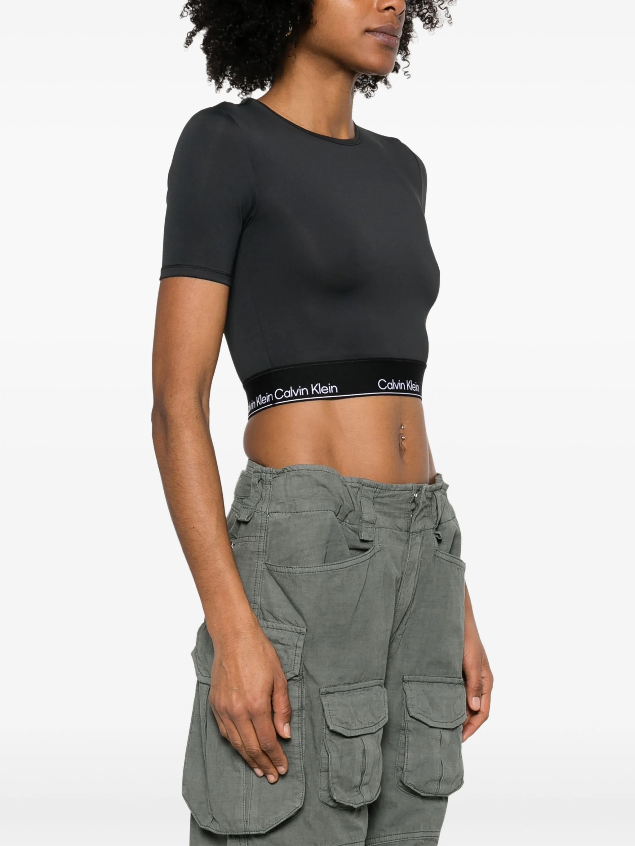 La maglietta CK Sport Cropped Gym è progettata per il massimo comfort grazie alla tecnologia Turbo-Dry che mantiene la pelle asciutta. Realizzato con poliestere riciclato al 78%, offre una vestibilità sottile, collo dell'equipaggio e maniche corte, ideale per gli allenamenti.