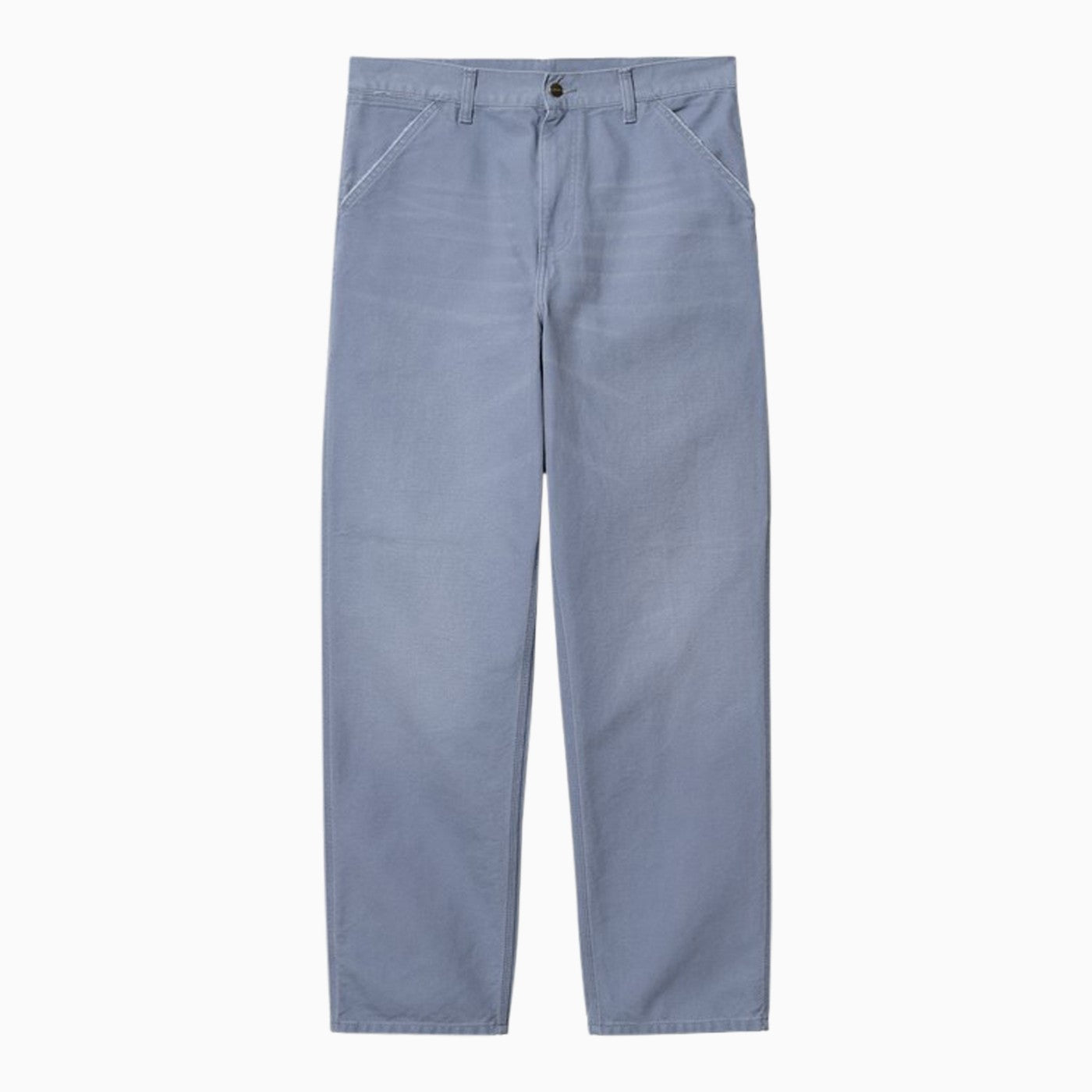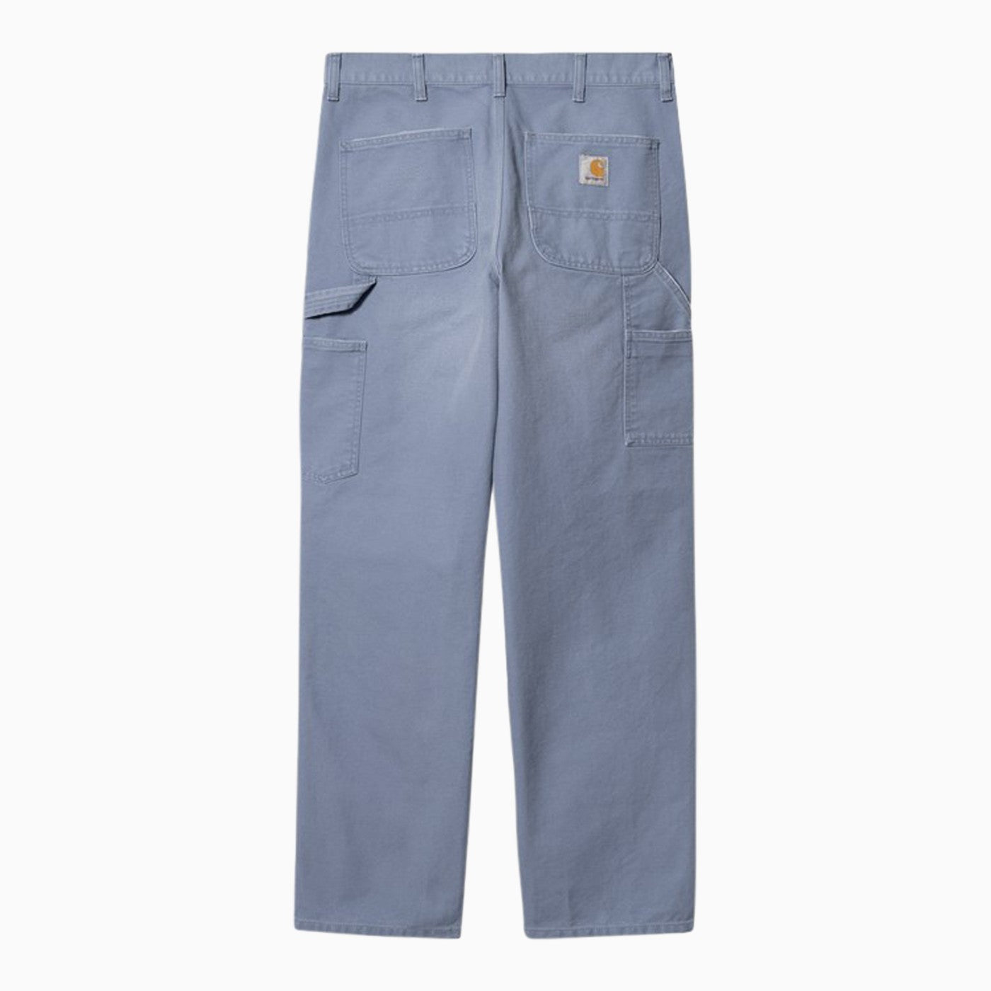Pantaloni di cotone blu di baia di Carhartt Wip con una zip anteriore e un fissaggio a bottone, cicli a cinghia, due tasche laterali Welt e due tasche per patch posteriori con patch logo.