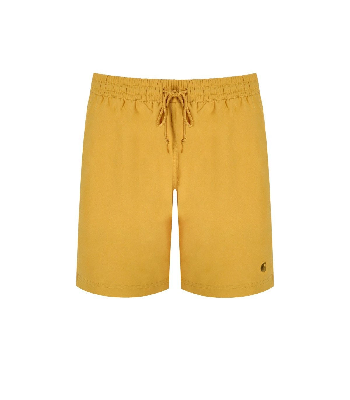 Chase Bermuda Shorts di Carhartt Wip realizzato in poliestere color Ochre, idrorepellente e asciugatura rapida. Ha una vita elasticizzata con coulisse, tasche sui lati e un brief interno. Logo ricamato sul davanti. Fit morbido. Composizione: 100% poliestere.