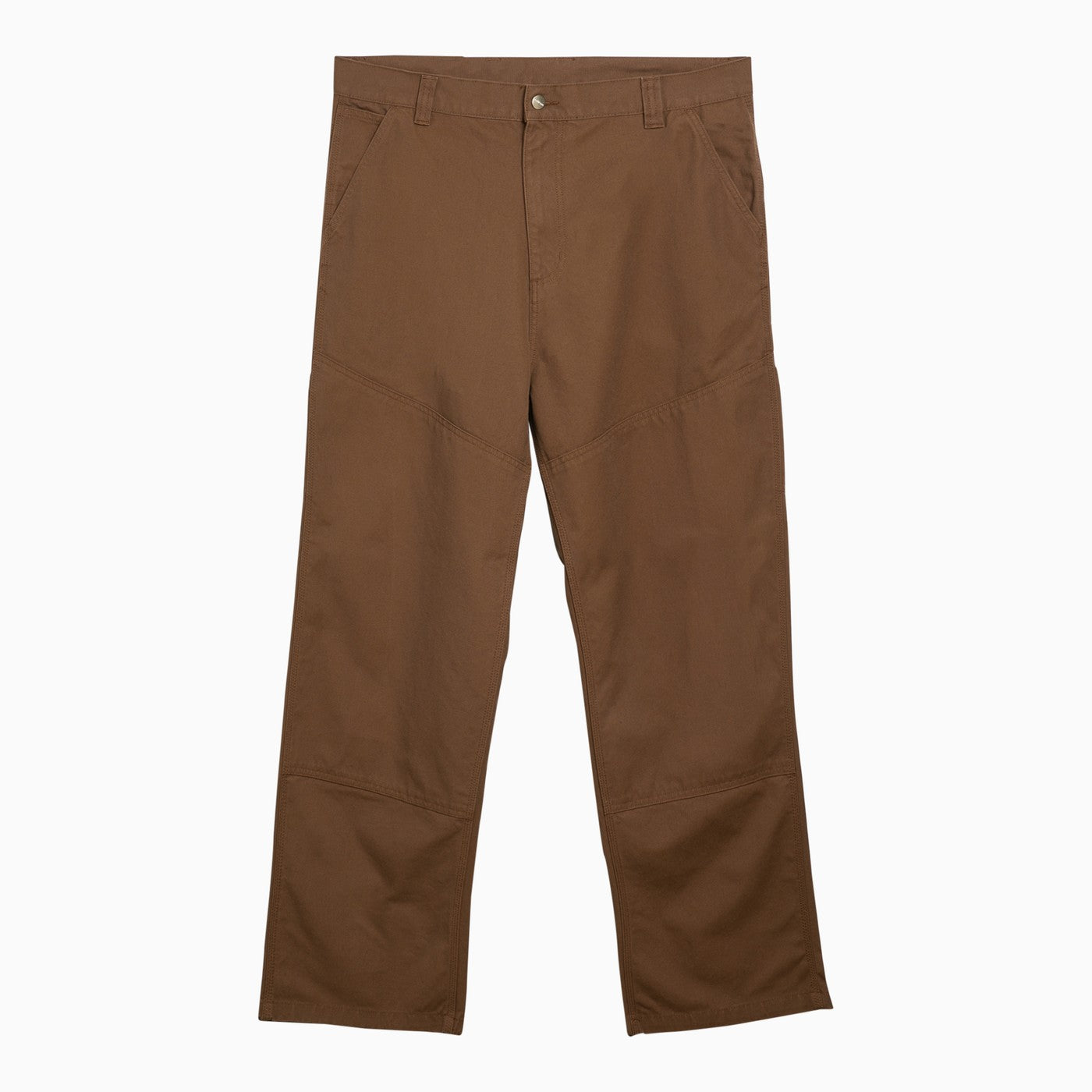 Pantaloni di tela di cotone marrone Hamilton di Carhartt WIP, con anelli a cinghia a vita, tasche sul fronte, sul retro e sui lati e sulla patch di logo sul retro.