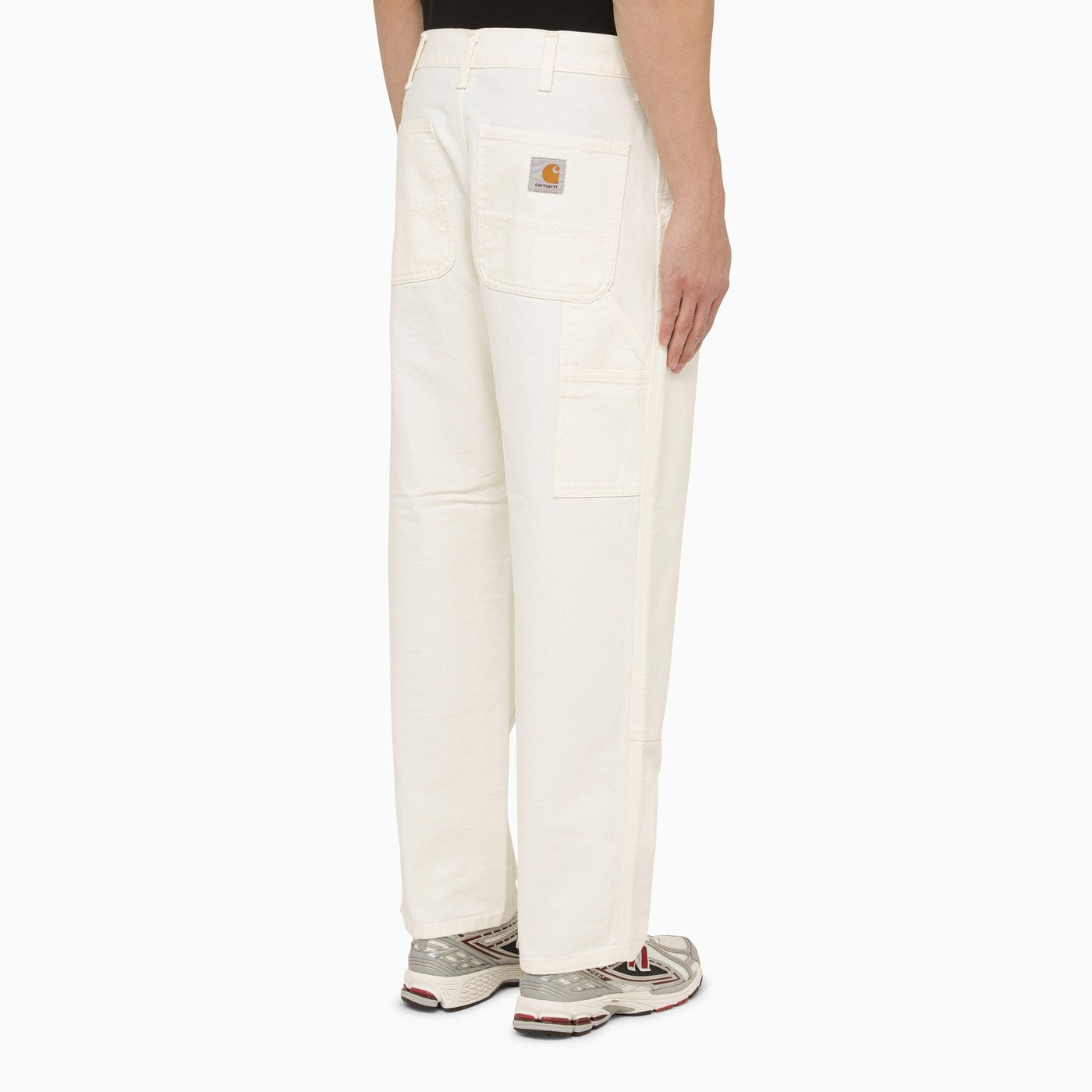Pantaloni di cotone biologico color cera di Carhartt WIP, con diverse tasche anteriori e posteriori, anelli in vita e patch di logo.
