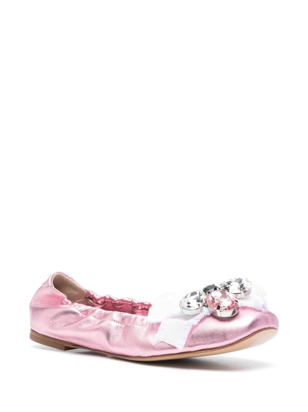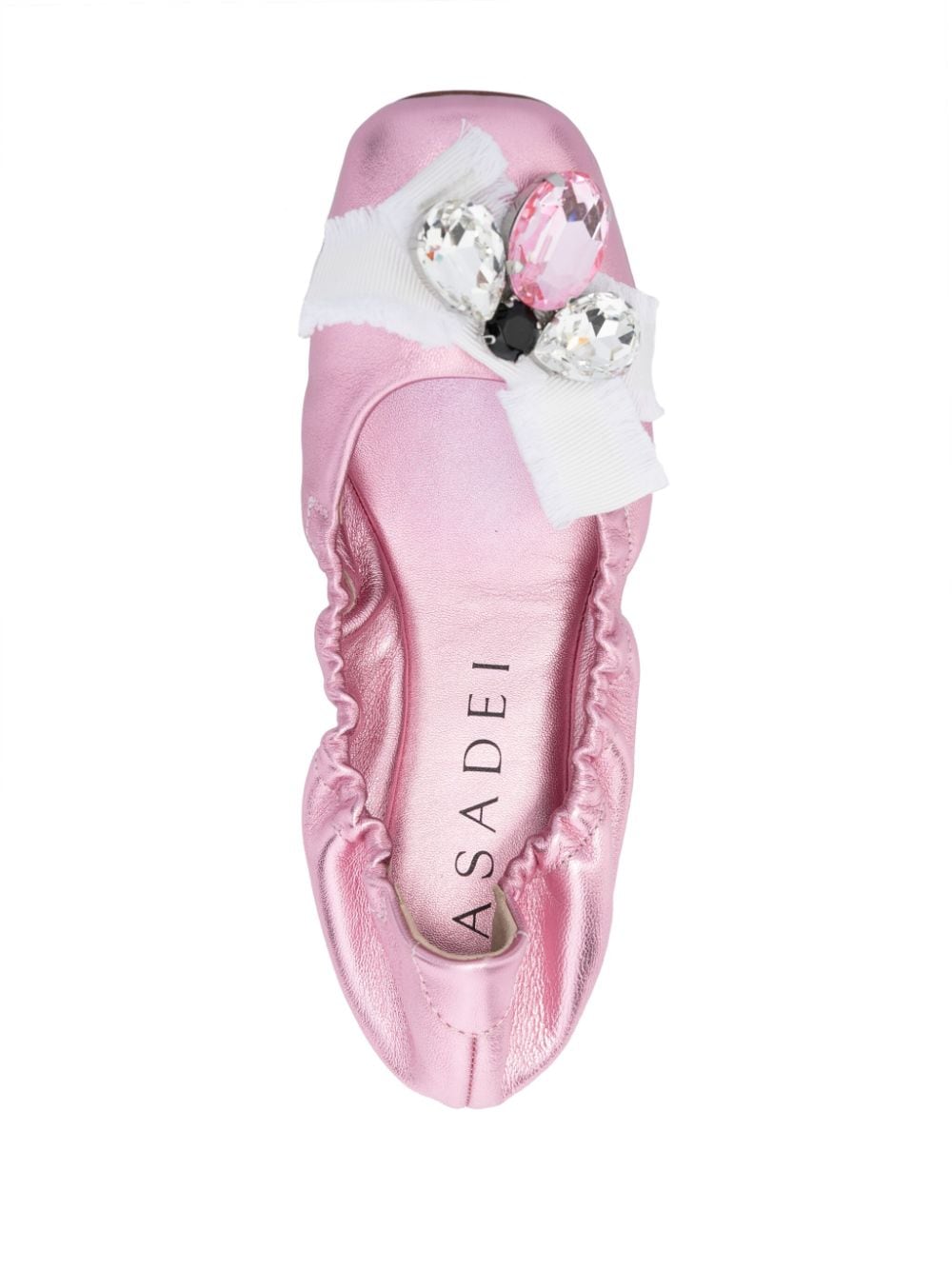Texture a grana in pelle di vitello rosa Effetto metallico di punta quadrata con fiocco a nastro sfilato dettagliato in cristallo abbellimento elastico rivestimento elastico inolio in pelle in pelle piatta in pelle piatta in stile slip-on