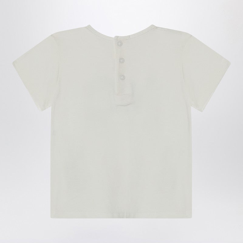 T-shirt al collo dell'equipaggio di cotone bianco Chloé, con maniche corte, ricami con lettere logo contrastanti sul davanti e bottoni a scatto sul retro.
