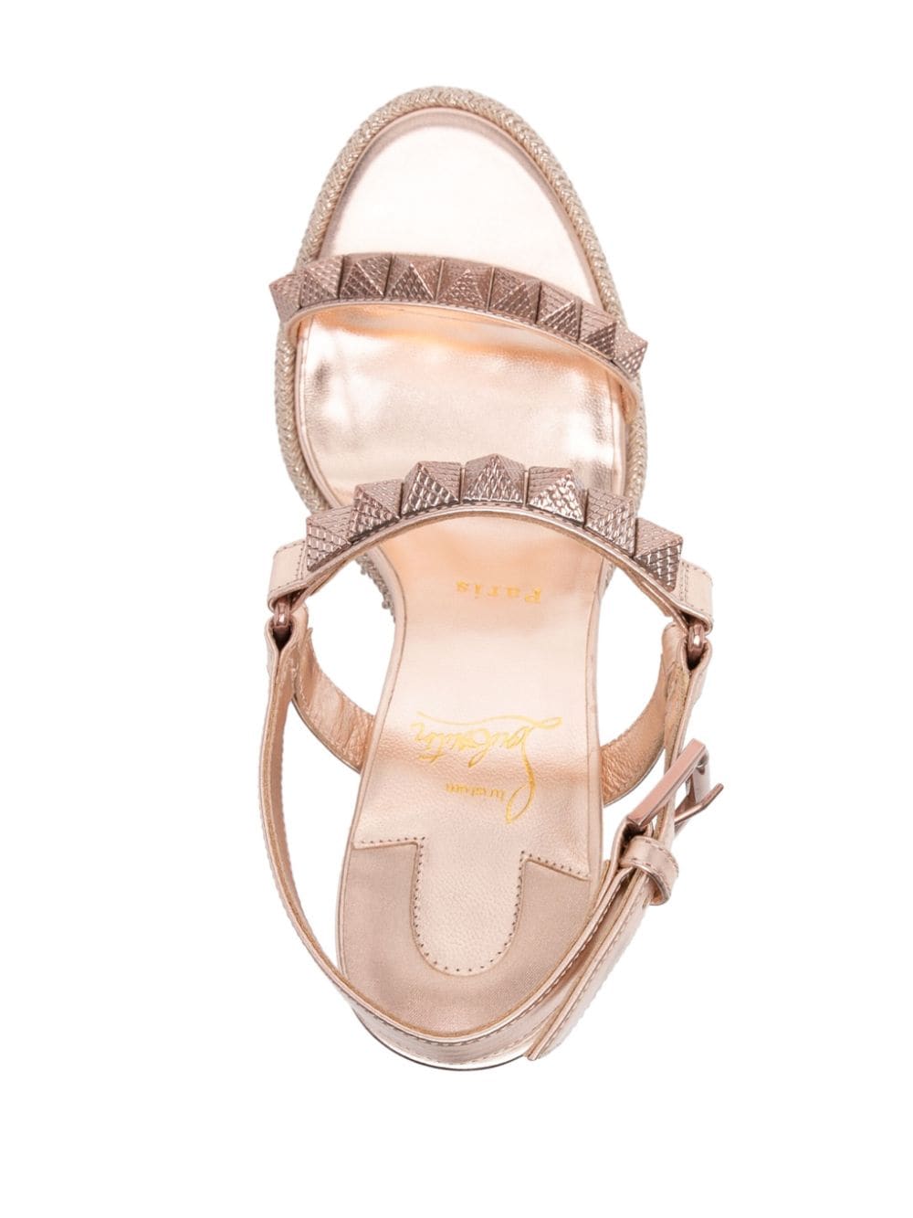 Blush Pink Pulf in pelle con borchie che dettaglia la caviglia alla caviglia con fibbia rotonda a cuneo aperto tallone a cuneo intrecciato intrecciata Raffia