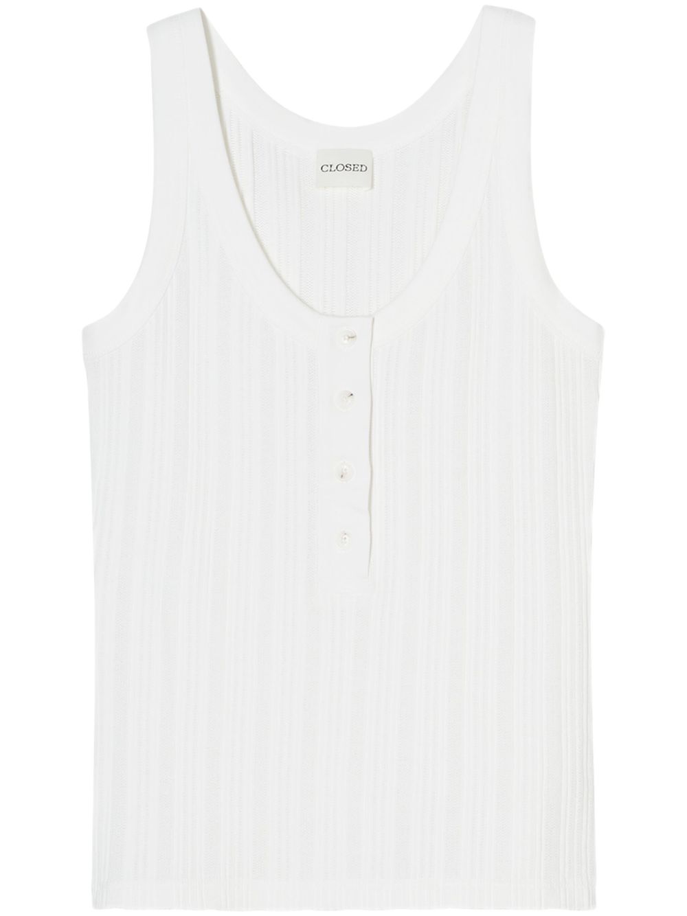 white front button placket U-neck sleeveless