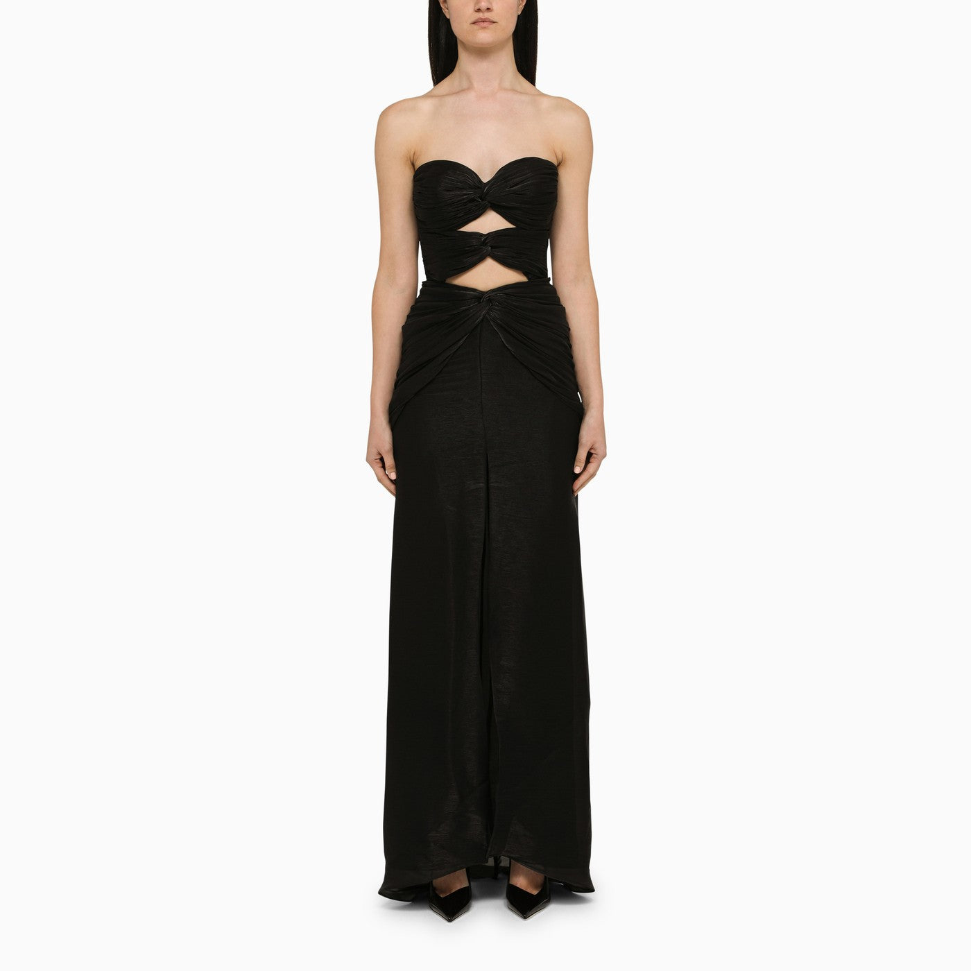 Black Lurex-Effect Georgette Long Dress di Costallos con dettagli ritagliati sulla parte anteriore, a fessura profonda e scollatura a cuore.
