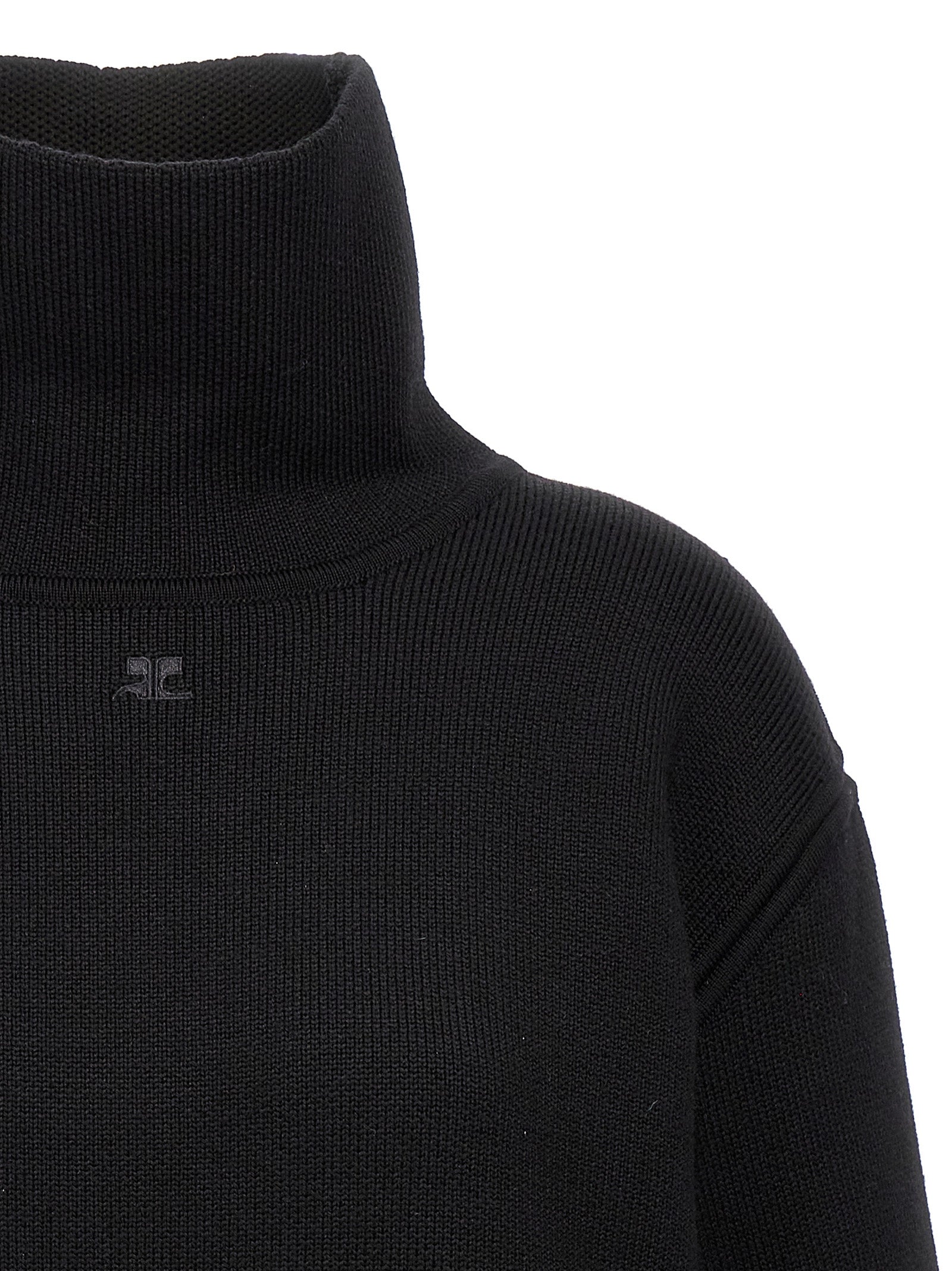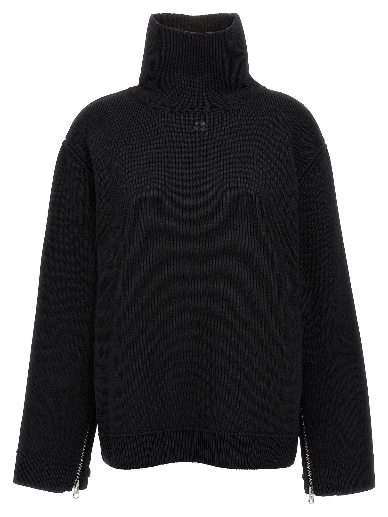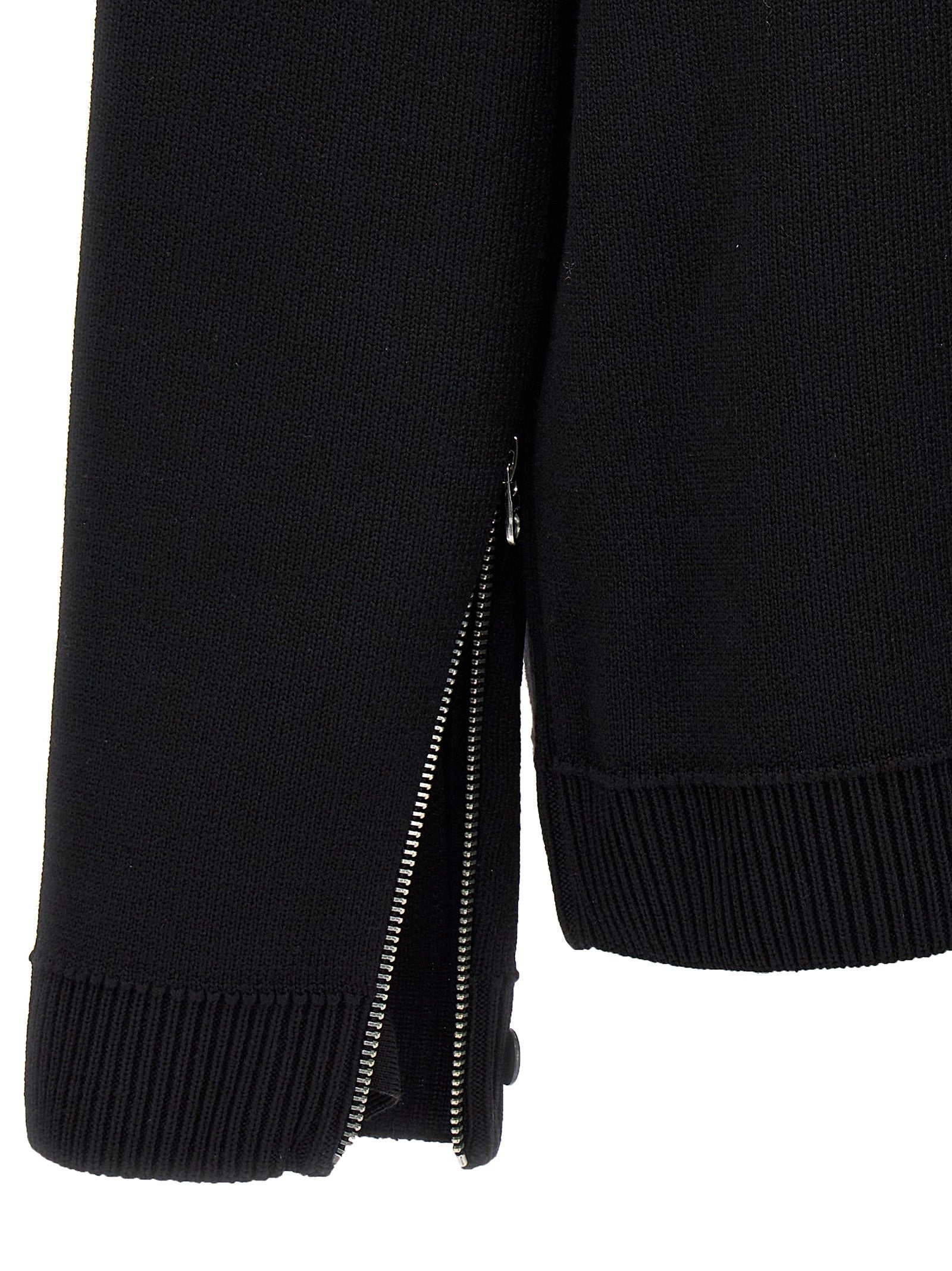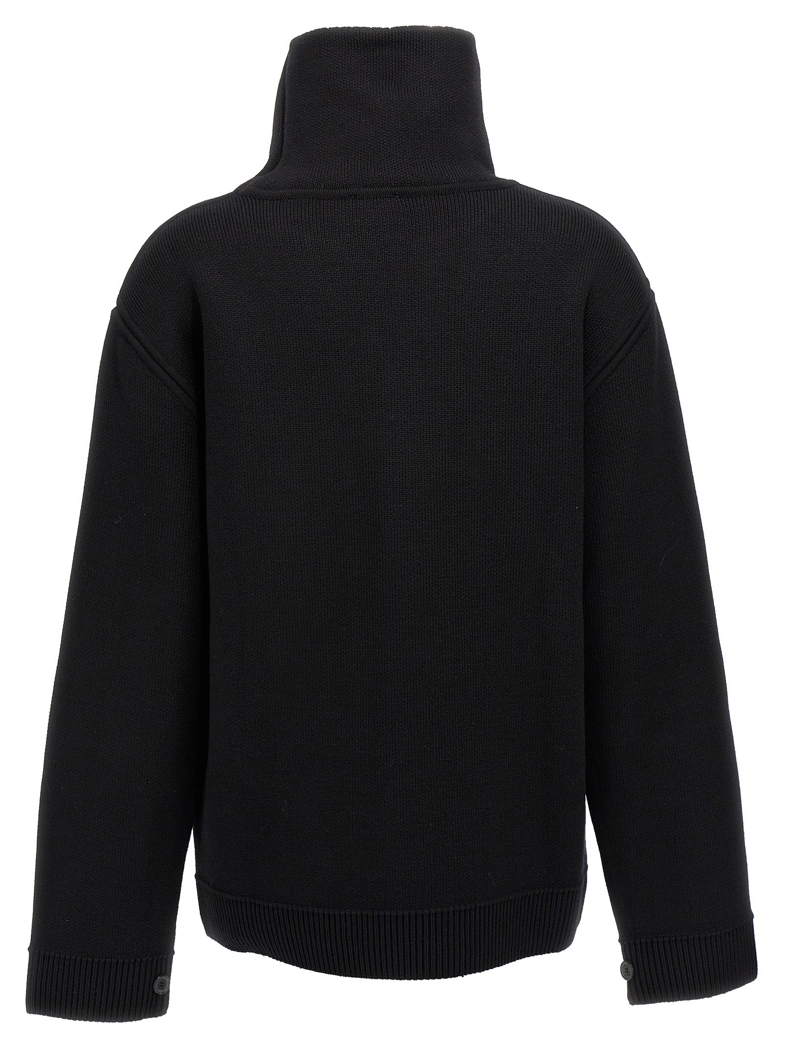 Maglione di lana da "munzino di grandi dimensioni" con ricamo a logo anteriore, collo alto, maniche lunghe con zip lungo tutta la lunghezza.