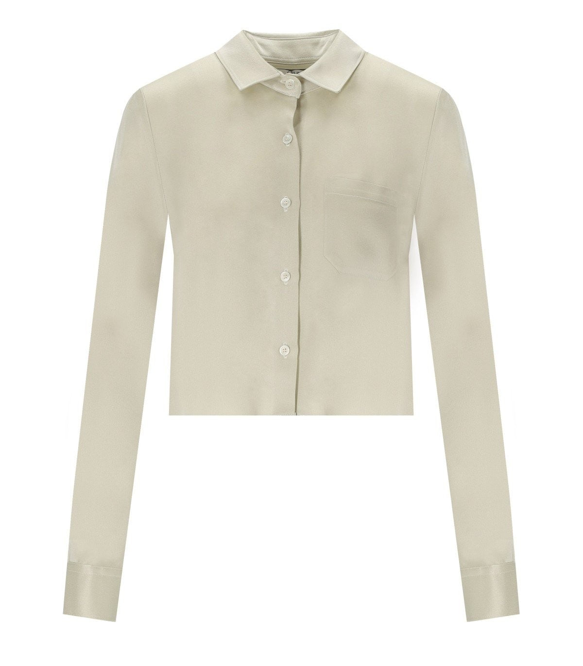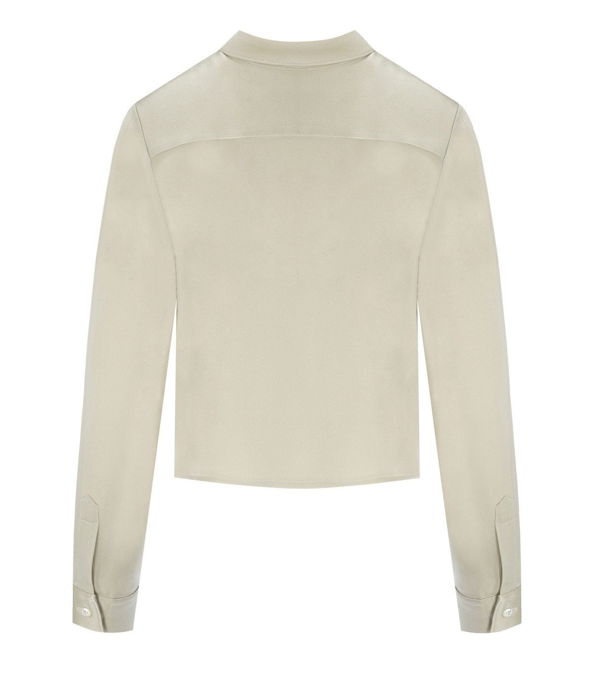 Shirt Dafne di Cruna fatta di viscosa a effetto satinato in sfumature di verde/beige. Tasca del torace, chiusura dei pulsanti. Taglio delle colture. Composizione: viscosa al 100%.