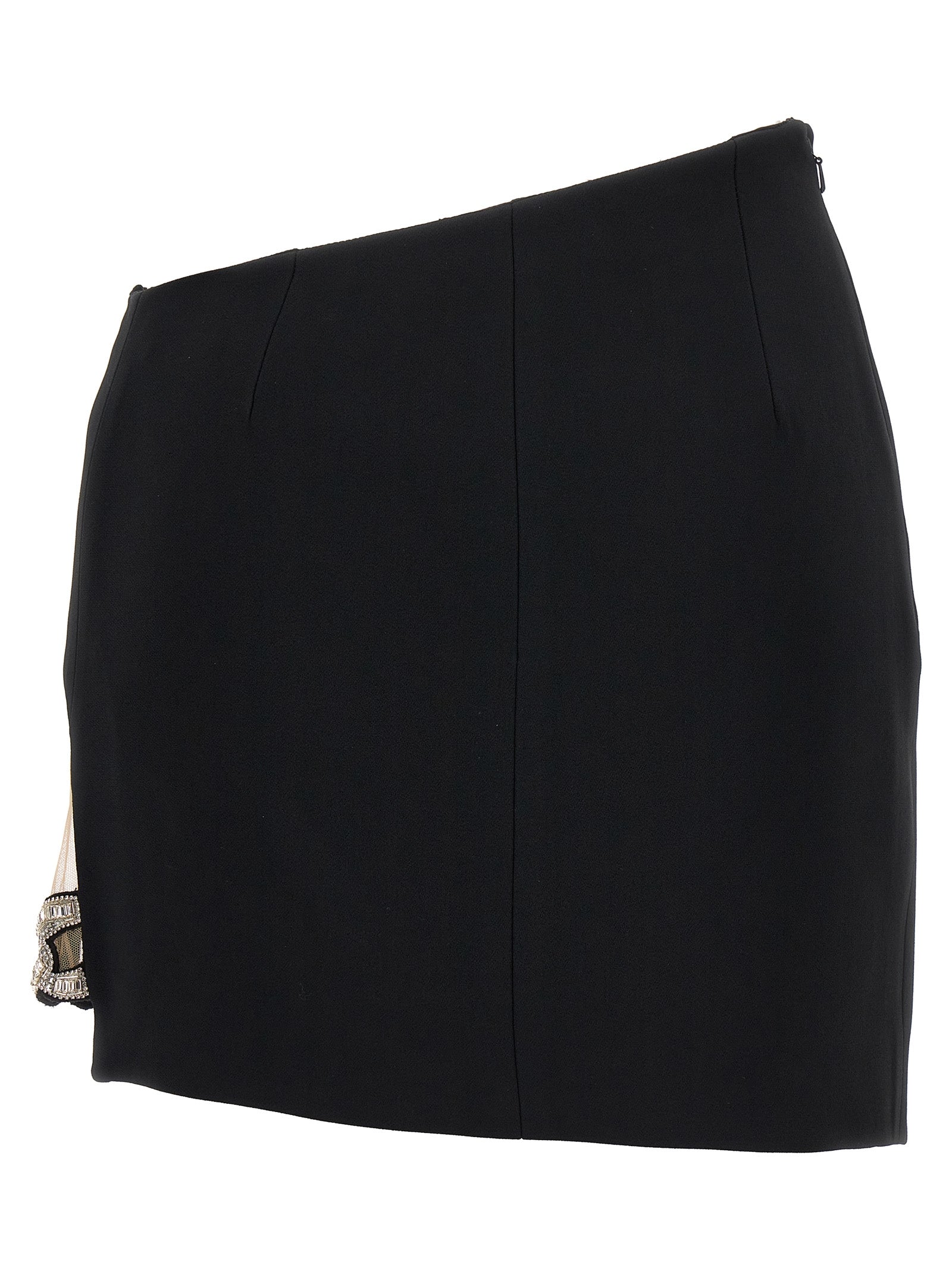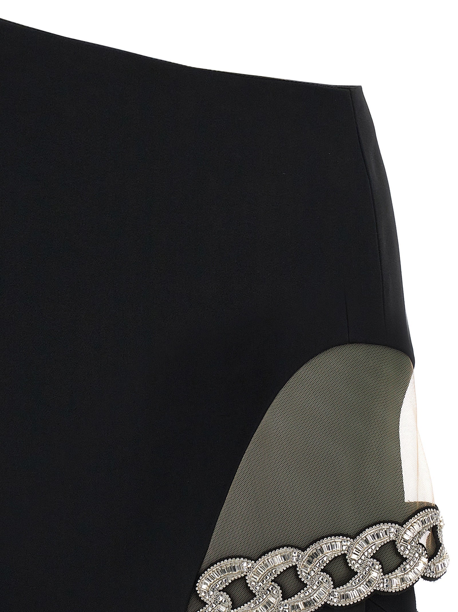 Gonna '3D Crystal Chain Mini "in allungamento Cady, dettagli in tulle e catena di gioiello, chiusura laterale con zip.