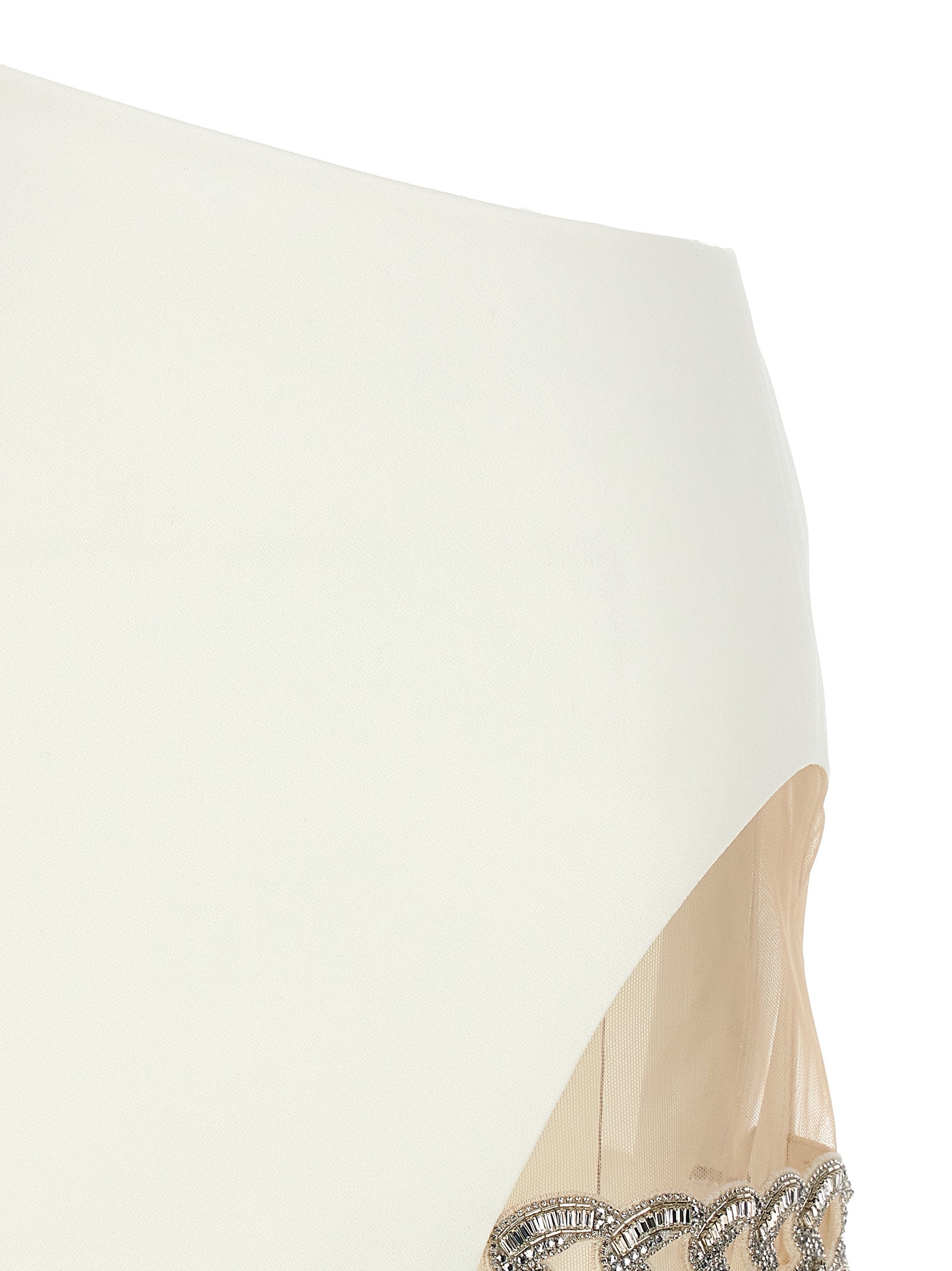 Gonna '3D Crystal Chain Mini "in allungamento Cady, dettagli in tulle e catena di gioiello, chiusura laterale con zip.