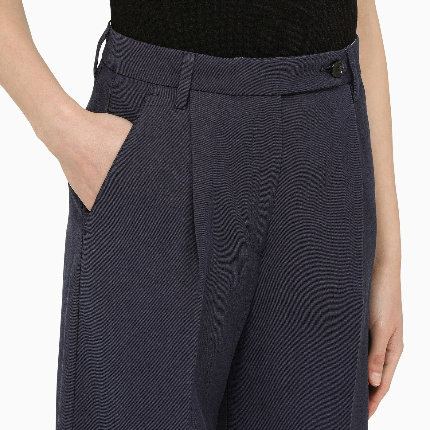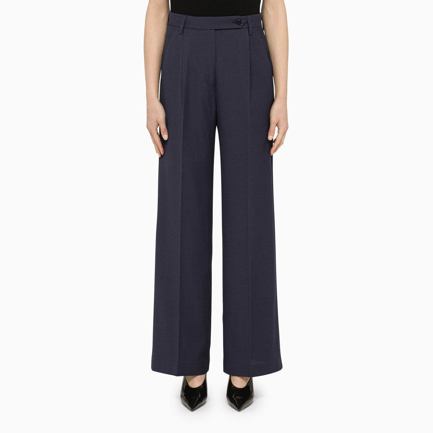 Pantaloni del dipartimento 5 in viscosa blu, con una vita alta, due tasche sui lati e due tasche a forcella sul retro.