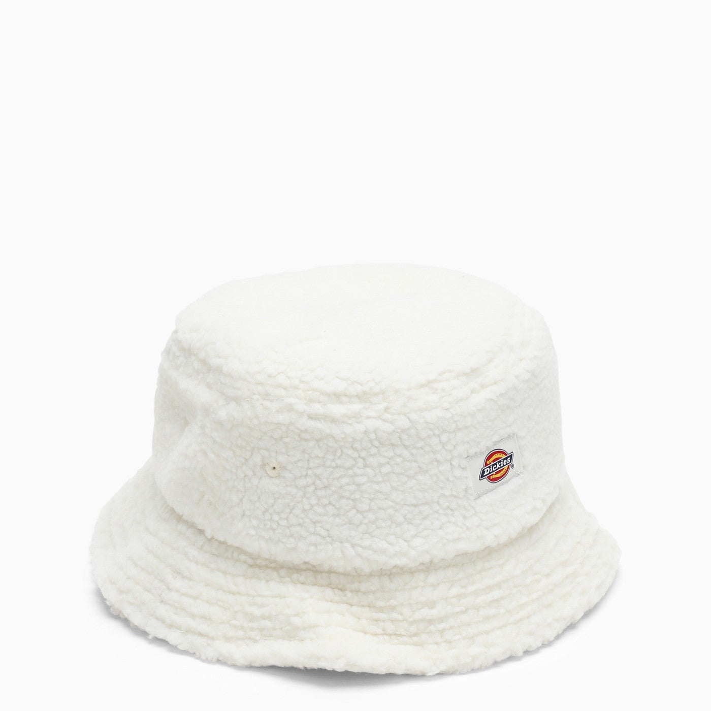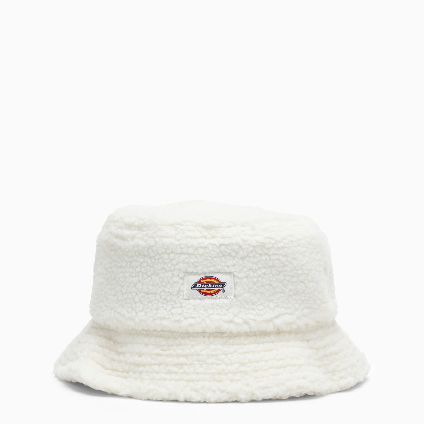 Fisherman's Hat di Dickies in White Shearling Effect, con logo cucito sul davanti.