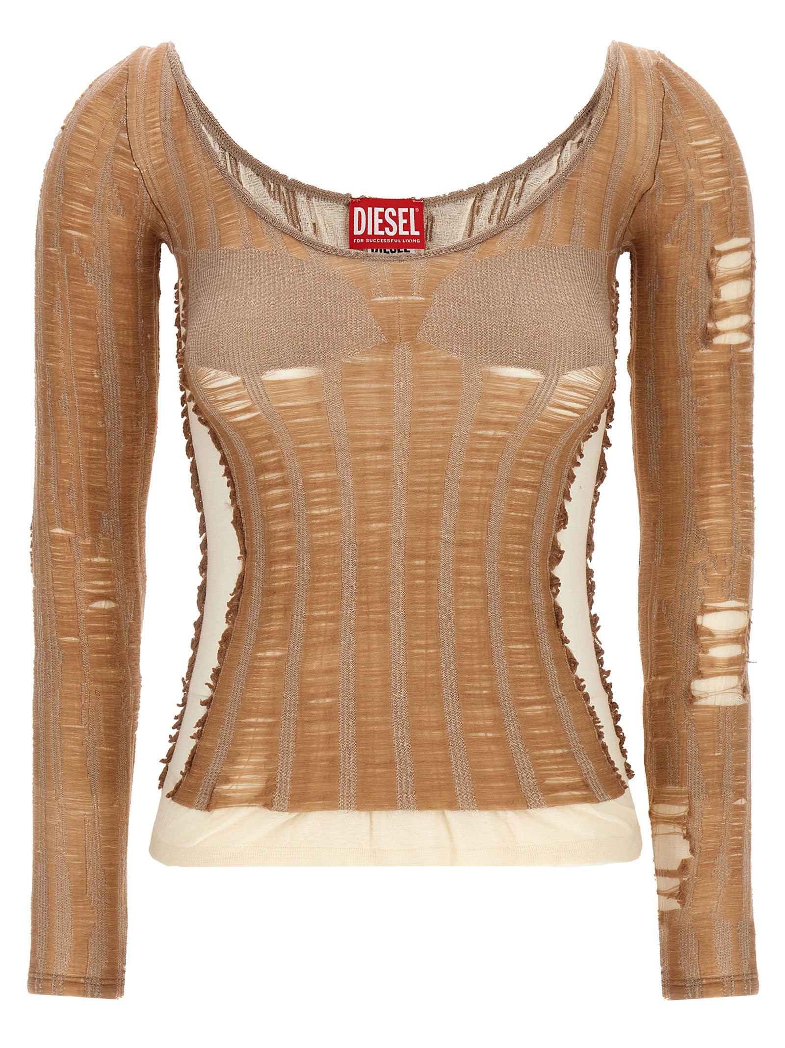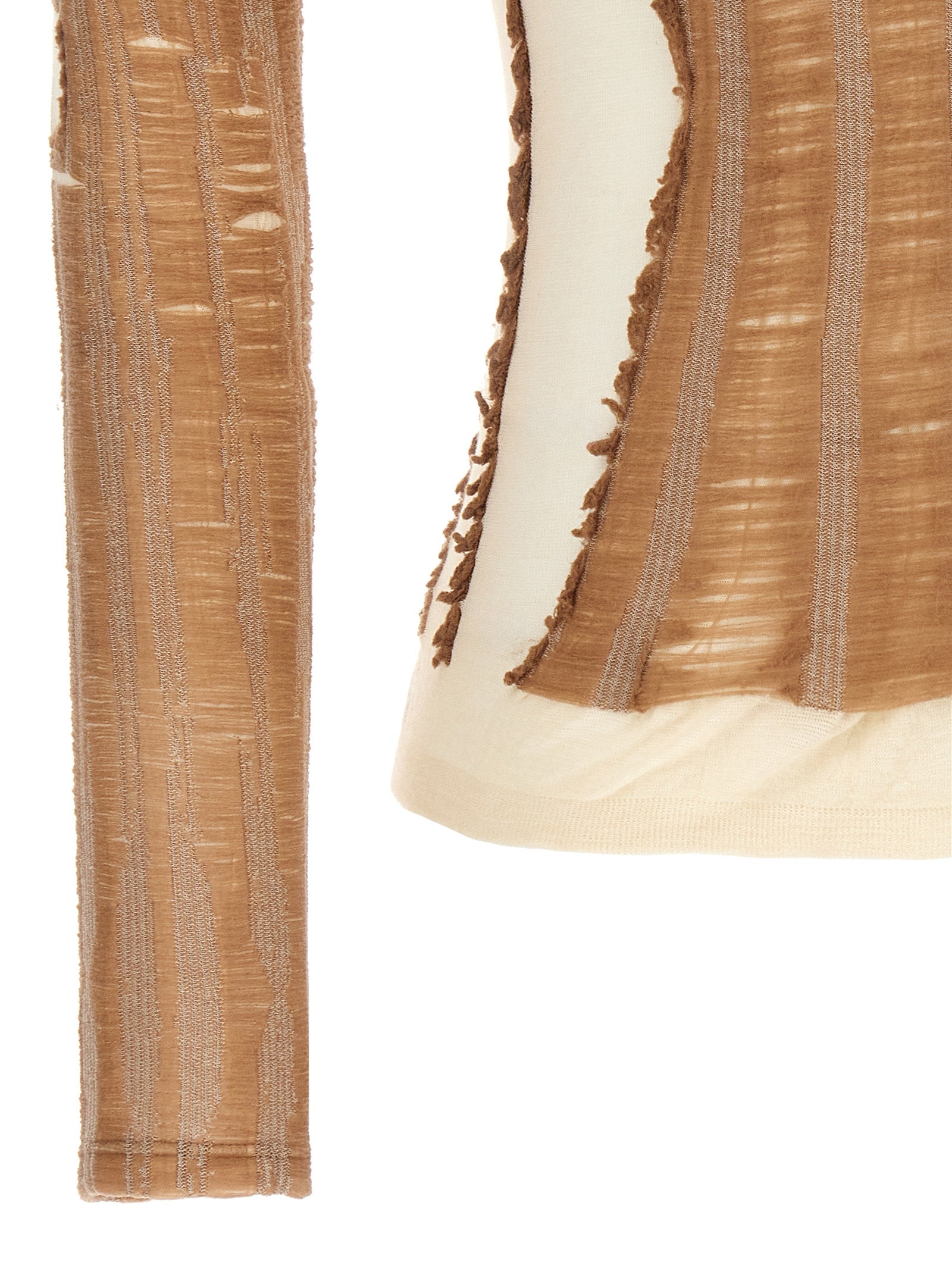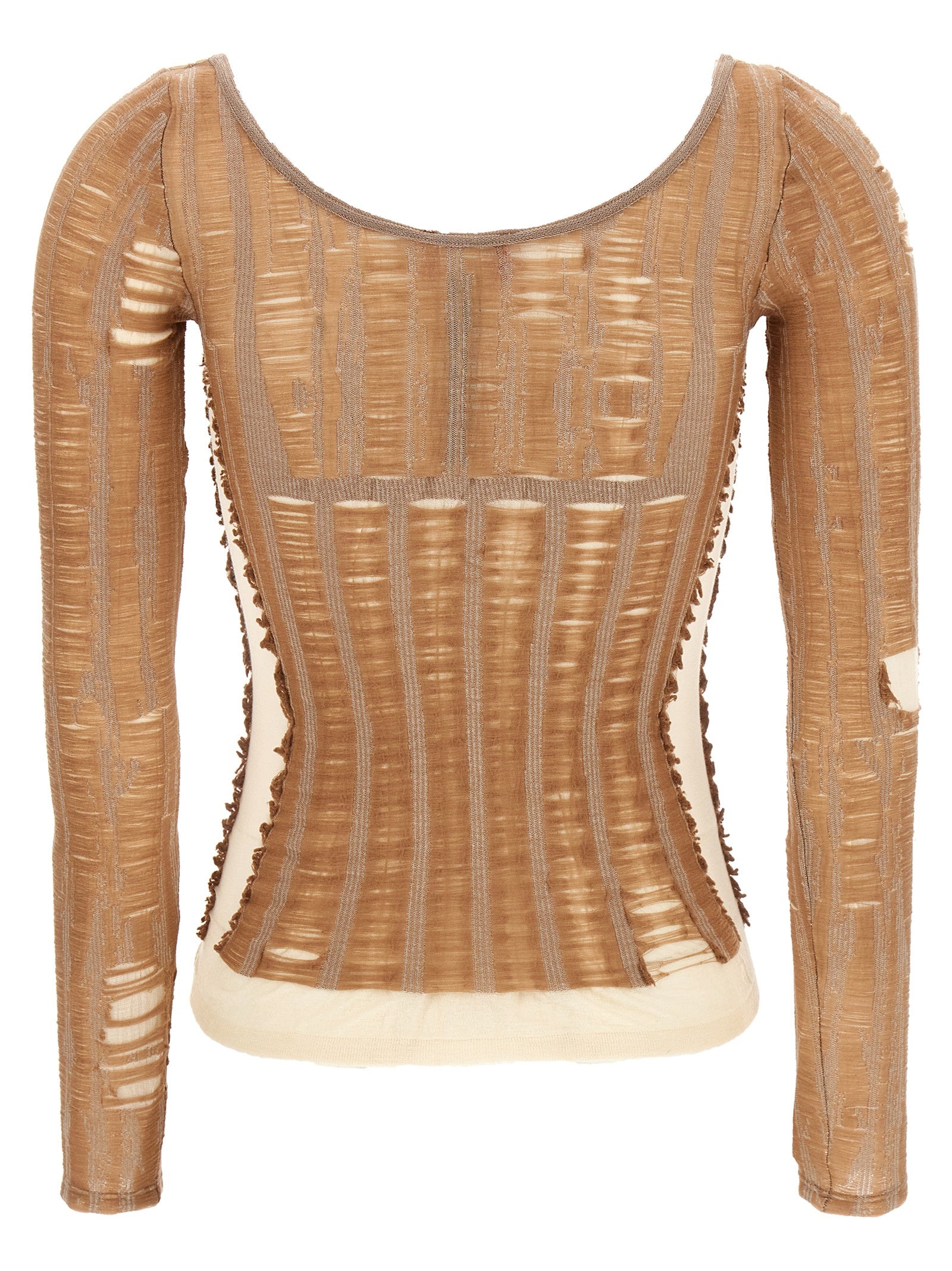'M-Calai 'Top in miscela di cotone allungata con effetti di smagliatura angosciata, effetto di lingerie senza soluzione di continuità creata dal modello Jacquard sul busto, scollatura larga rotonda, maniche lunghe.