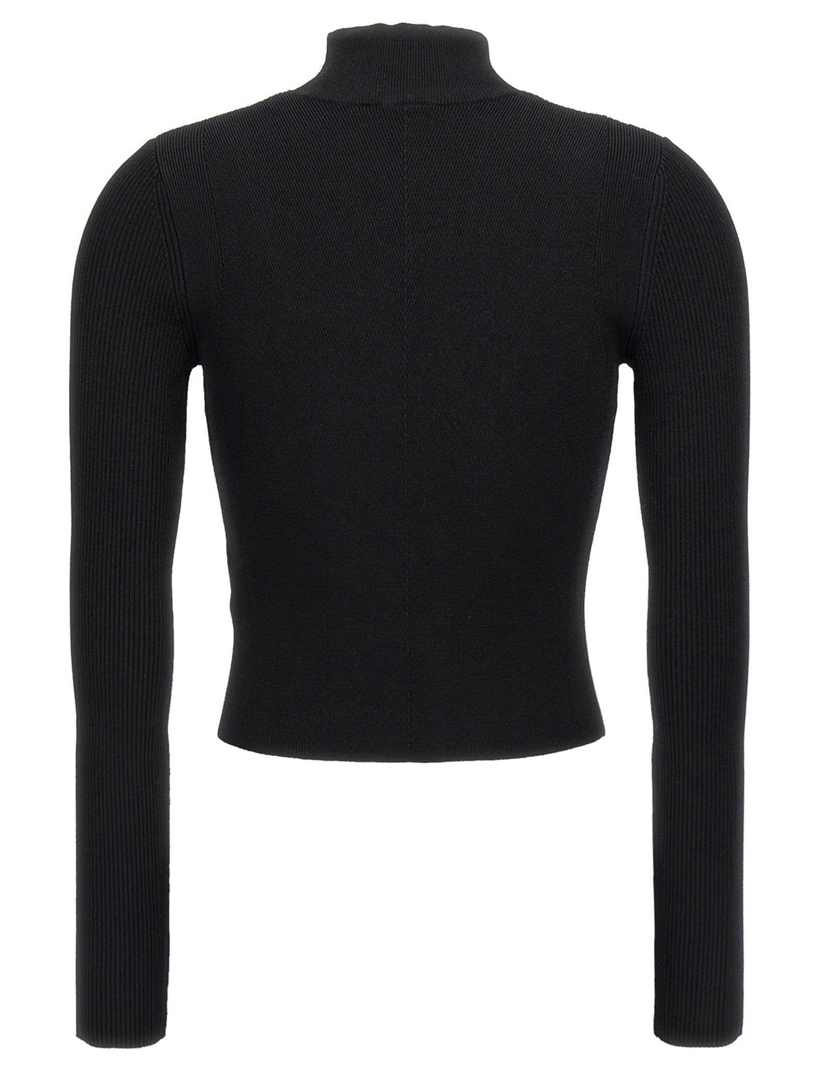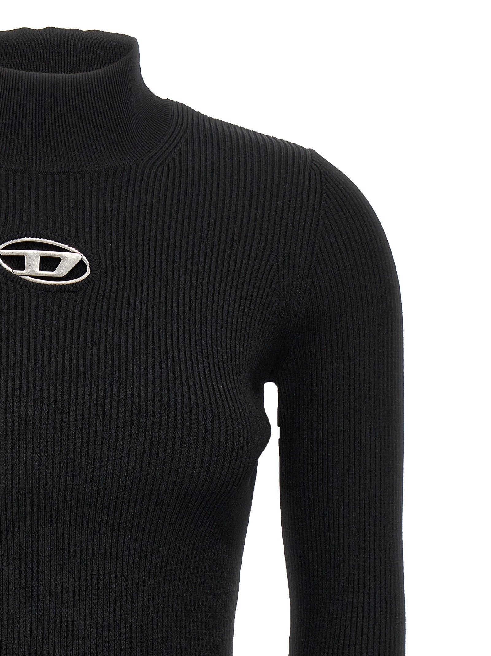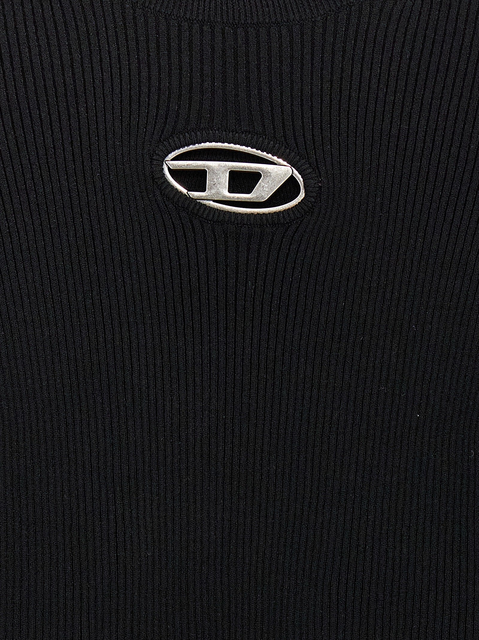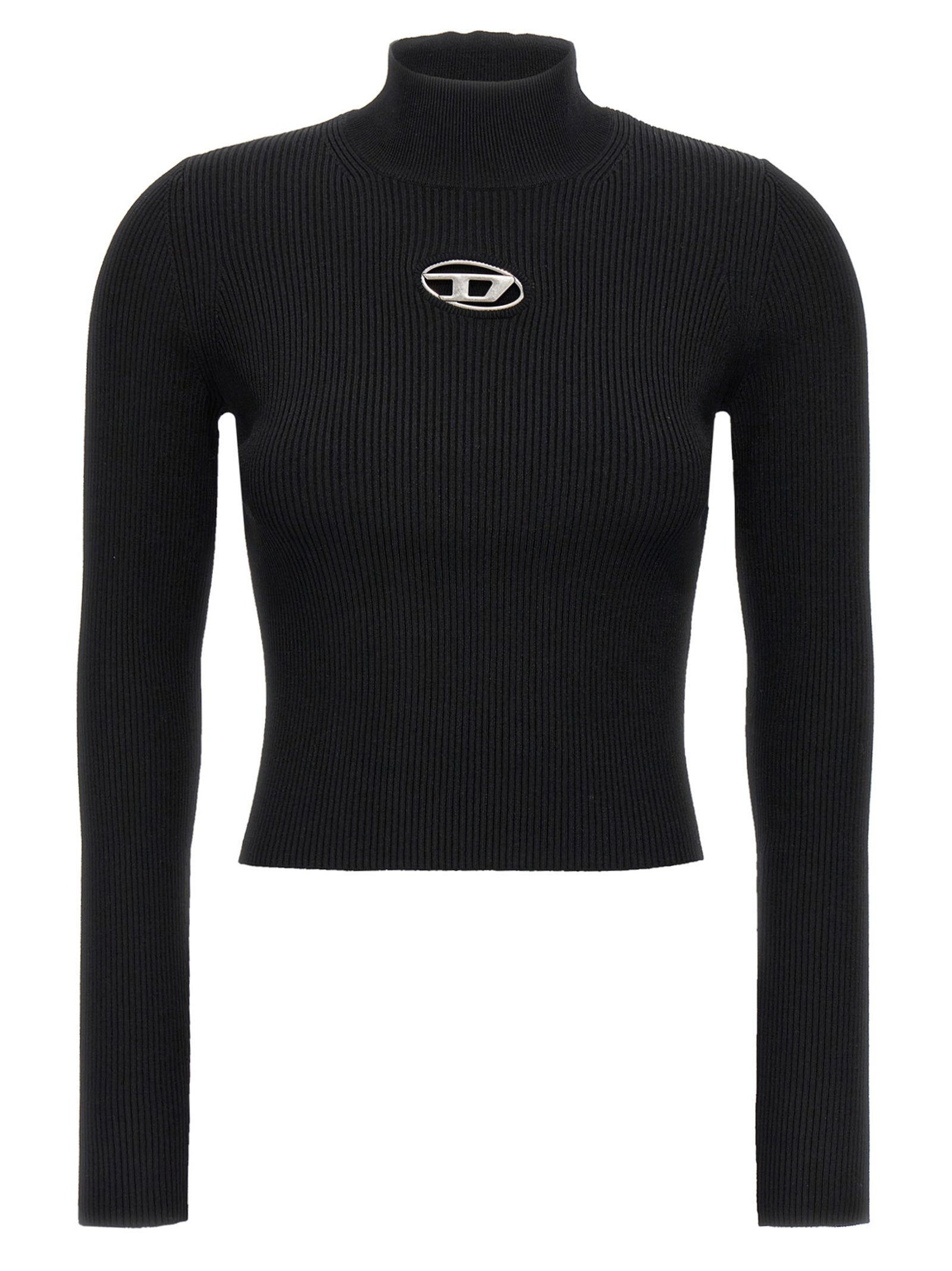'M-Valari-tn 'a costine di miscela di miscela viscosa, logo in metallo anteriore, collo alto, maniche lunghe.