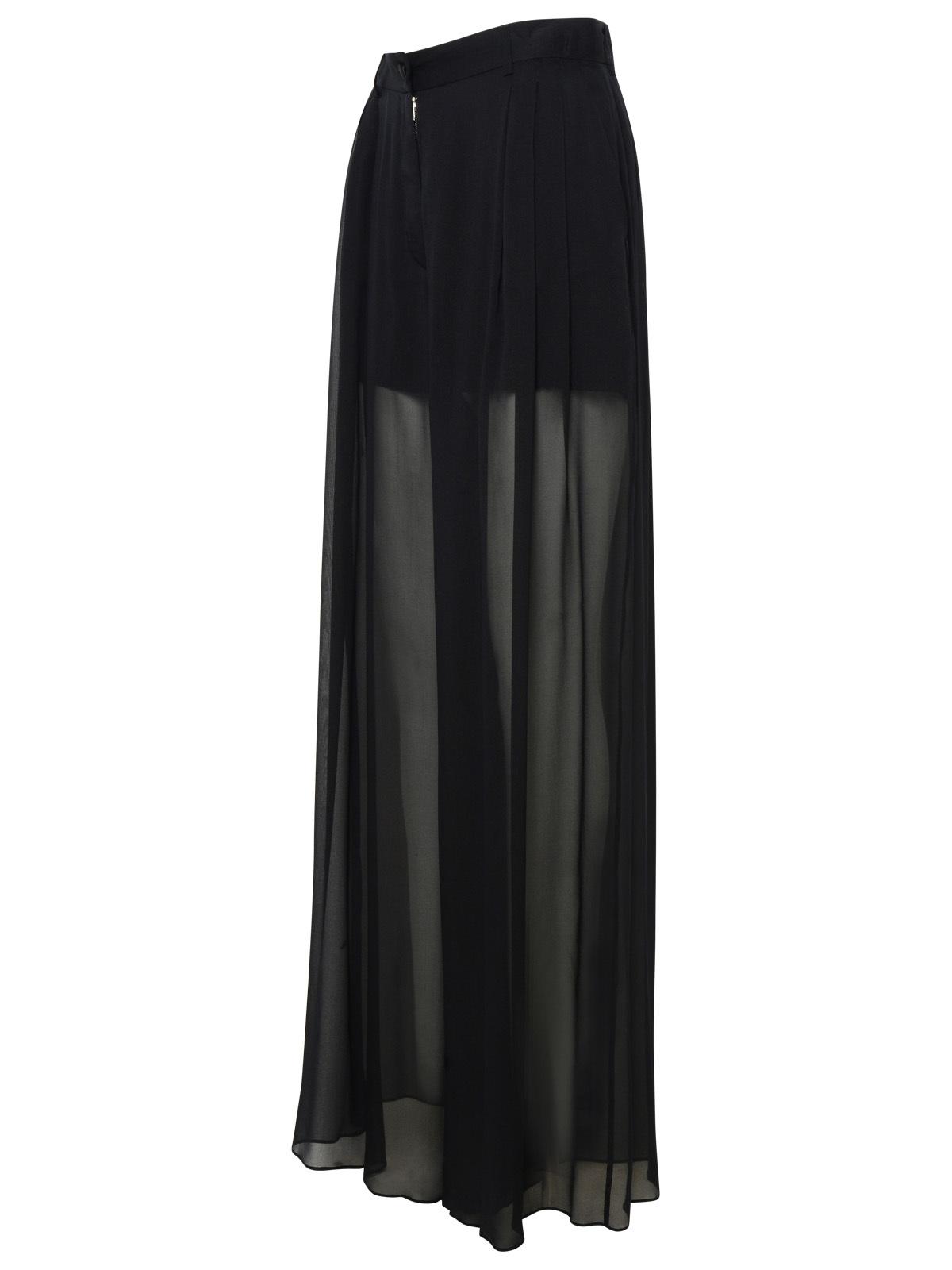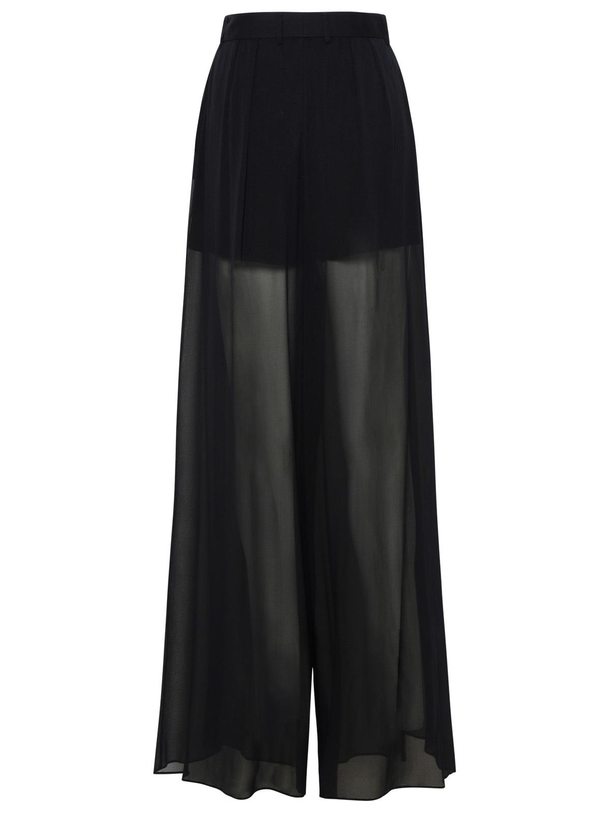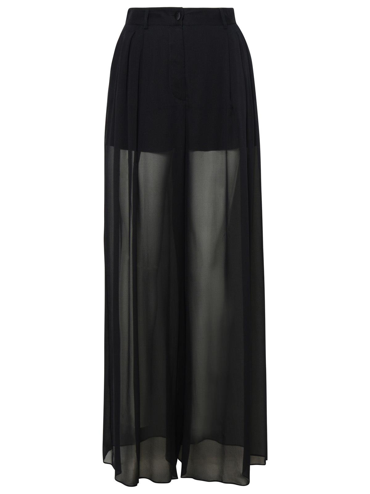 Pantaloni a vita alta a gamba "Dolce", pantaloncini interni rimovibili in crepe de chine di seta elastica, anelli della cinghia, tasche laterali, chiusura anteriore con zip invisibile e bottone coperto di raso