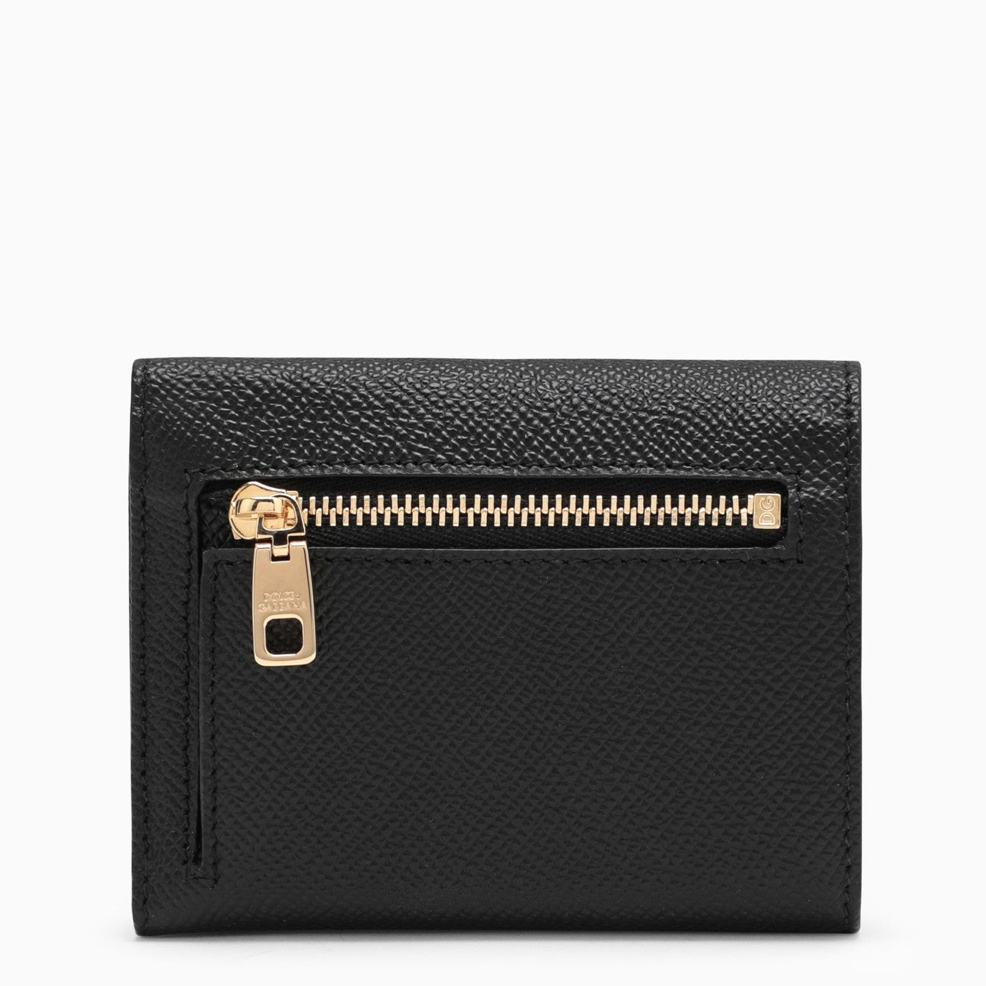 Continental Wallet di Dolce & Gabbana in pelle nera con la placca del logo frontale, una tasca con zip posteriore, una chiusura a bottone a scatto, hardware tono in oro, un vano per nota e slot a schede interni multipli.