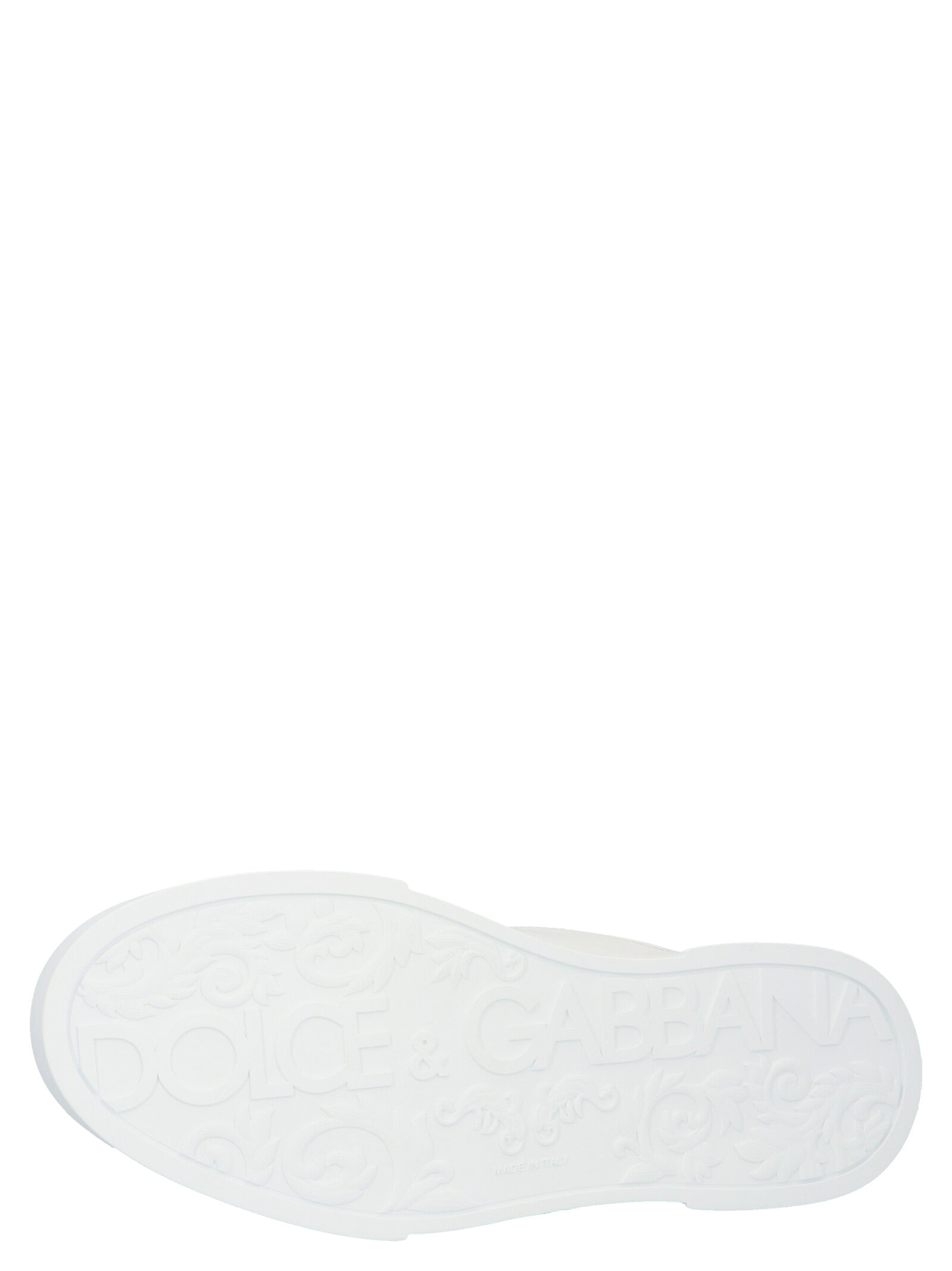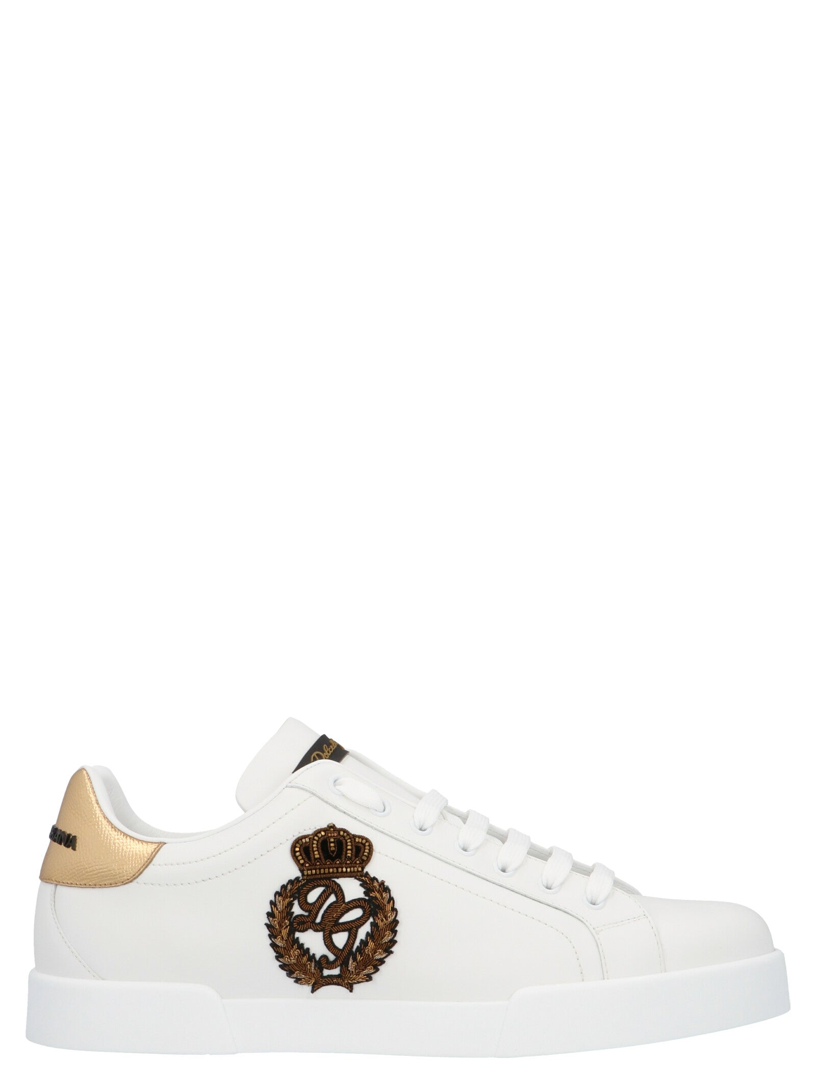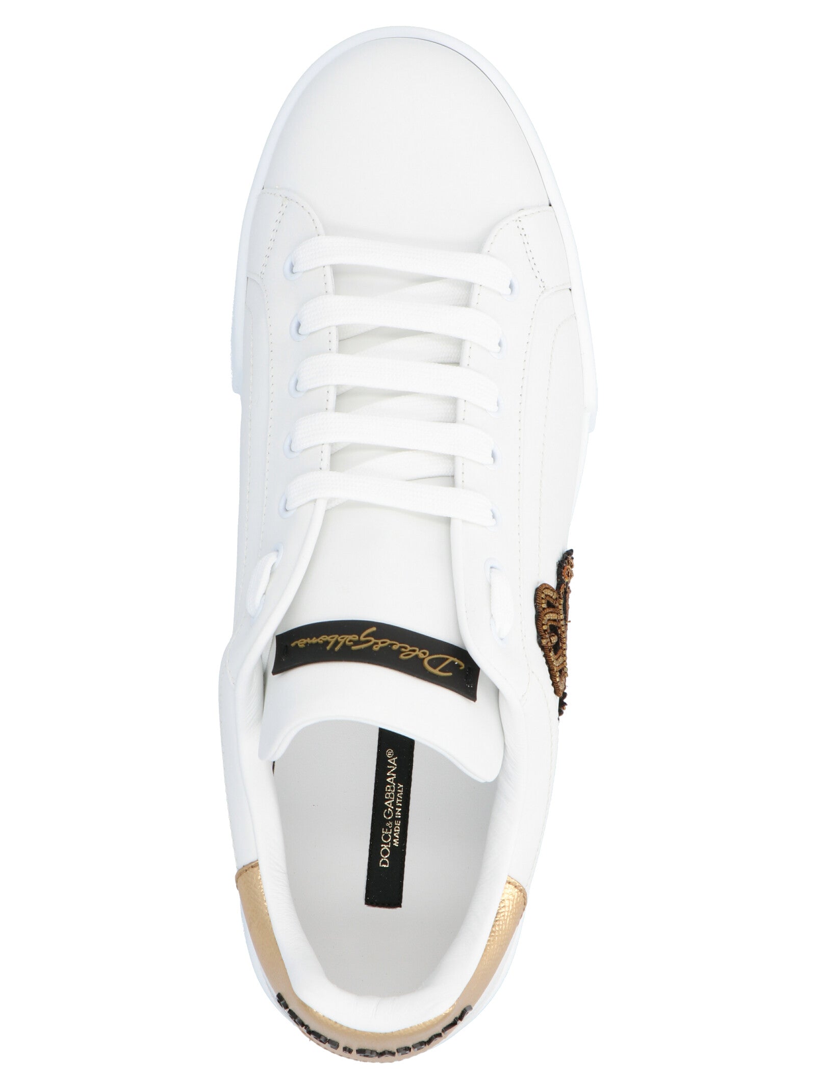 Dolce & Gabbana Signature Sneaker in pelle "Portofino" in pelle con una patch di logo sacro ricamato, inserto in pelle metallica dorata sulla linguetta del tallone.