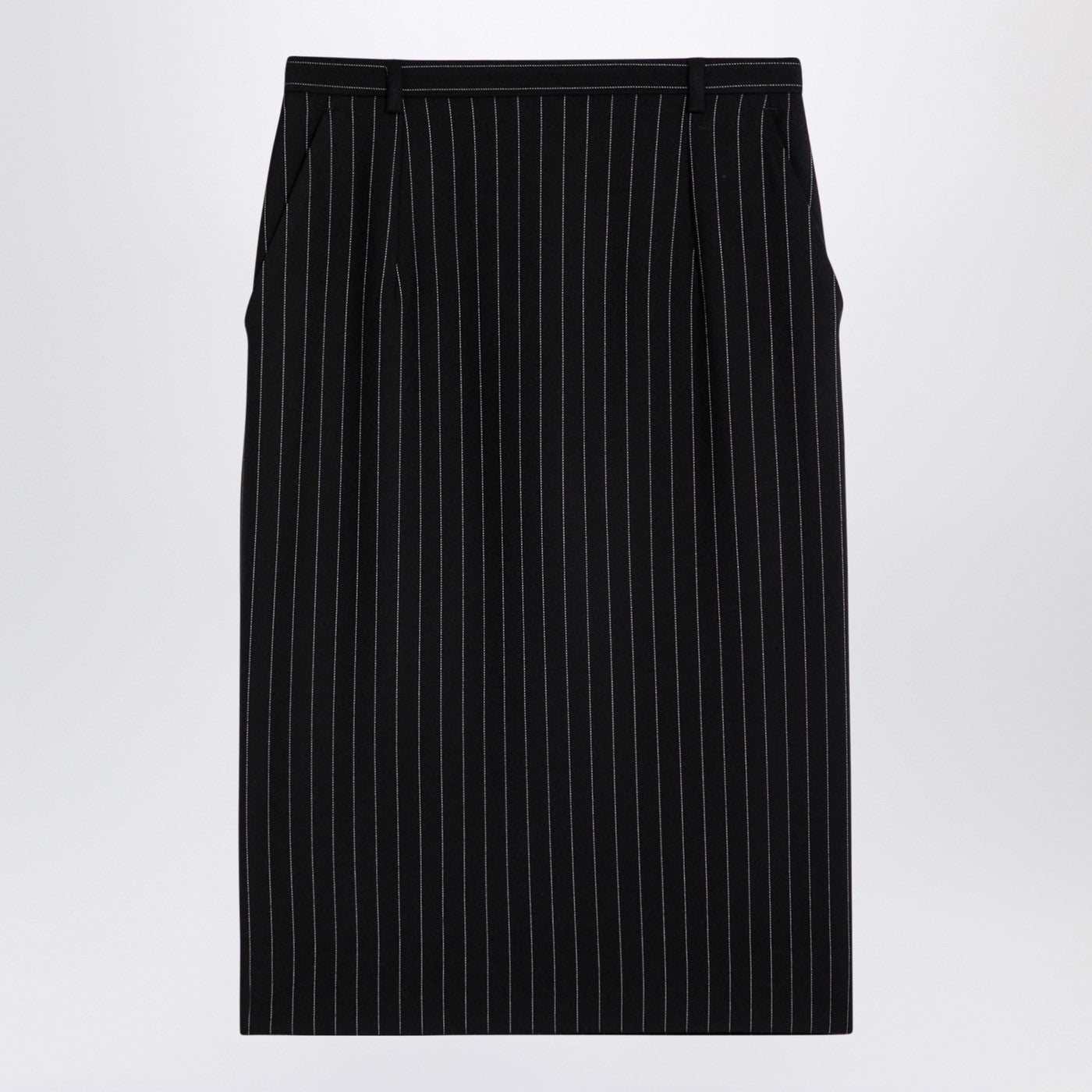 Gonna a matita MIDI di Dolce & Gabbana in gessiolo di lana virgin nera con design a vita alta, anelli della cintura, fissaggio con zip posteriore nascosto, tasche a marcia sul lato e tasche a forcella abbottonata sul retro.