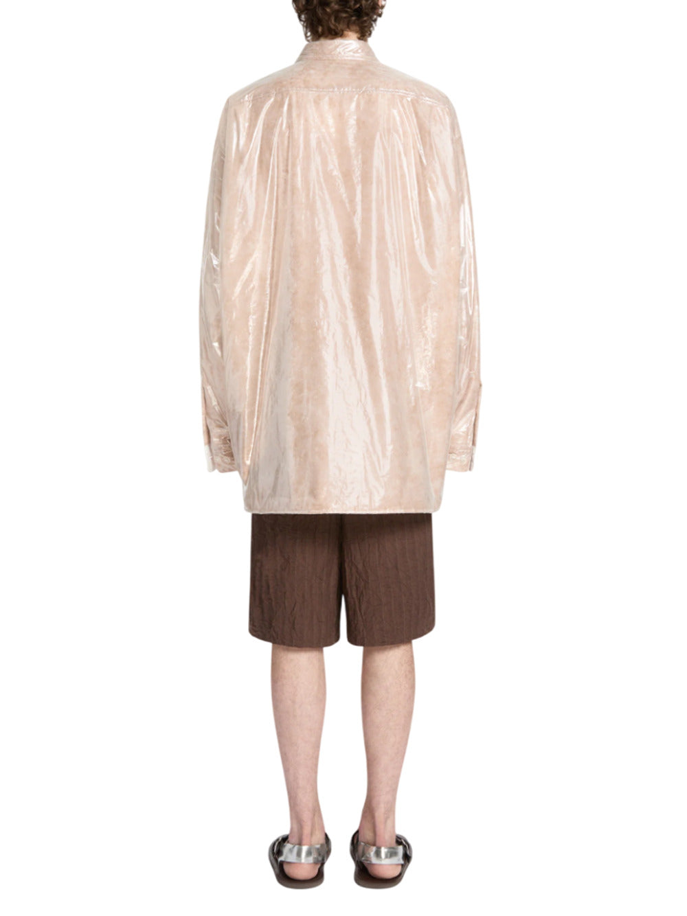 CAMICIA A SBUFFO DALLA CONDIBILIZA AMPIA in Nylon Trasparente con Ovatta di Cashmere Riciclato.