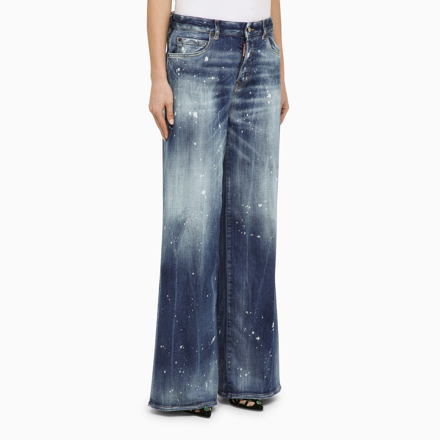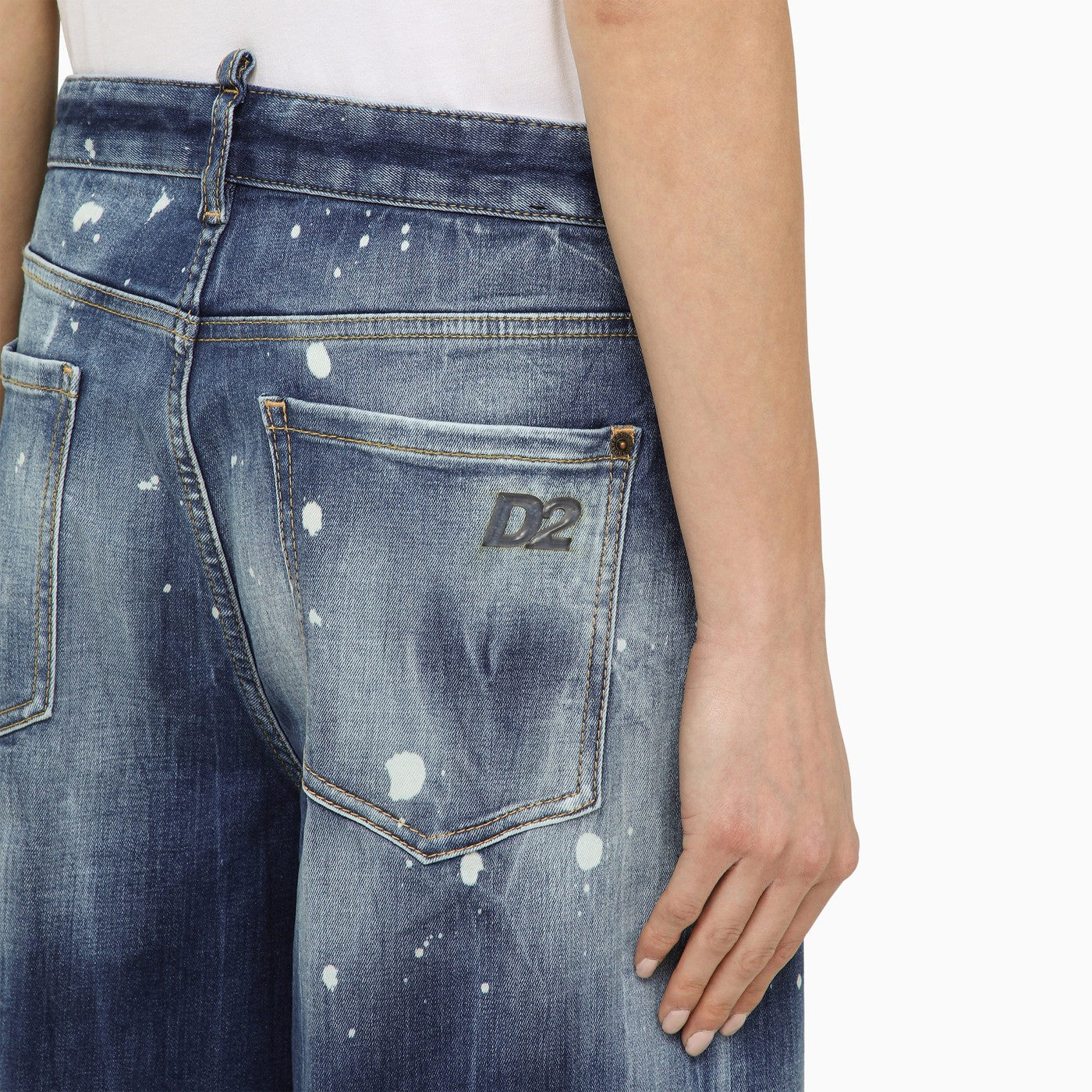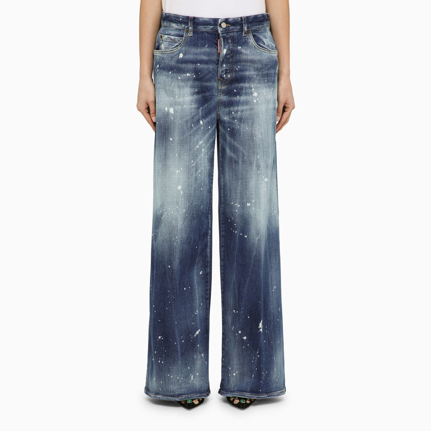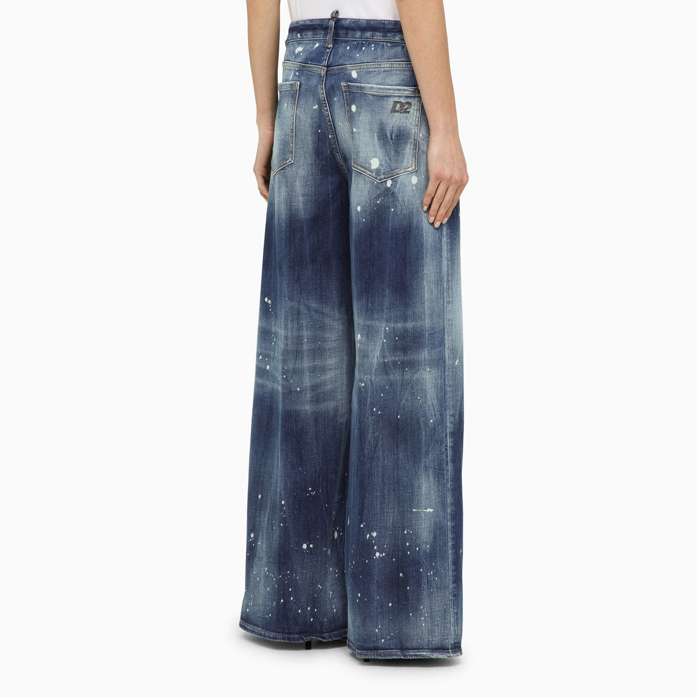 Navy Blue Navy Cotton Denim ha lavato i jeans a gamba larga da Dsquared2 con un design di usura e macchia tutto over, una zip anteriore e un fissaggio a bottone, anelli della cintura, un classico design a cinque tasca, una targa logo cucita sul davanti e un logo sul retro tasca.