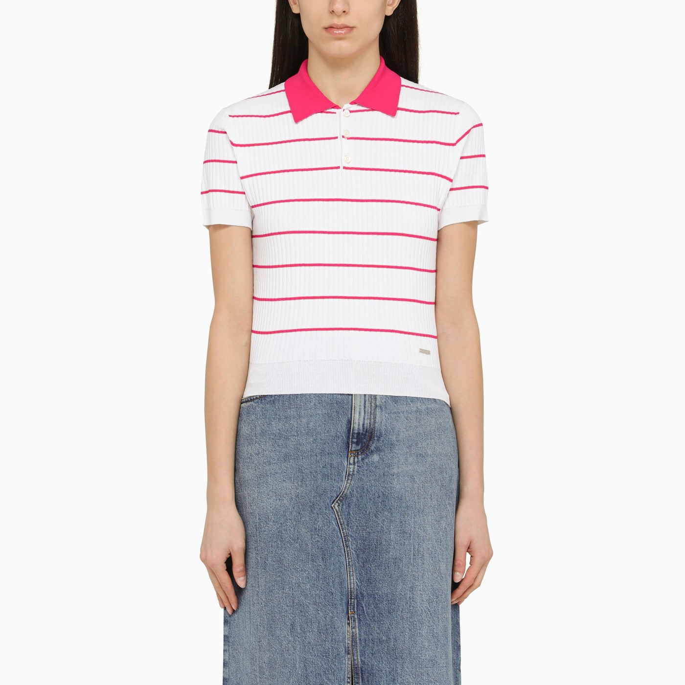 Polo con miscela viscosa a strisce bianche e fucsia di Dsquared2 con maniche corte, un design a coste, un colletto a contrasto e una placca logo sul davanti.