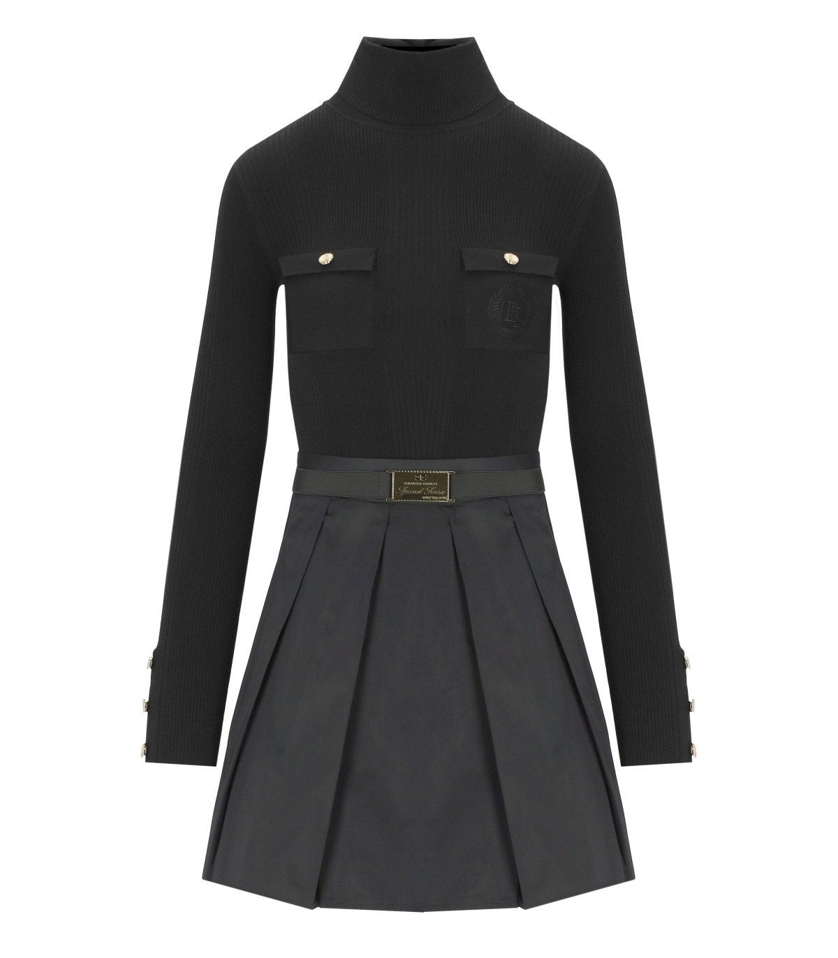 Elisabetta Franchi Black Knitting Turtleneck Dress