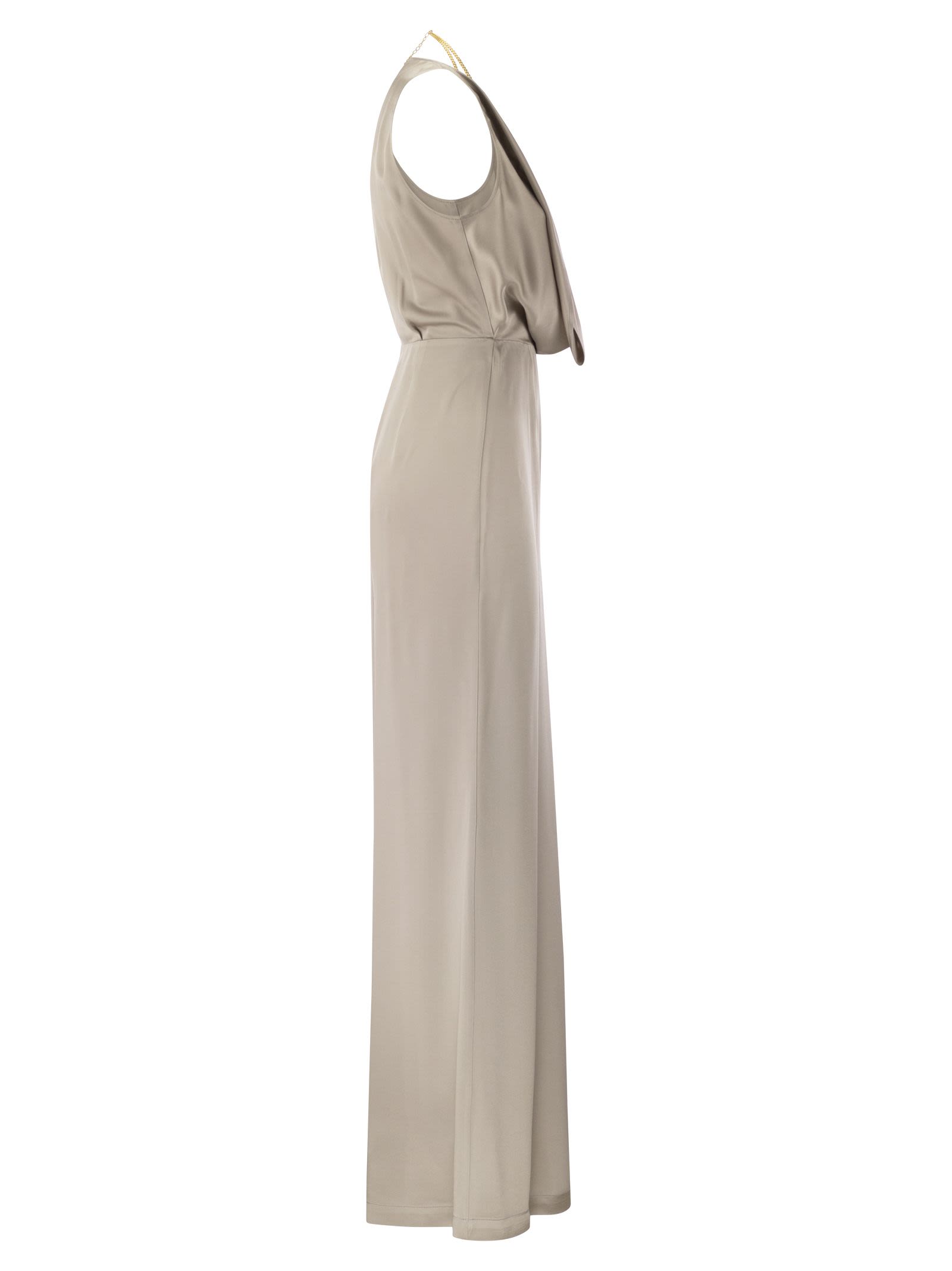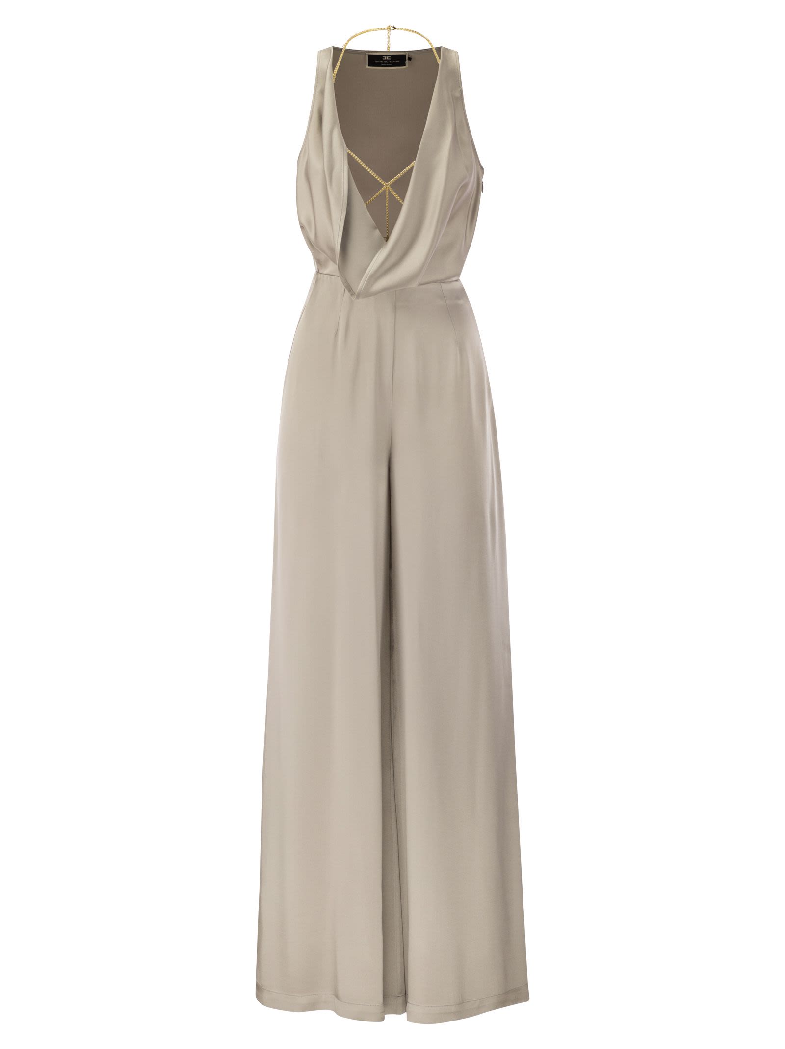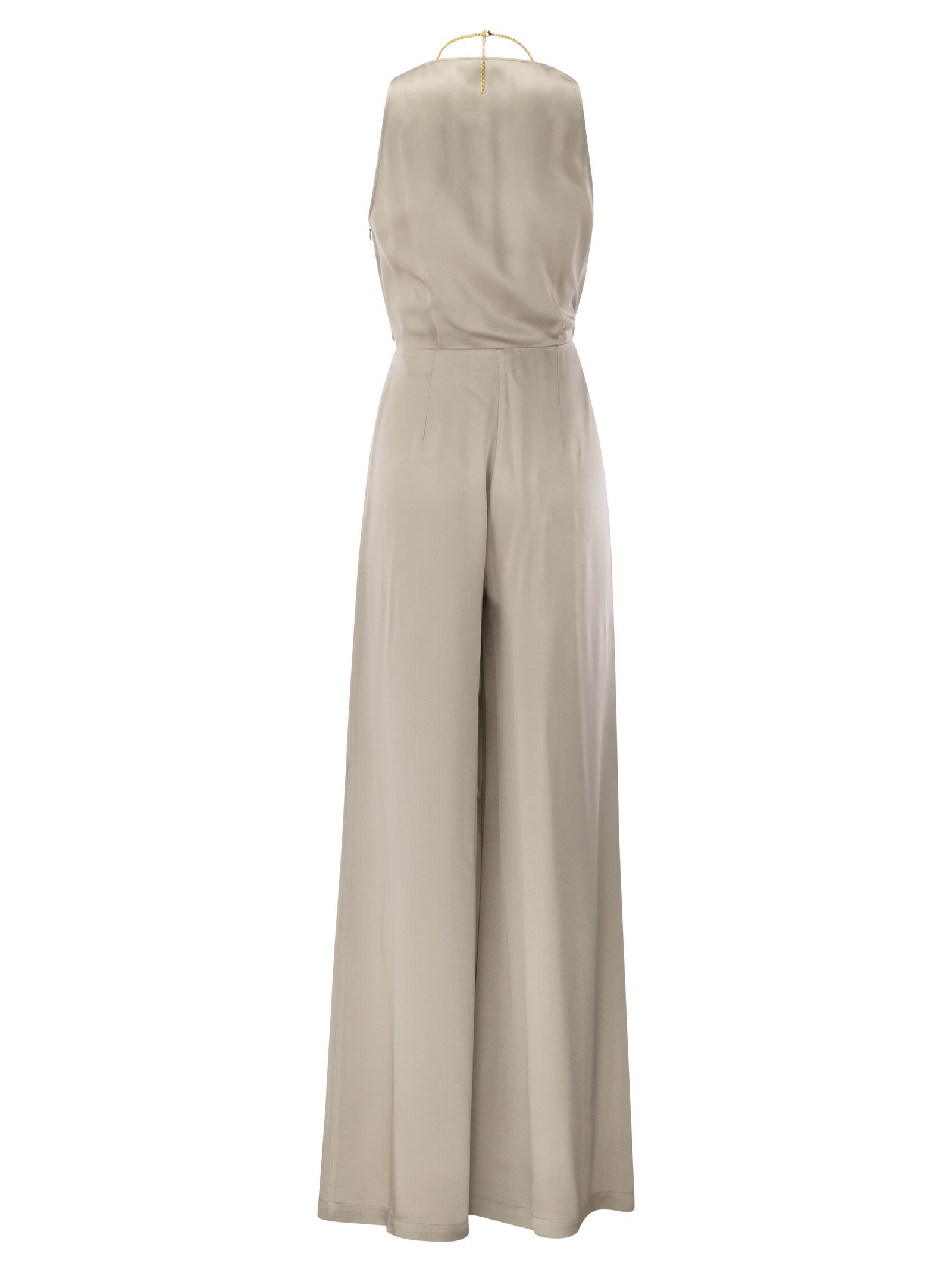 Salsa senza maniche in crepa fluida con scollo drappeggiato profondo e pantaloni palazzo. It Dispone di un accessorio reggiseno in metallo oro. - cinghie regolabili - Zip invisibile sul lato - ID designer di accessori in metallo oro: TU02042E2 155