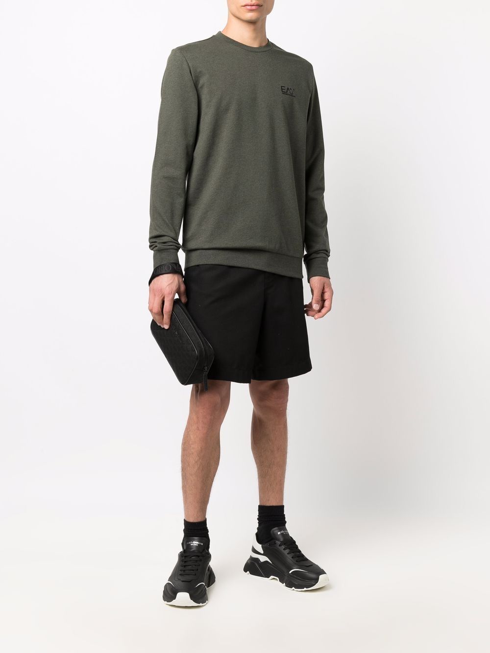 Borsa frizione zippata logo-placca nera di Emporio armani con placca logo, motivo monogramma, fissaggio con zip superiore, cinghia da polso, tasca posteriore a fusteramento con zip e scomparto principale.