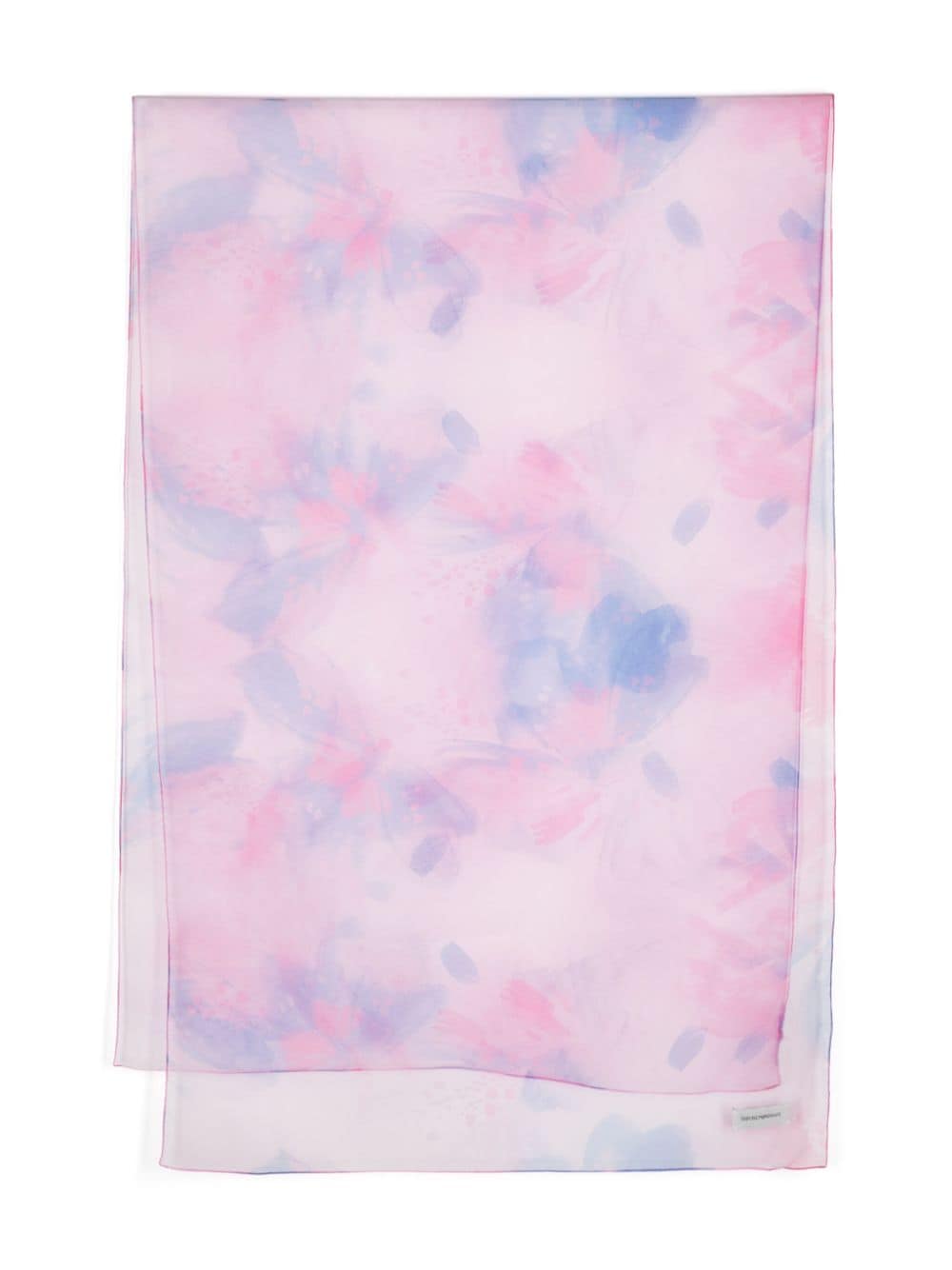 fuchsia pink/royal blue organza semi-sheer construction floral print logo tag rectangle shape