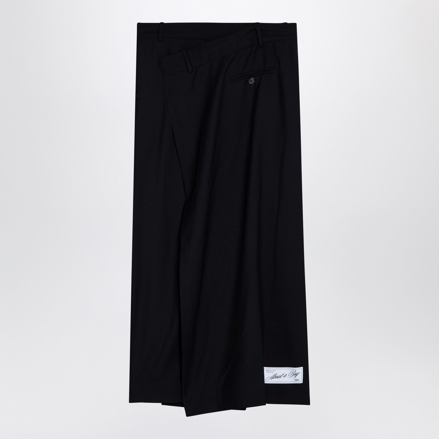 Gonna midi di lana fresca blu di Erika Cavallini con un design avvolgente, una lunghezza asimmetrica, una chiusura con zip laterale nascosta, una fessura anteriore, una patch di logo e tasche Welt con un fissaggio a bottone.