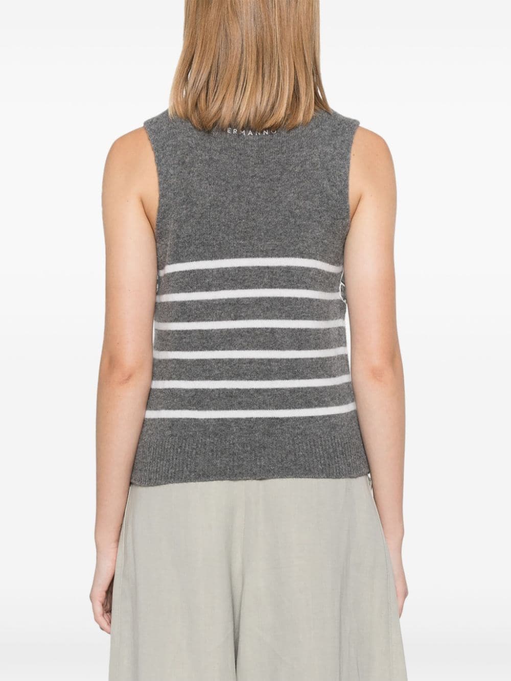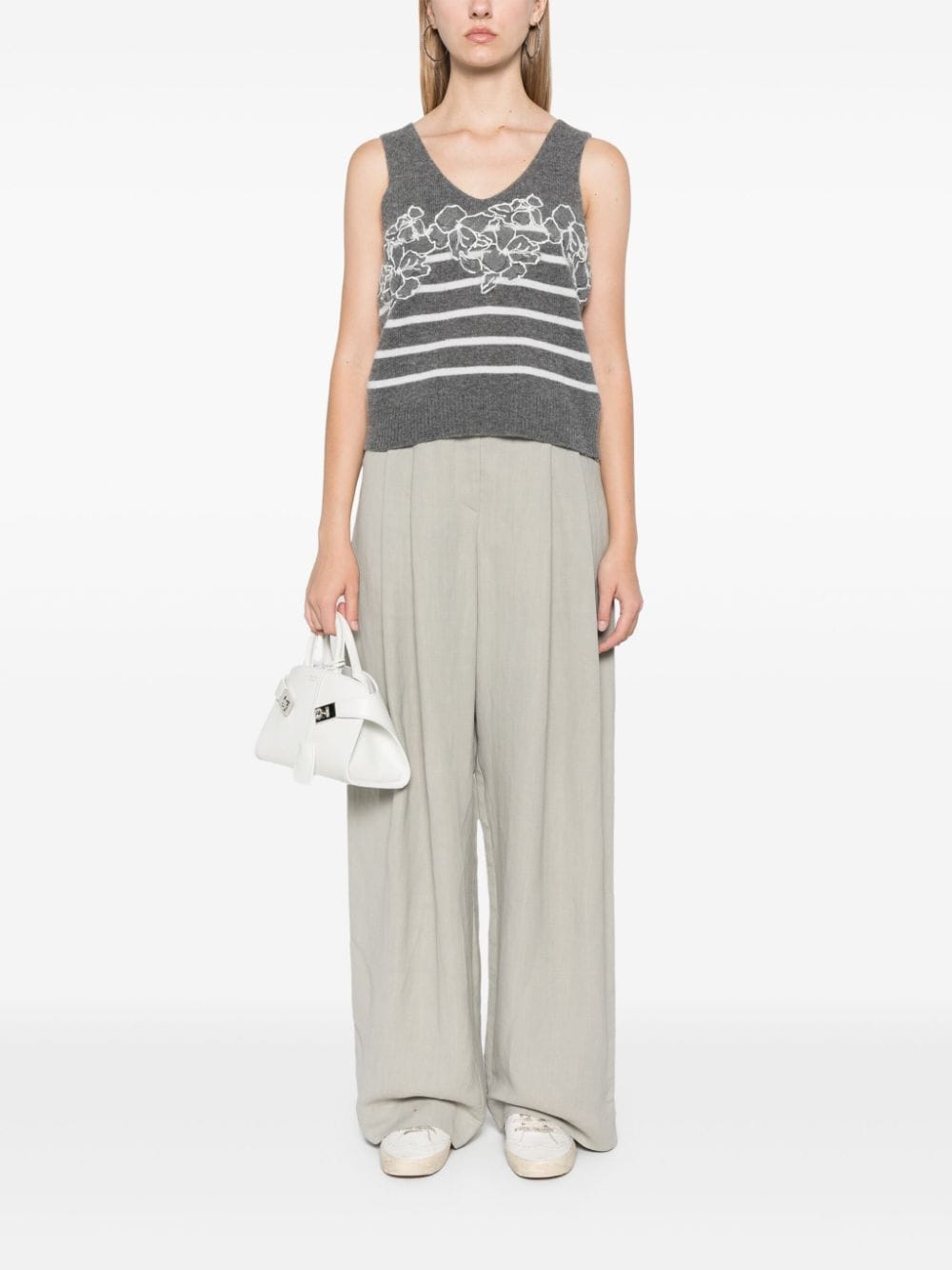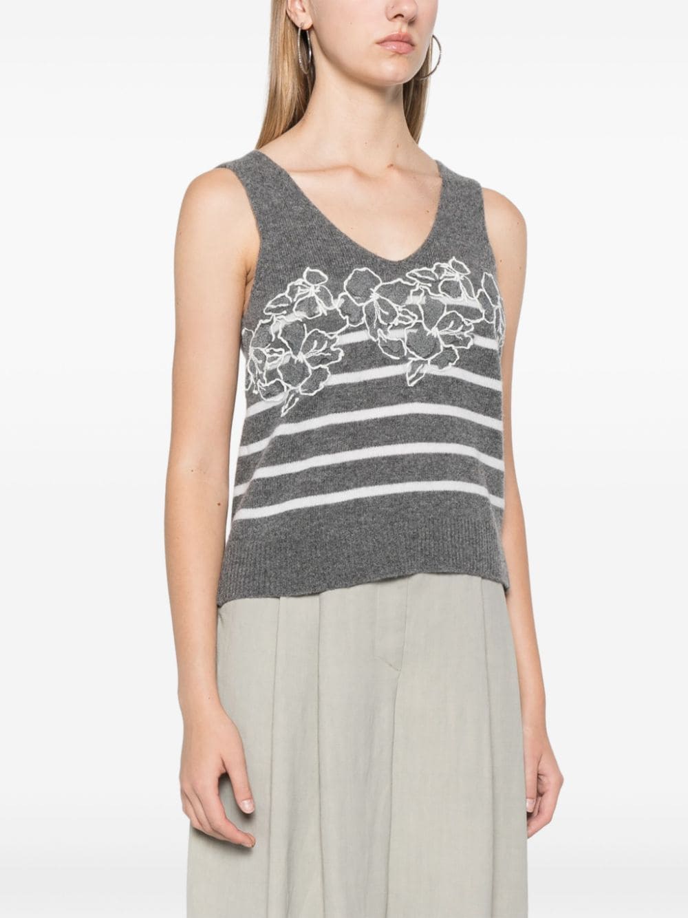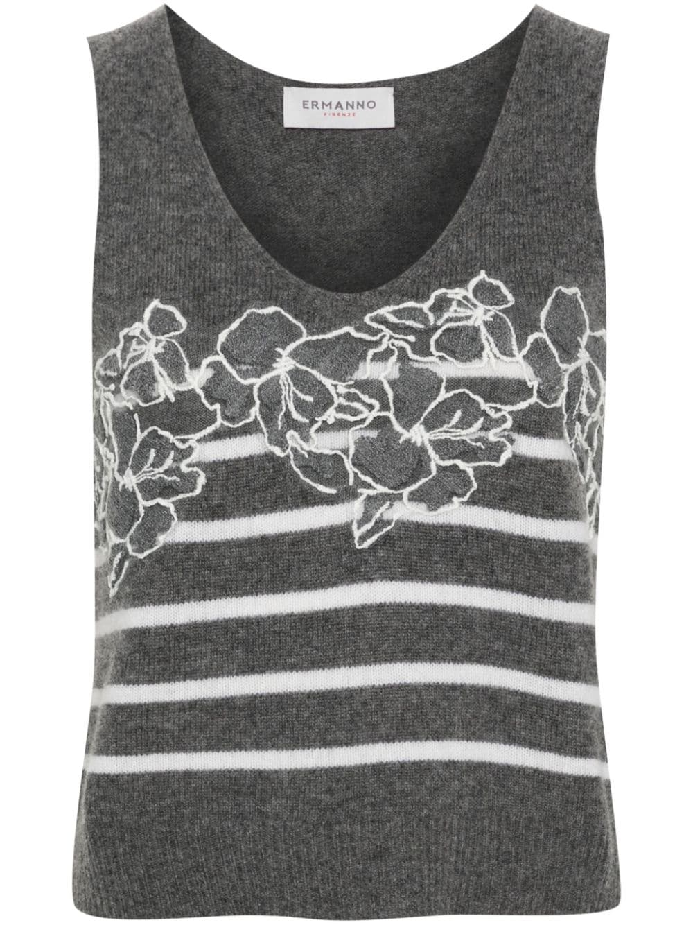 Lana grigia/bianca Lana maglia a maglia a maglia a v-collo senza maniche orizzontali a strisce floreali ricami floreali nell'orlo dritto anteriore