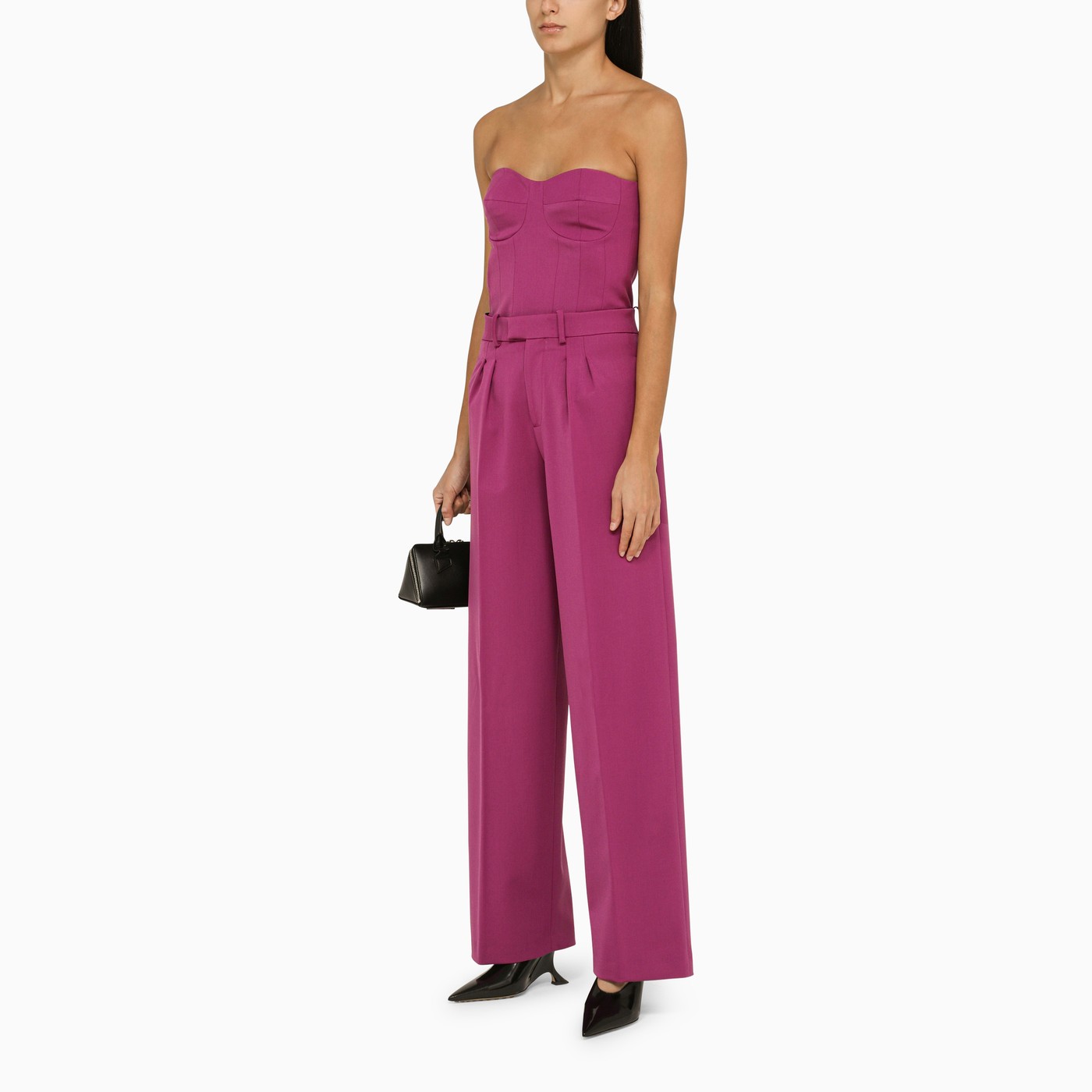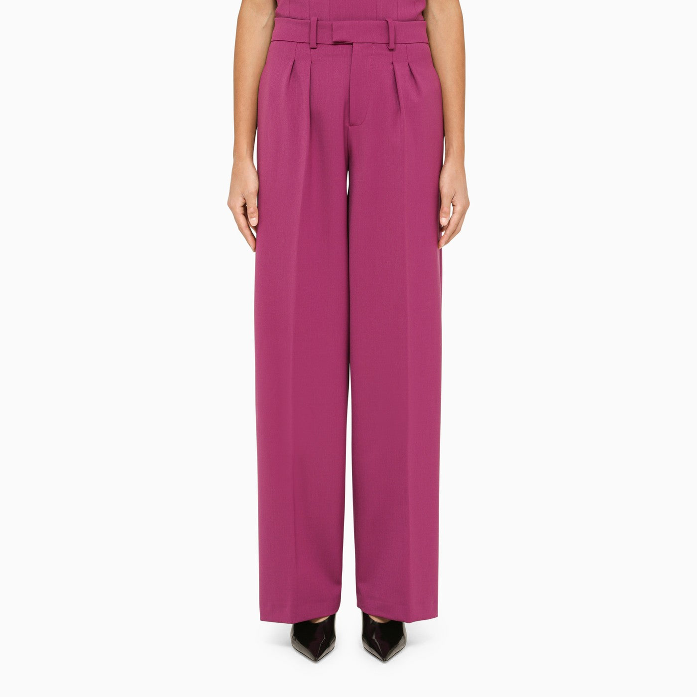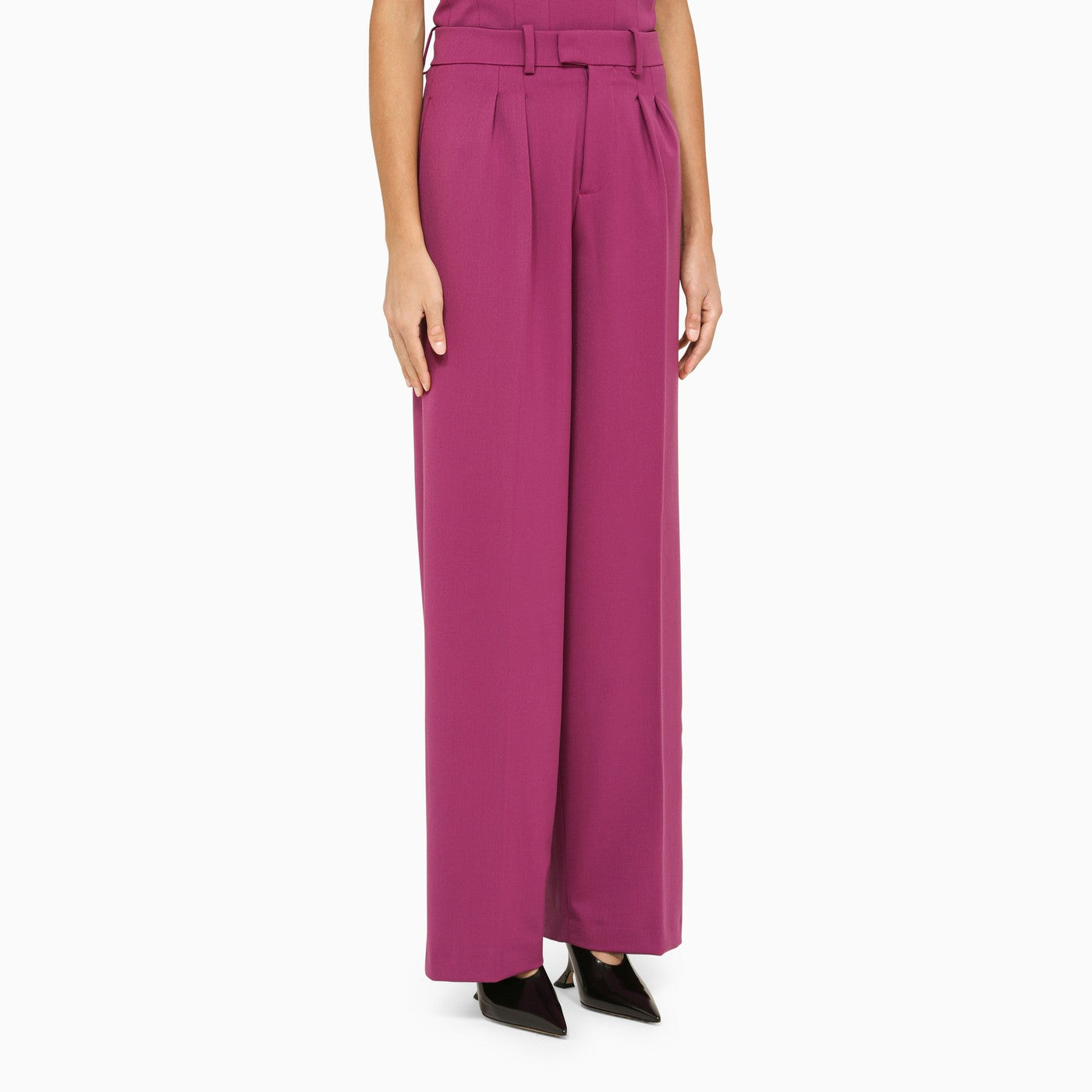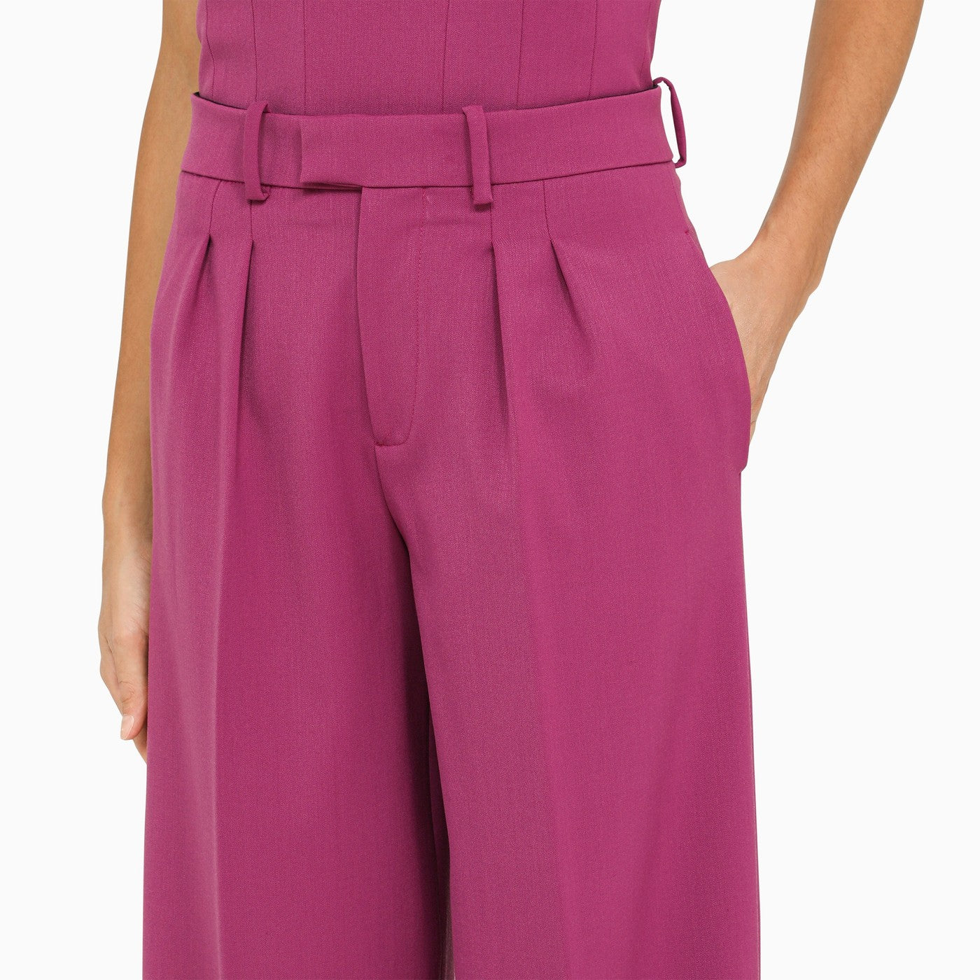 Pantaloni di lana di colore peonico di Federica Tosi con due tasche sui lati, tasca da welt sul retro e la cintura.