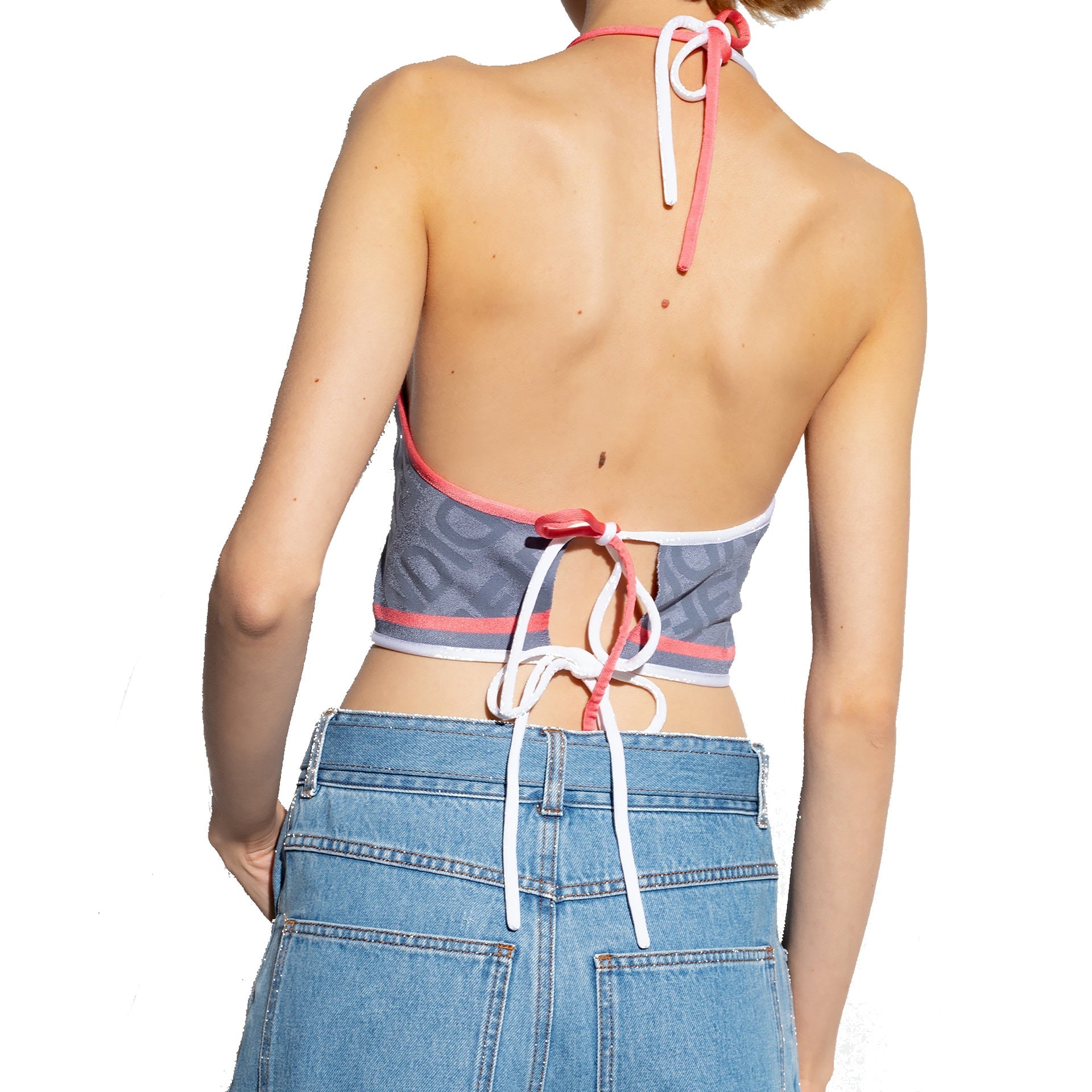 - Composizione: 24% Poliammide 17% Polipropilene 3% Poliuretano 56% Viscosa - Senza maniche - Lavabile in lavatrice - Monogramma all over - Chiusura con lacci - Spalle aperte - Made in Italy -