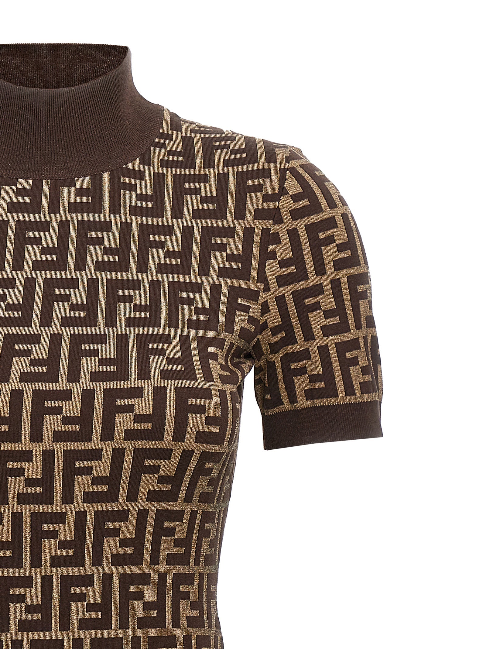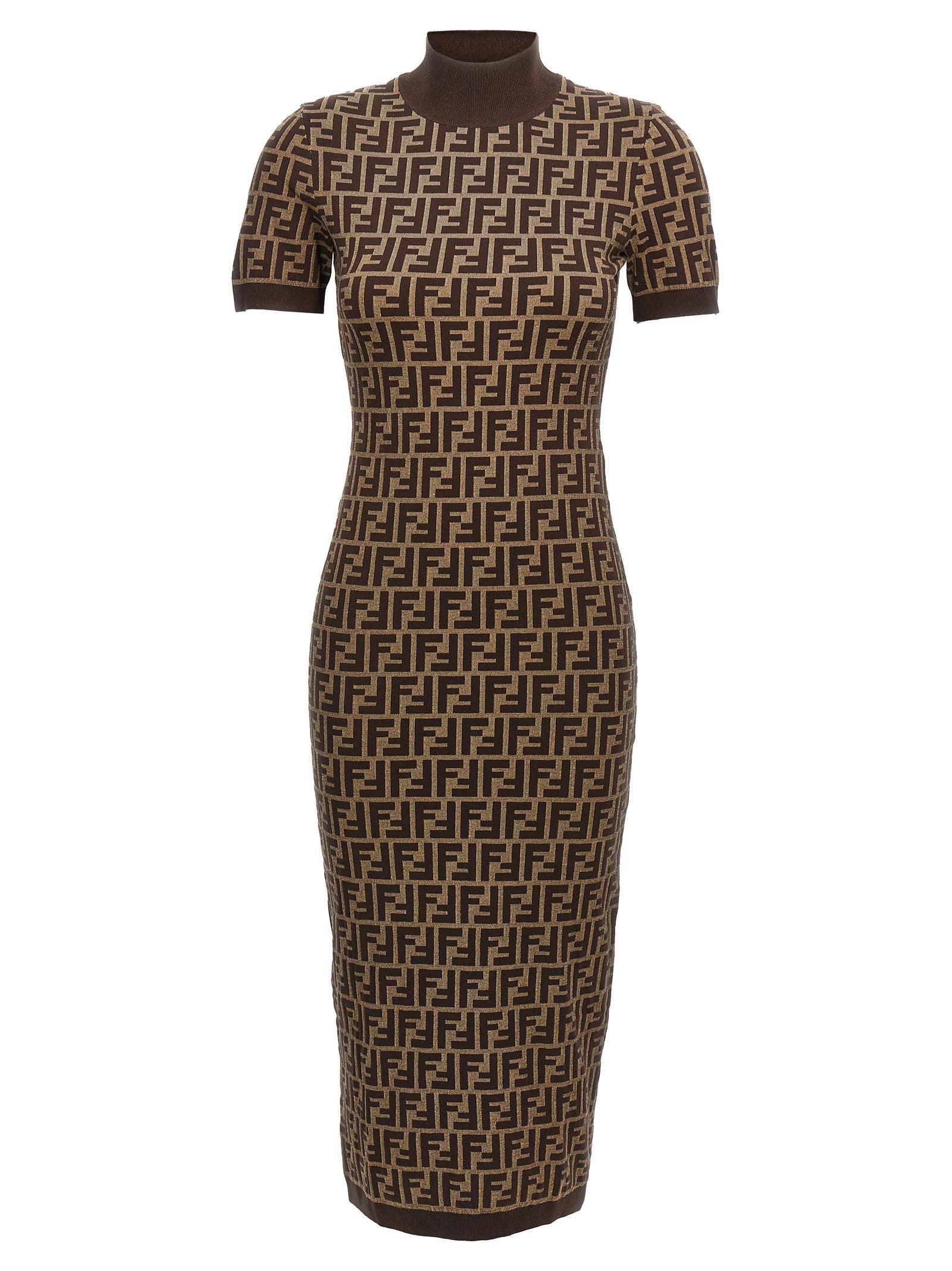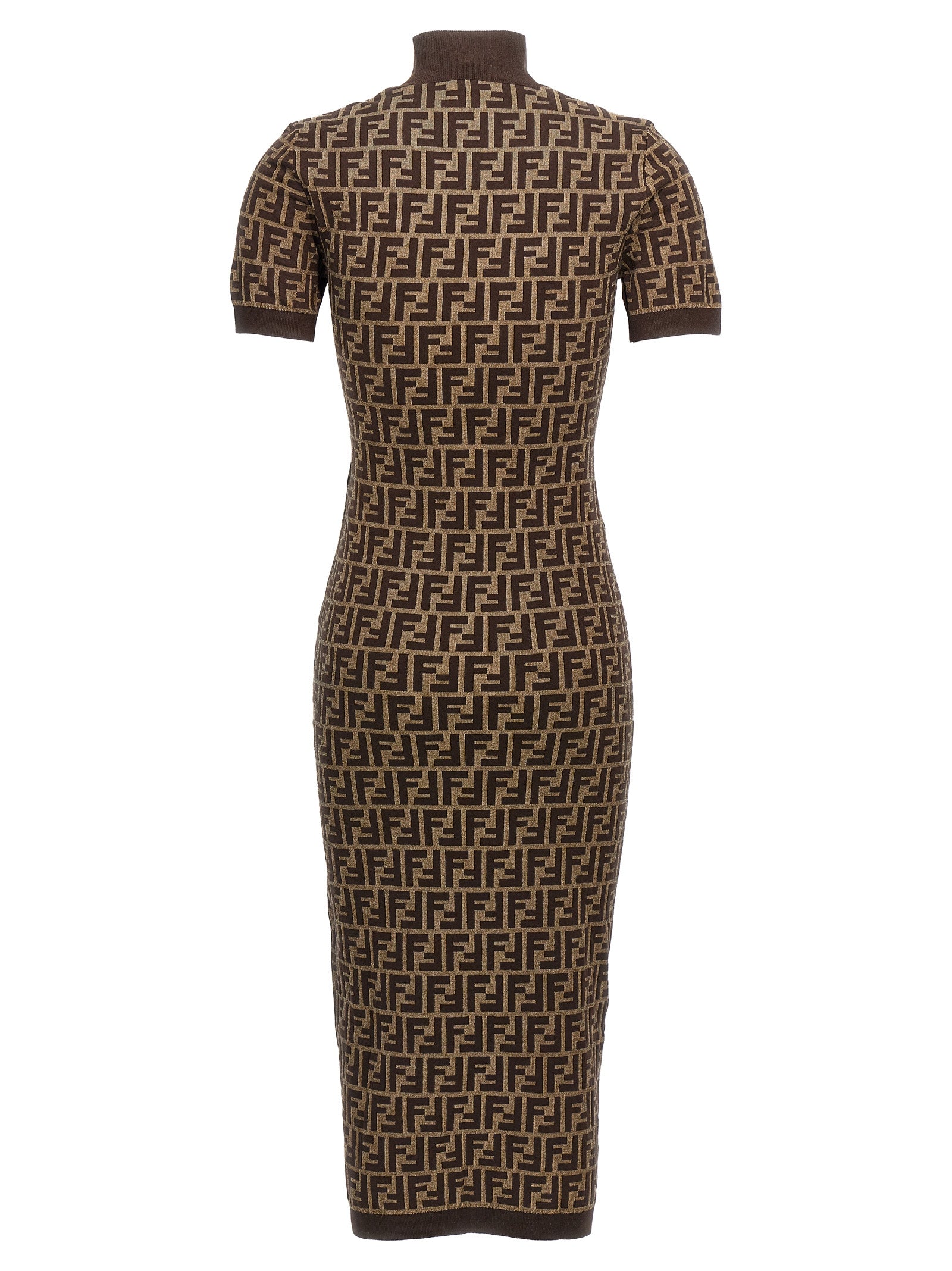 Abito midi di cotone jacquard con motivo "ff", collo dell'equipaggio e maniche corte.