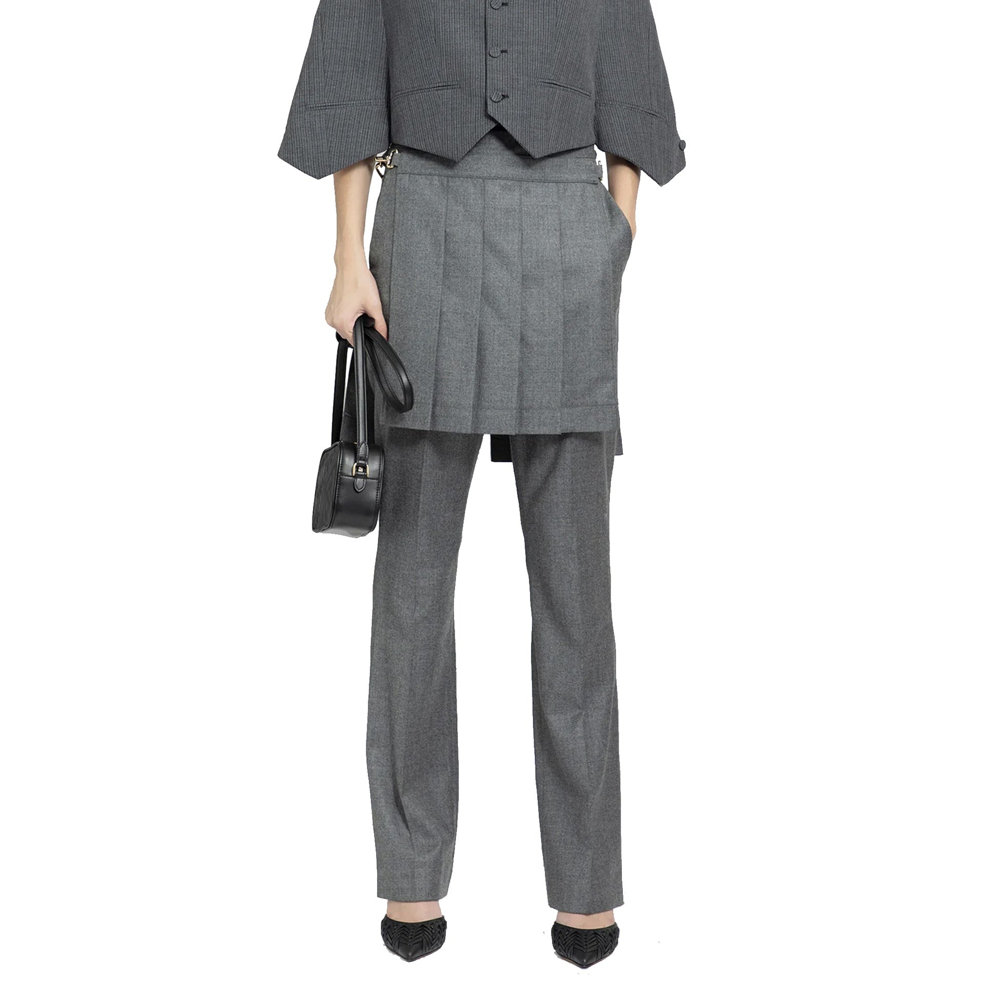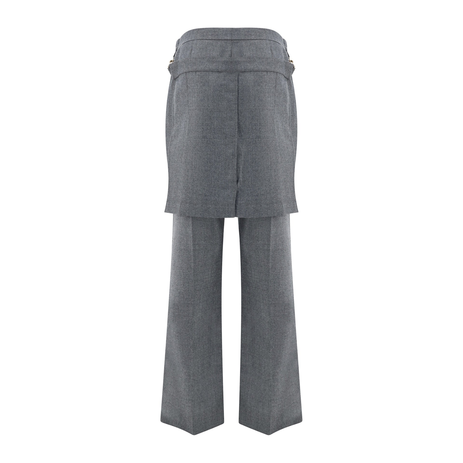 - Composizione: lana 100% - Dettaglio logo in rilievo - Fissaggio con zip laterale nascosto - design a doppio strato con mini gonna applicata sui pantaloni - Made in Italia -