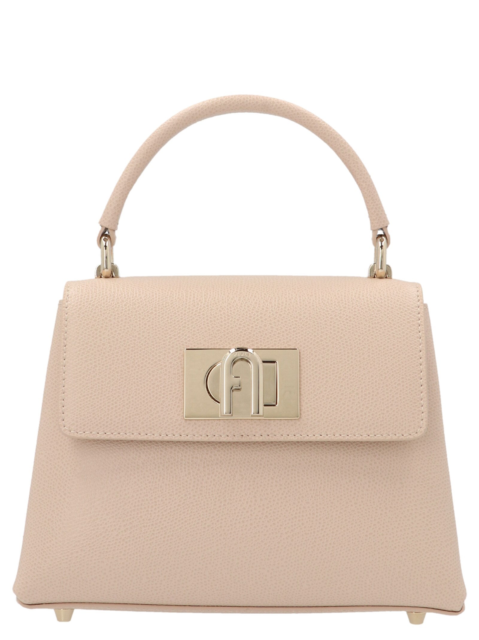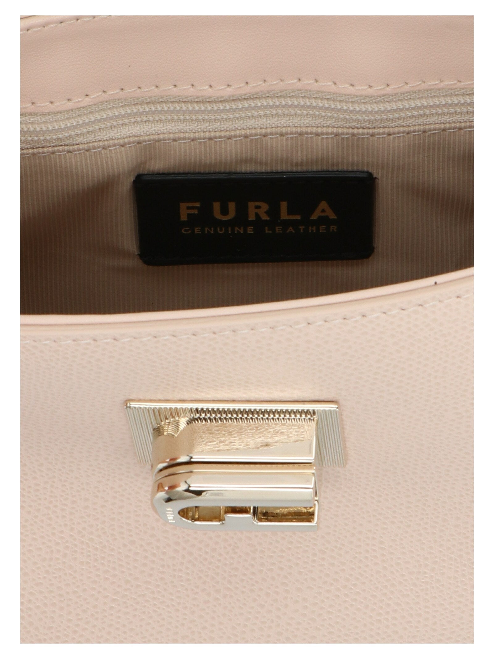 La borsa in pelle di Furla Ares con una chiusura a pattina con un lucchetto dorato, una maniglia e una tracolla rimovibile.