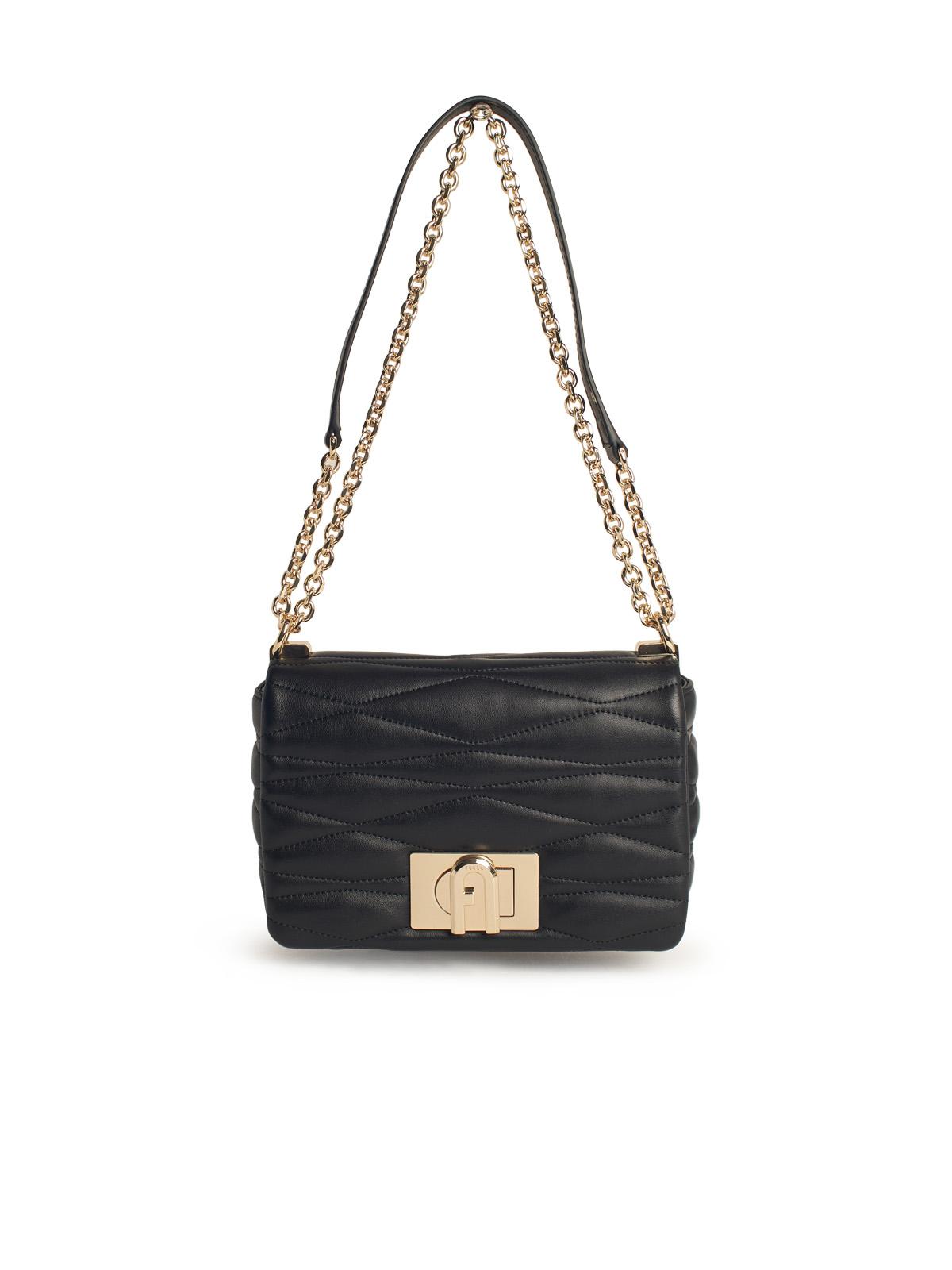 Realizzato in pelle nappa trapuntata, spalla a catena con inserto in pelle, blocco della svolta anteriore con logo, tasca di slittamento interno \ N22 x 15 x 7 cm