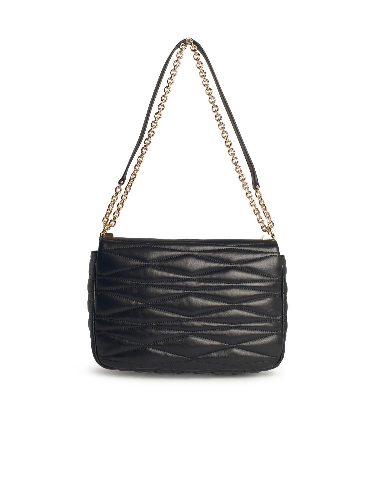Realizzato in pelle nappa trapuntata, tracolla a catena con inserto in pelle, serratura anteriore con logo, tasca del marsupio interno, tasca con zip all'interno \ n28 x 18 x 7,5 cm