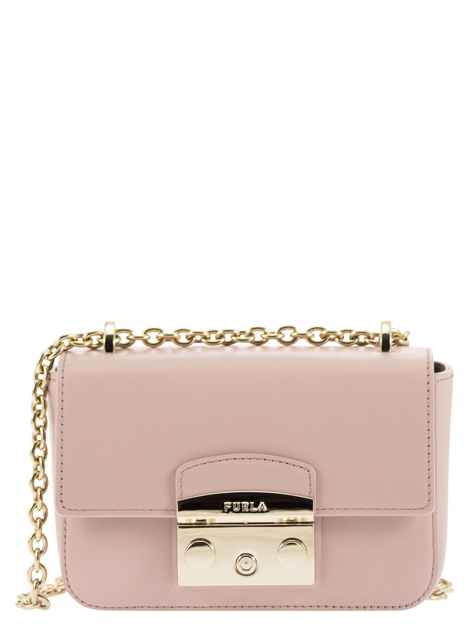La pelle morbida definisce il design strutturato del mini traversa di Furla Metropolis. Iconico per la chiusura del pulsante a scatto e il rivestimento lucido, diventa un elemento distintivo per qualsiasi look. Così piccolo è perfetto per l'abbigliamento leggero delle spalle o per trasformare in una frizione serale nascondendo la cinghia a catena all'interno. - Open Internal Pocket - Logo Furla inciso sull'ID del designer di chiusura: WB00828 AX0733 ALB00