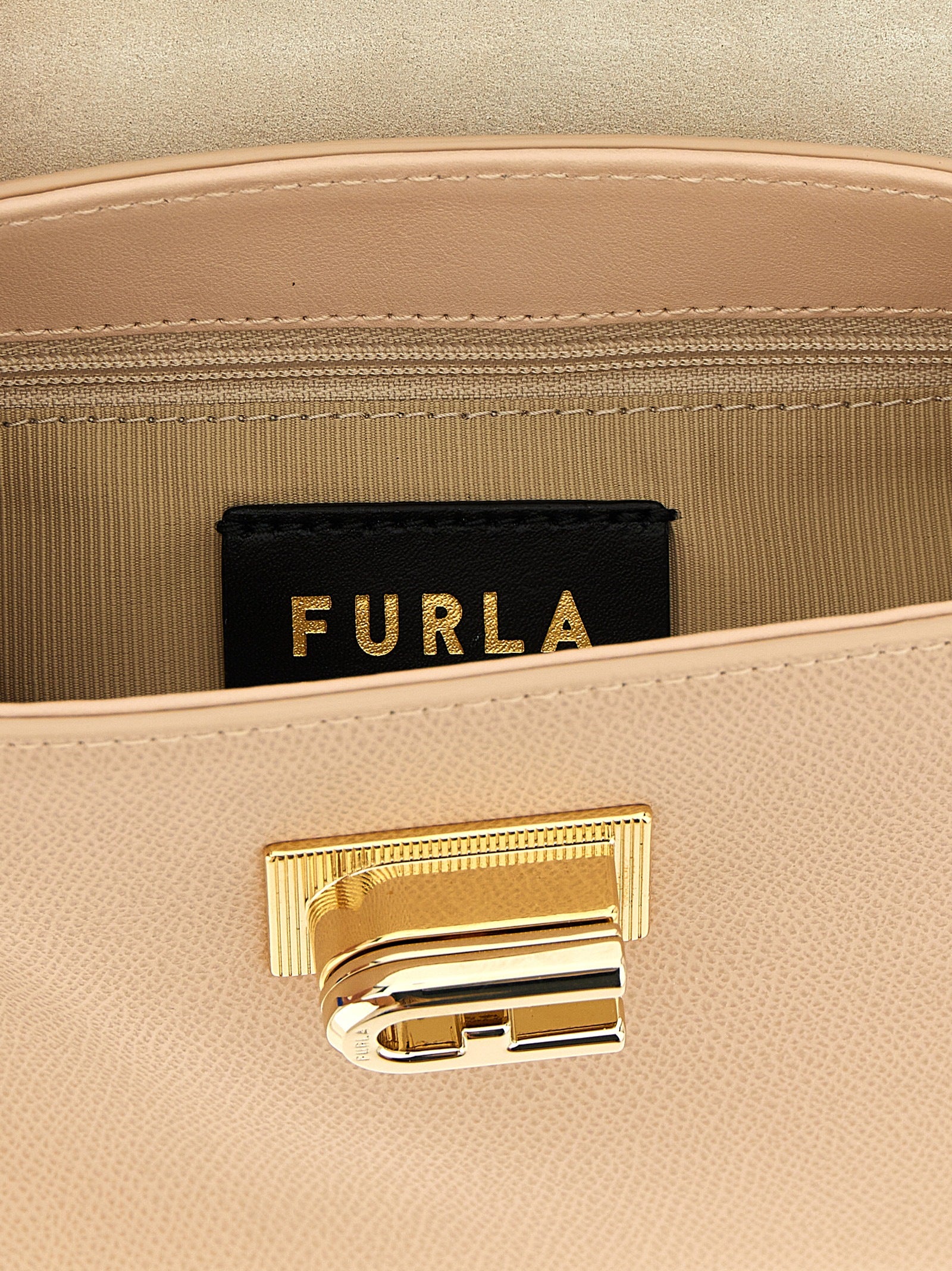 Borsa a soffietto in pelle stampata con blocco gira di logo ARCO, maniglia fissa e spalla regolabile e rimovibile.