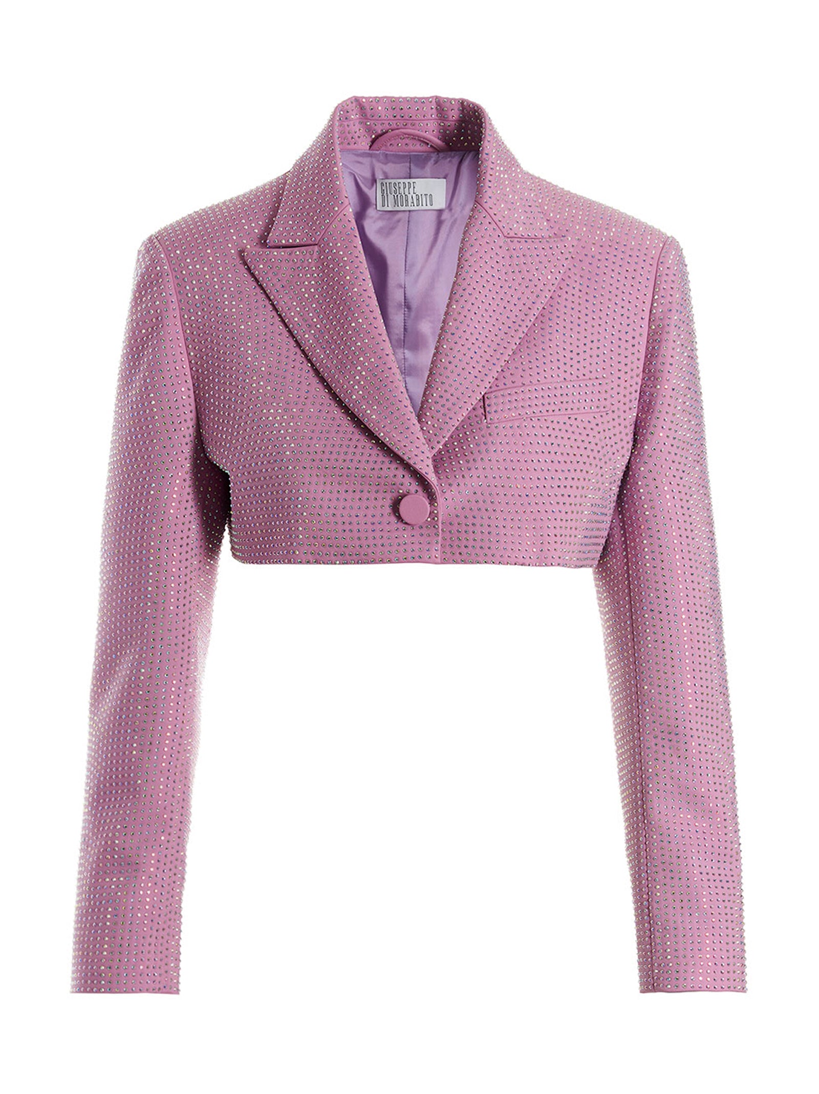 Giacca a corto di miscela di cotone con applicazioni con paillettes, chiusura a bottone, tasca, spalle leggermente imbottite e maniche lunghe.