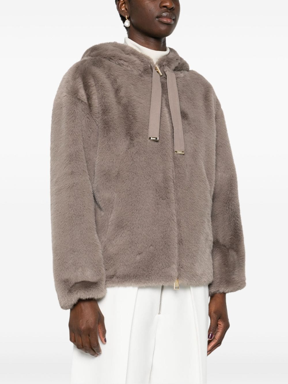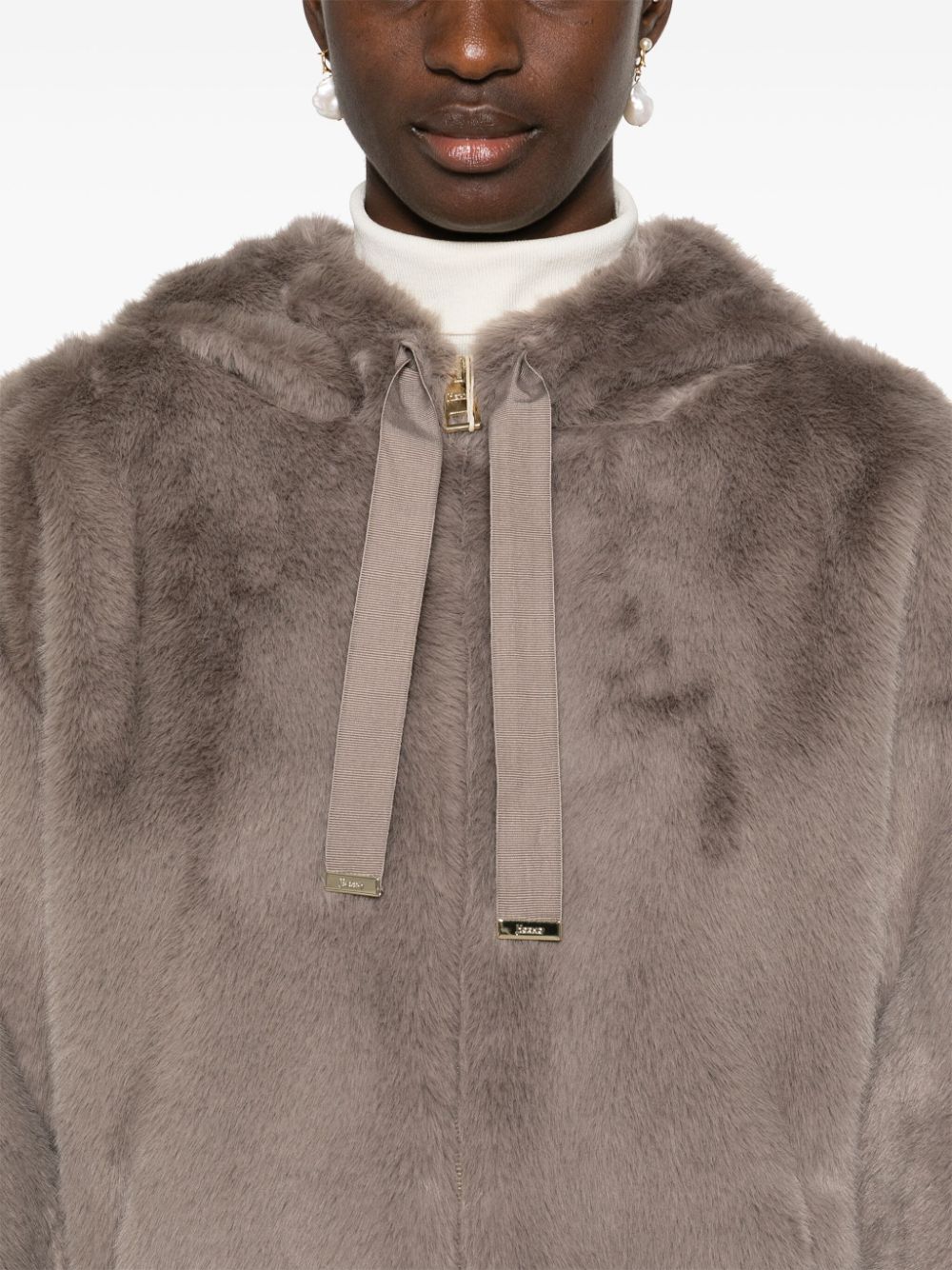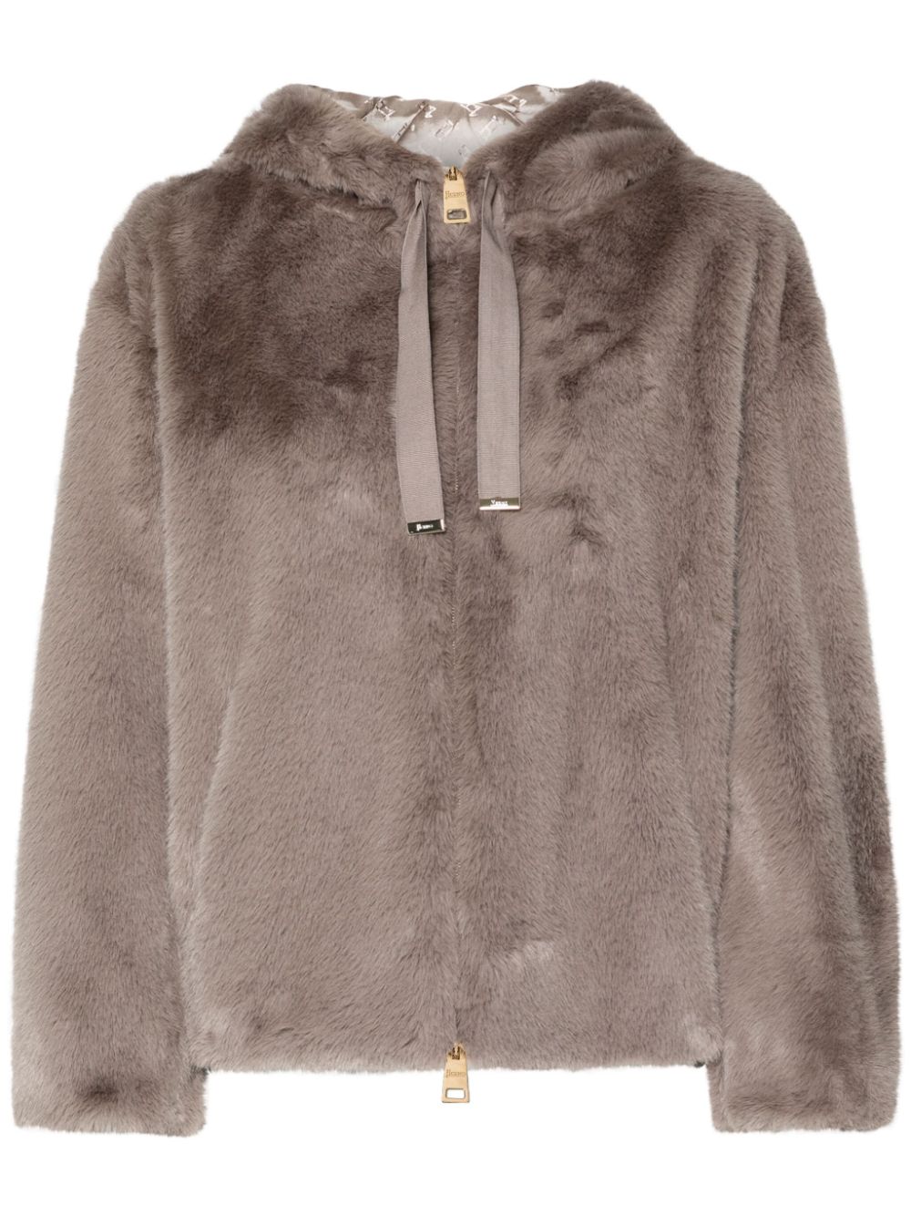 Design in finta euce marrone chiaro Effetto spazzolato anteriore Fissaggio a due vie Cancella corse a maniche lunghe a due tasche laterali Logo-Pronzatura del rivestimento del core di fissaggio interno.