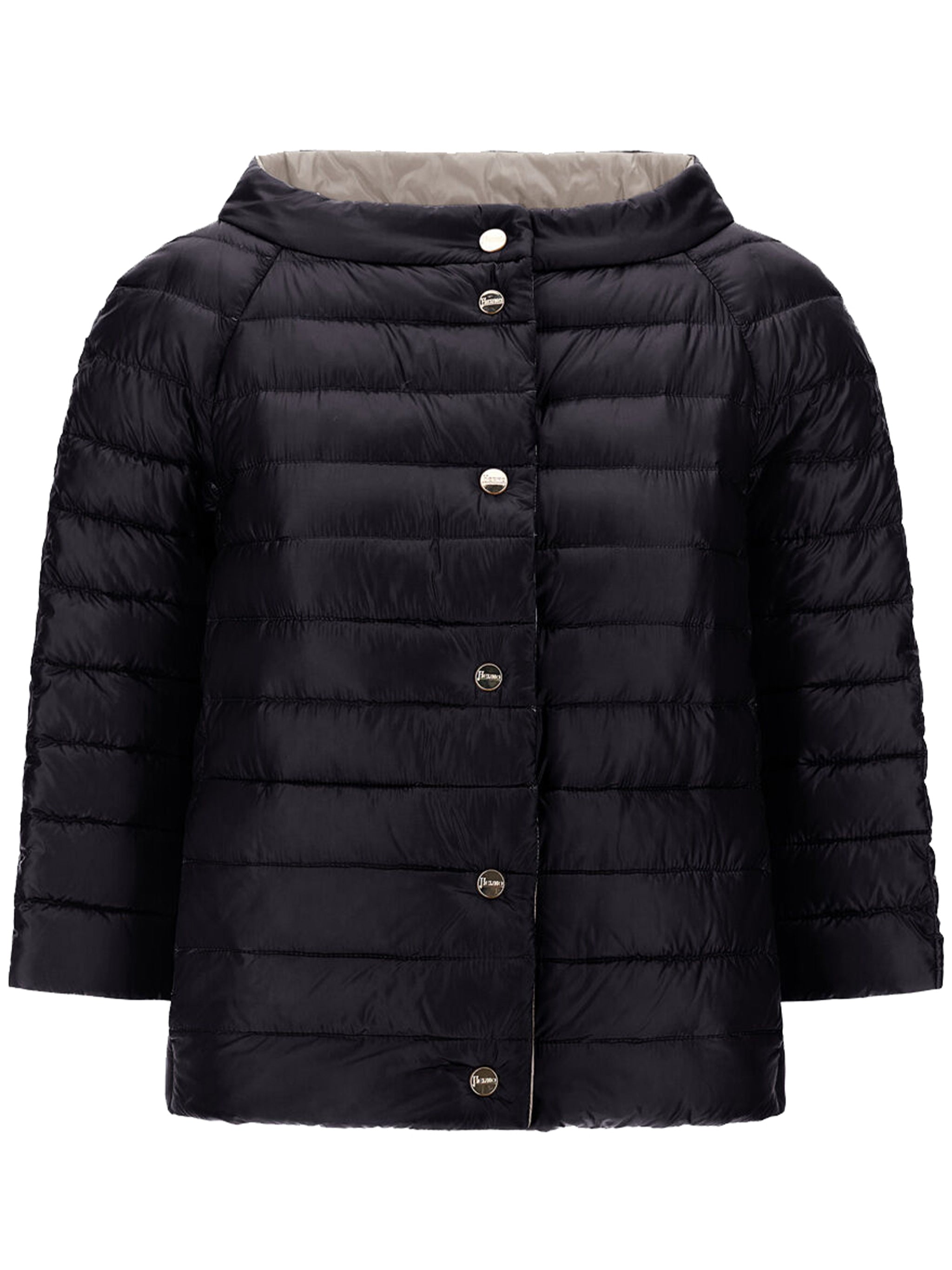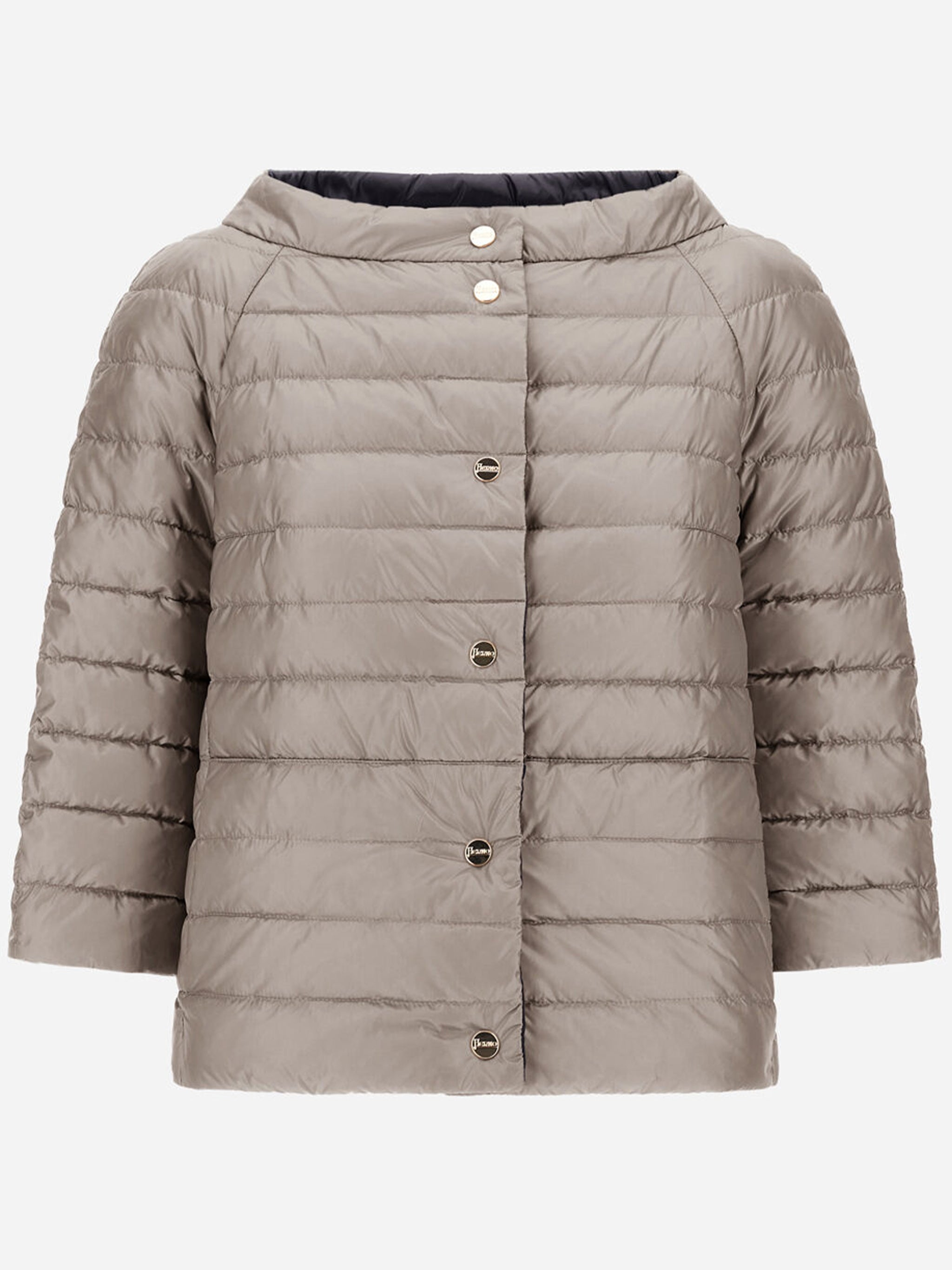Cappuccio reversibile in nylon ultra luce, simbolo di eleganza di Herno. Realizzato in nylon giapponese da 20 più con imbottitura di piume di anatra 90/10, offre leggerezza e una consistenza setosa. Il design reversibile con colori contrastanti aggiunge versatilità, mentre il trattamento del repellente per l'acqua fornisce protezione. Un indumento raffinato, perfetto per ogni stagione.