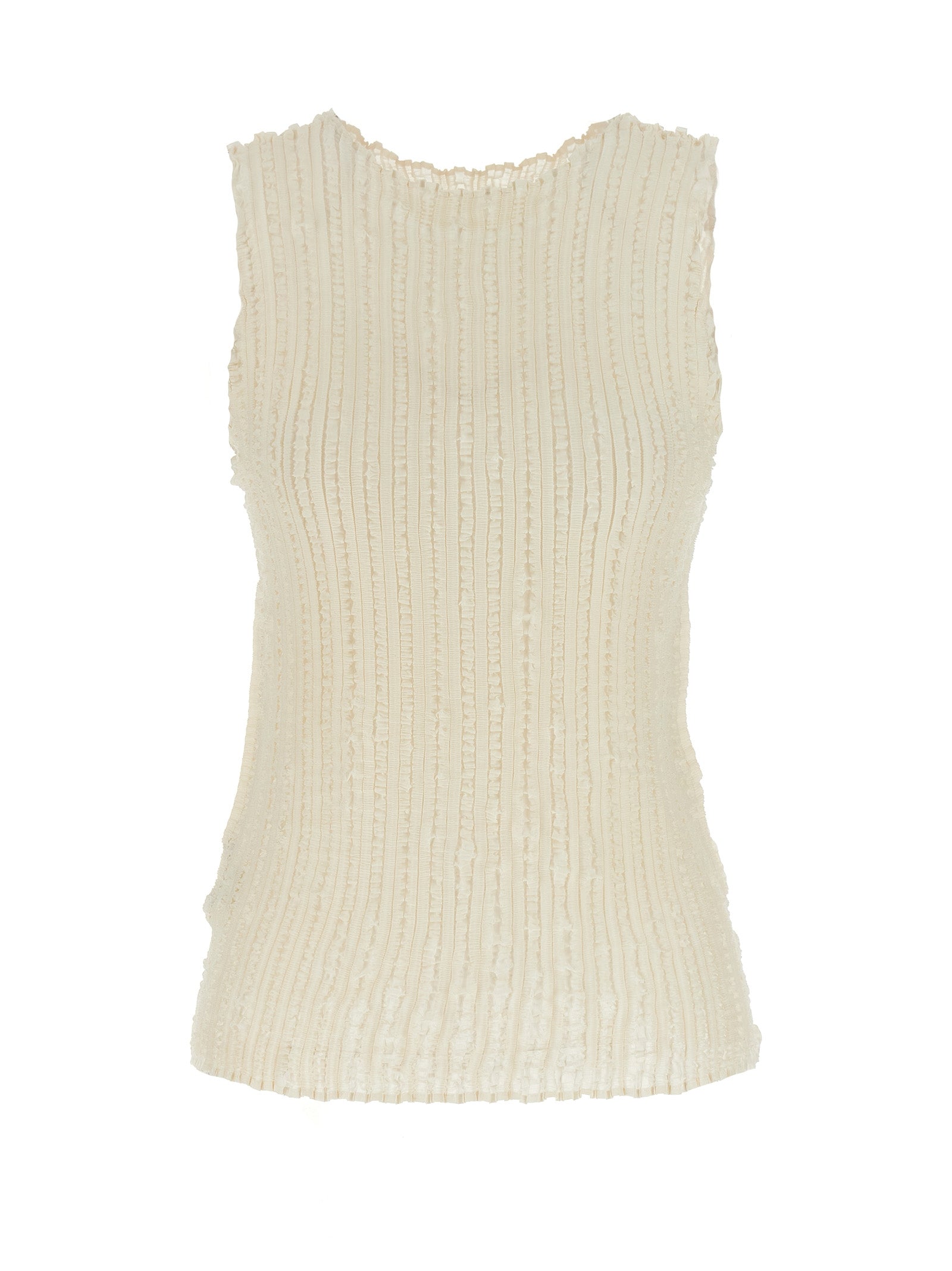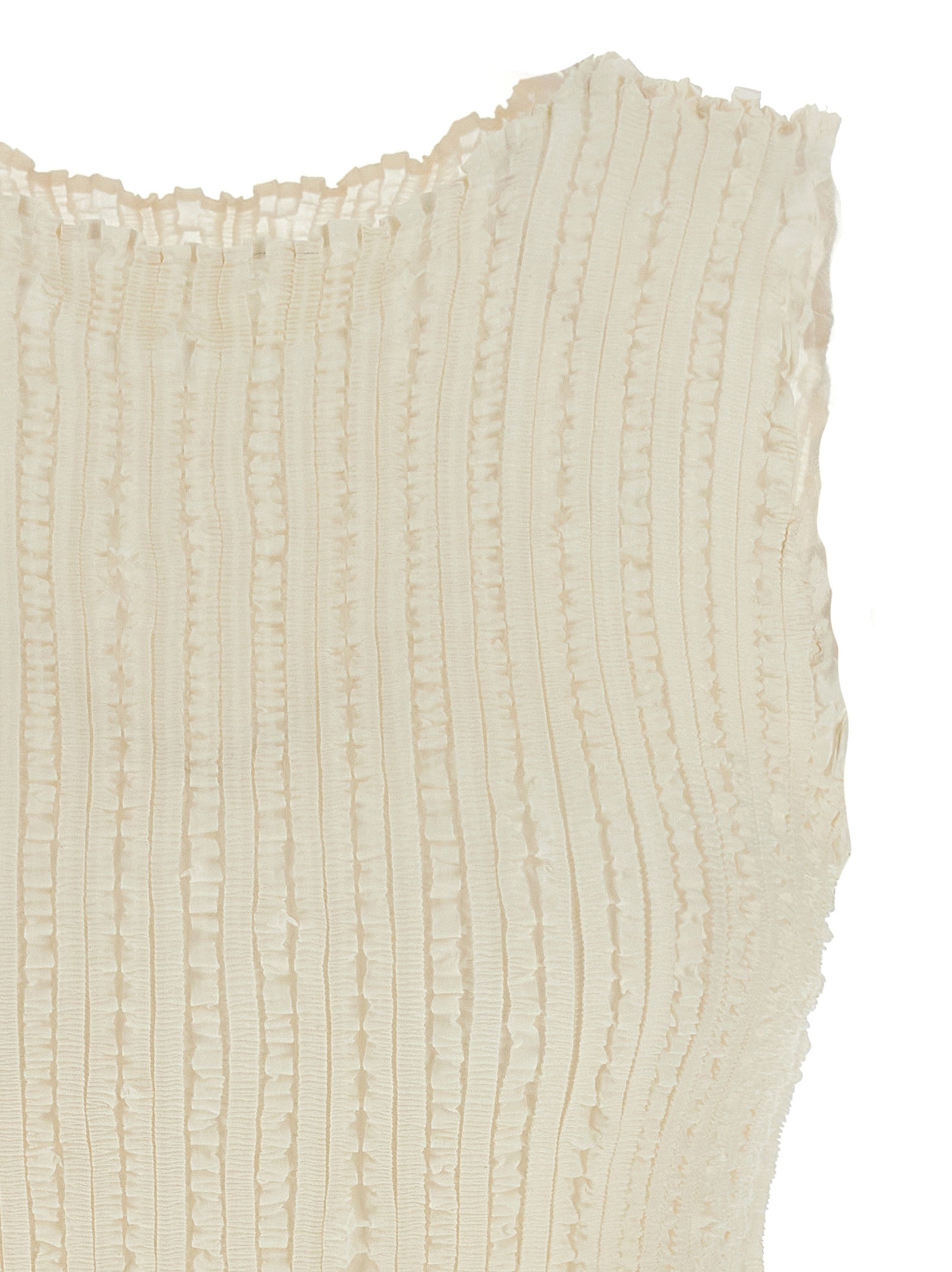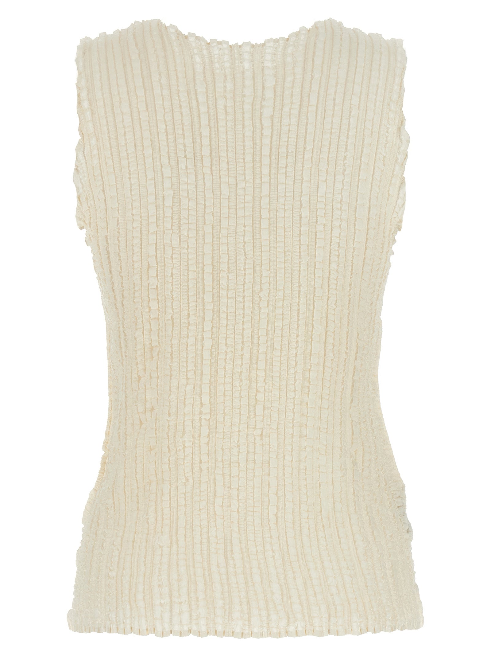 Top tessuto a pieghe a pieghe "Piatte di gelatine" con scollatura rotonda.