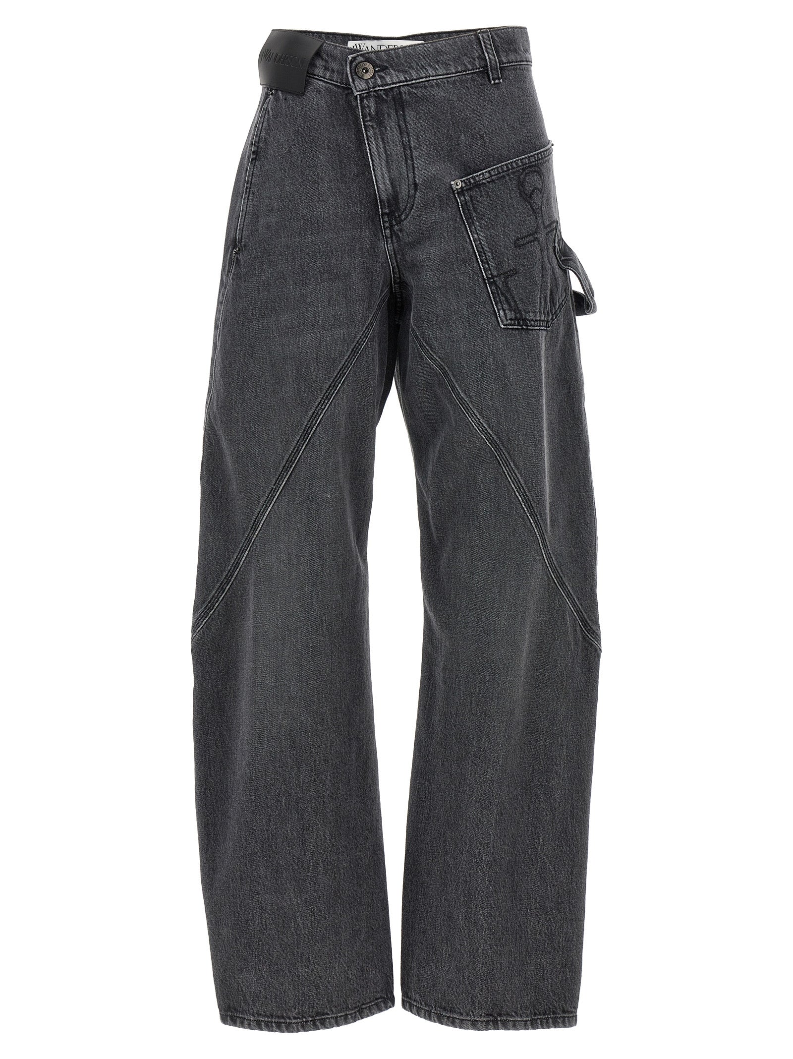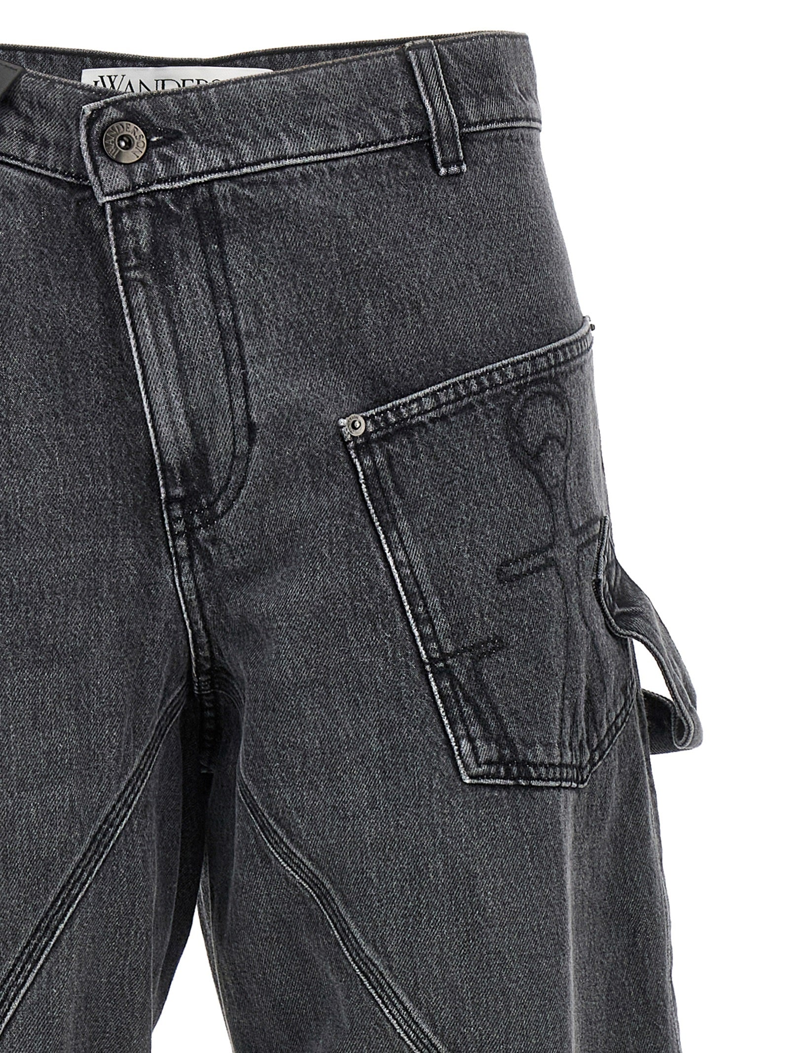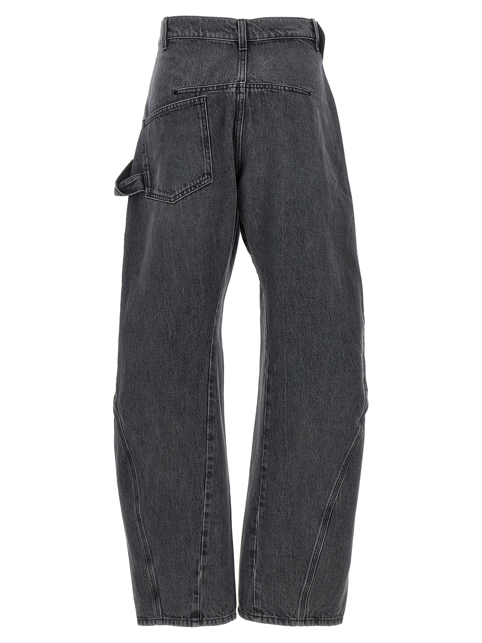 Jeans in denim in cotone "Worked Workwear" con ricamo a logo frontale, chiusura a zip e bottoni, tasche, gamba larga.