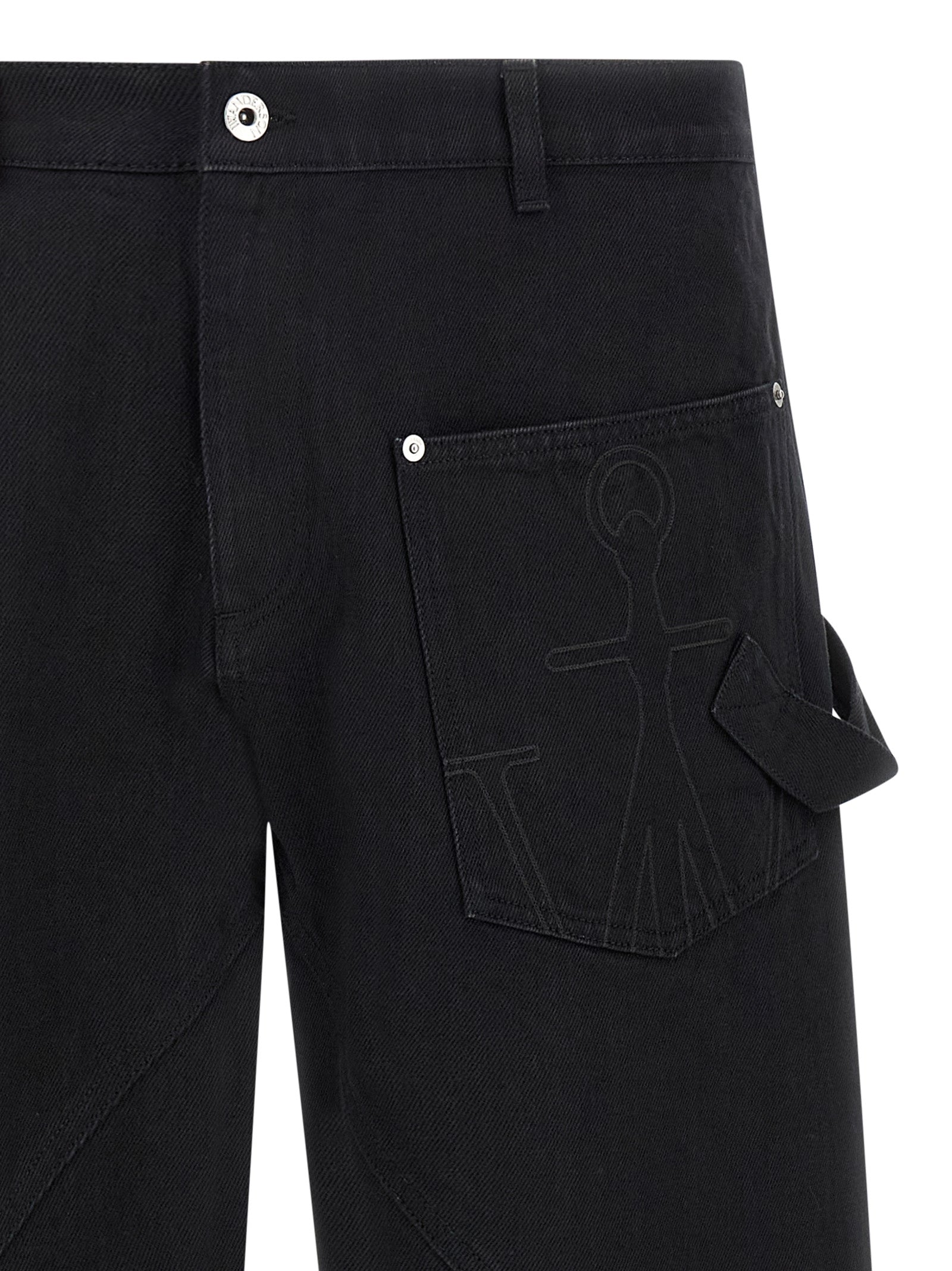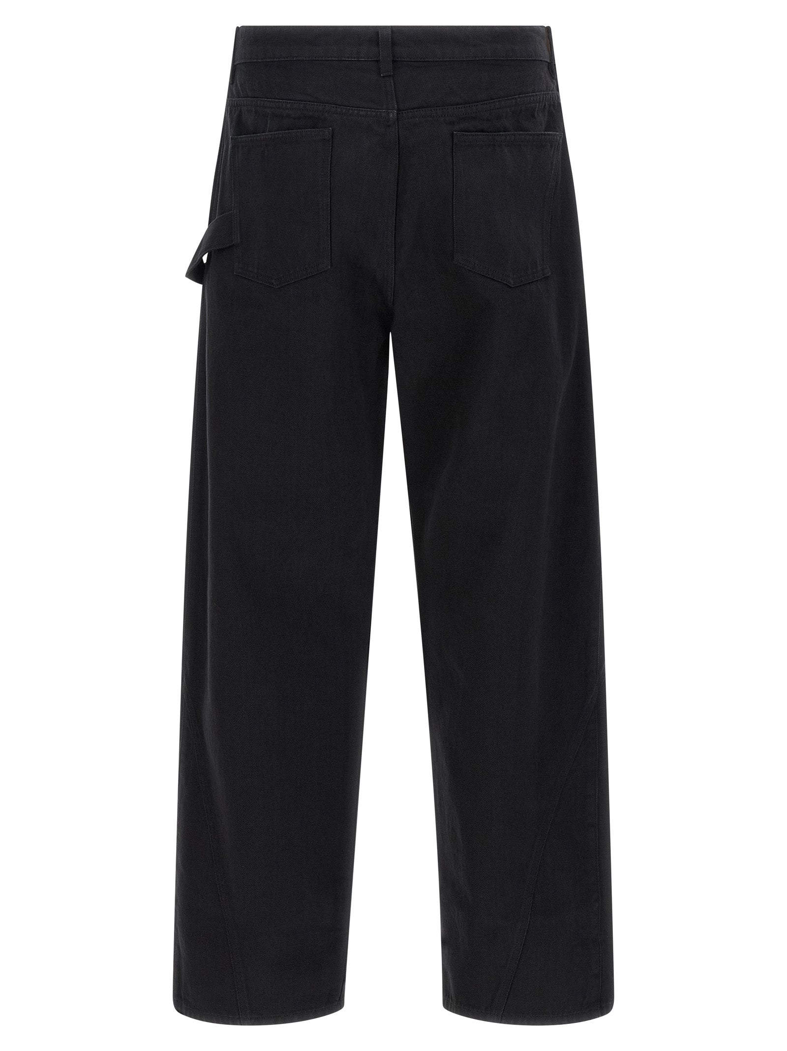 Jeans "abbigliamento da lavoro attorcigliato" in denim di cotone tinto di indumento con silhouette intrecciata bassa vita e gamba larga, tasca anteriore con ricamo logo "ancoraggio" a contrasto, chiusura obliqua e chiusura a bottone, tag logo in pelle anteriore, tasche.