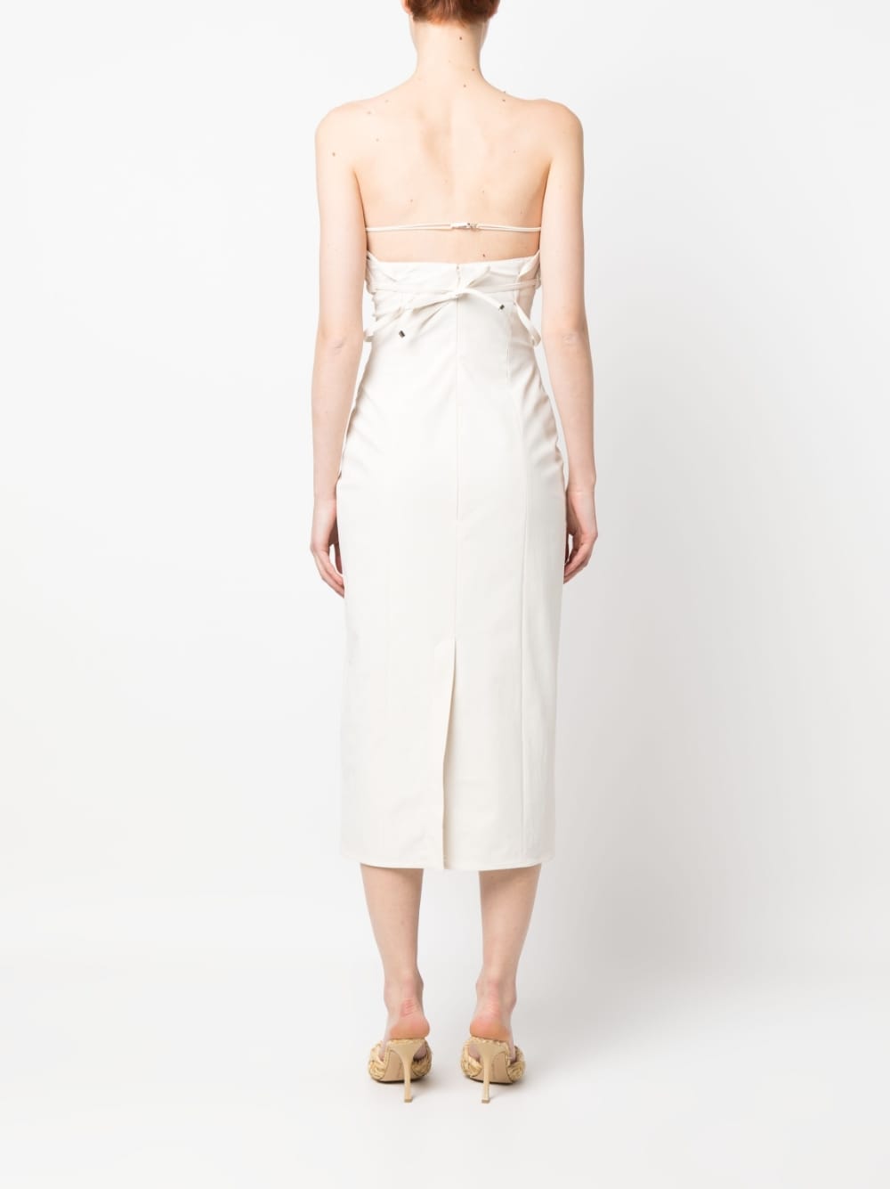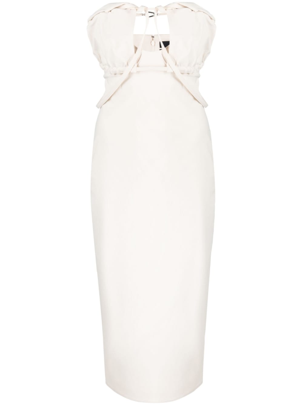 Abito da spalline su misura di Jacquemus con bianco avorio, cotone, senza spalline, dettagli raccolti, dettagli ritagliati, dettagli con cinturino e dettagli di dardo.